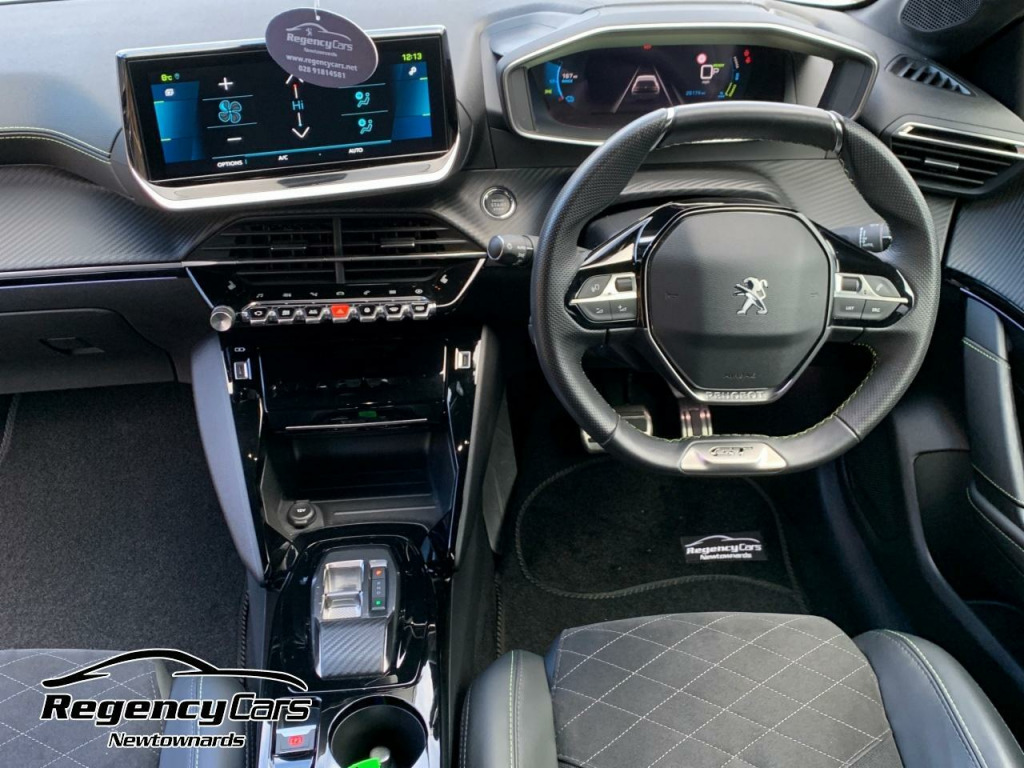 BUY TODAY AND WE WILL INCLUDE A FREE EV WALLBOX WITH INSTALLATION FROM OHME!! Saving you up to £1,000!! *Terms & Conditions ApplyThis 2022 Peugeot E-208 GT Premium is a Peugeot manufacturer approved electric vehicle with only one owner and a full service history. It boasts a 50 kWh battery which has had a certified State of Health Battery Check, rated excellent and with a range of up to 183 miles! Charging is convenient, with a full charge at home taking approximately 7 hours and 30 minutes using a 7kW charger, and rapid public charging can achieve 80% capacity in just 30 minutes. This E-208 comes with a 12 month warranty and its MOT is valid until November 2026, ensuring peace of mind.The GT Premium trim level enhances the driving experience with the Visibility Pack, including automatic headlights, and the Drive Assist Pack Plus, which features adaptive cruise control with stop-go and lane positioning assist. For added safety and convenience, it is equipped with blind spot monitoring and automatic air conditioning. The Bluetooth telephone facility allows for seamless connectivity, making this Peugeot E-208 a well equipped and refined choice for electric motoring.*Free EV Ohme Home Charger – Terms & Conditions• Vehicle must be financed through Stellantis Financial Services (SFS)• Finance offer is 9.5% APR• Offer available Northern Ireland only• Includes free Ohme wall box with standard installation• Standard installation only – any non-standard works are chargeable to the customer• Ohme will contact the customer directly to arrange survey and installation• Free charger offer applies only where finance is approved and completed through SFS• Subject to availability and acceptance by SFS. 12V Power Socket, 17in Alloy Wheels - Shaw - Diamond Cut Two-Tone, 6-Speaker Radio - MP3 Compatible, 7KW Monophase On Board Charger, 8-Colour Customisable Ambient Lighting, ABS with Electronic Brake Force Distributor EBD and Emergency Brake Assist EBA, AVAS - Acoustic Vehicle Alerting System, Active Safety Brake - Night Function - Cyclists - Pedestrians, Air Conditioning - Automatic, Airbags - Adaptive Driver and Front Passenger, Airbags - Curtain Front and Rear, Airbags - Driver and Front Passenger Side, Alarm - Thatcham Category 1 Approved, Automatic Door Locking When Moving Off, Automatic Hazard Light Activation Upon Heavy Brake Application, Blind Spot Monitoring, Bluetooth Telephone Facility, Carpet Mats, Central Front Armrest with Storage Compartment, Child Locking Functionality on Rear Doors, Compact Automatic e-Toggle Gearbox Impulse Selector, DAB - Digital Audio Broadcasting, Dark Tinted Rear Side and Tailgate Windows, Dashboard - Front and Rear Door Panel Finish - Carbon Effect, Deadlocking, Diamond Black Roof, Dichroic Badging including - Front Lion - E Monogram on C Pillar and Tailgate, Door Mirror Shells - Nera Black, Drive Assist Pack Plus - Adaptive Cruise Control with Stop-Go-Lane Positioning Assist, Driver Attention Warning, Driver and Front Passenger Seat Mechanical Height Adjustment, Driver and Front Passenger Sport Seats, ESP - Electronic Stability Programme with Hill Start Assist, Electric - Heated and Power Folding Door Mirrors, Electric Parking Brake, Electric Power Steering with Reach and Rake Adjustable Steering Column, Electronic Code Immobiliser, Exterior Door Handles - Body-Colour, Exterior Temperature Indicator with Ice Warning, Frameless Electrochrome Rear View Mirror, Front Optimised Safety Headrests and Rear Retractable Headrests - x3 - Height-Adjustable, Front Three-Point Retractable Seatbelts with Force Limiters, Front USB Socket x2 including x1 USB-C, Full LED Headlights with Smartbeam Assist, GT Line Model Designation Badging on C Pillar, GT Model Designation Badging on Tailgate, Gloss Black B Pillar, Gloss Black Rear Cluster Connecting Strip, Gloss Black Wheel Arch Extensions, Gloss Black Window Surround, Headlights Left On Audible Warning, High Centre Console with 2 Cup Holders, ISOFIX Child Seat Fittings - x2 - Second Row, ISOFIX with Top Tether on Passenger Seat, LED Daytime Running Lights - 3-Claw Headlight with Distinctive Tooth Design, LED Front Interior Light with Reading Spotlights -x2- and Rear Interior Light with Timer, LED Side Indicator Lights Integrated into Door Mirrors, Lane Keeping Assist, Lime Green Contrast Stitching to Armrest - Front Centre Console - Door Panels - Dashboard Fascia, Map Pockets on Front Seat Backs, Mirror Screen - Apple CarPlay and Android Auto, Mistral Full-Grain Perforated Leather Steering Wheel with Aikinite Stitch Detail and Satin Chrome GT Emblem, Mode 3 Type 2 Cable for Wallbox Charging, Model Designation Badges - Front and Rear, Multifunction Trip Computer, One-Touch Electric Front Windows with Pinch Protection, One-Touch Electric Rear Windows with Pinch Protection, PEUGEOT 3D i-Cockpit - Configurable 3D Head-Up Instrument Panel, PEUGEOT Open and Go System, PEUGEOT Scuff Plates, PEUGEOT i-Cockpit 10in Capacitive Colour Touchscreen with Connected 3D Navigation includes TomTom Live Updates (3 Year Subscription From New), PEUGEOT i-Cockpit Compact Steering Wheel, Peugeot Connect SOS and Assistance, Peugeot Door Sills, Piano Keys - Gloss Black Plated Toggle Switches to Access Main Functions of Vehicle, Pre-Heating Functionality, Programmable Cruise Control and Speed Limiter, Puncture Kit, Radiator Grille - Dark Chrome Chequered and Gloss Black Edge Trim, Rear Bumper - Gloss Black Finish, Rear Full LED 3D Peugeot Signature Claw Effect Lights with Daylight Function, Rear Lower Bumper Gloss Black Diffuser Effect Trim, Rear Number Plate Lights x2, Rear Reversing Lights, Rear Spoiler - Diamond Black, Rear USB Socket x2, Rear Windscreen Wiper Triggered Automa. Full service history