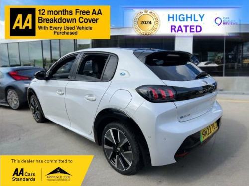 This 2022 Peugeot E-208 GT Premium boasts an MOT valid until September 2026 and a clear vehicle history check, offering peace of mind for its next owner. This electric hatchback features a 50 kWh battery providing a maximum range of 225 miles when new. It has covered a low mileage of just 15,200 miles for its age and was last serviced on 12th November 2024.The E-208 GT Premium is designed for convenience and efficiency. A full charge at home using a 7kW charger takes approximately 7 hours and 30 minutes, while rapid public charging can replenish the battery from empty to 80% in as little as 30 minutes. These charging times and its impressive range demonstrate how this electric Peugeot offers a superior ownership experience compared to other vehicles in its class. s, air conditioning, alloy wheels, central locking, electric windows, power assisted steering, 12v power socket, bluetooth, cruise control, engine immobiliser, front airbags, keyless door locks, mp3, privacy/tinted glass, side impact airbags, voice control, full service history, v5 registration document