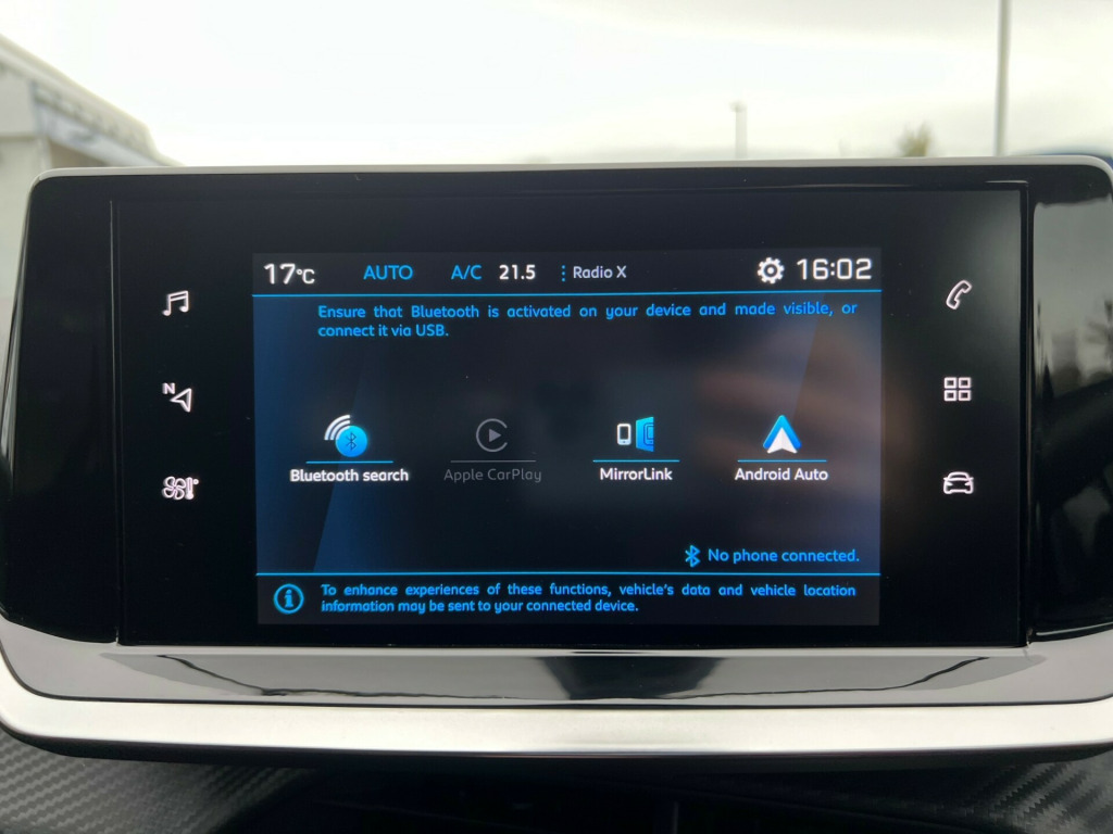 v power socket, 6-speaker radio - mp3 compatible, bluetooth telephone facility, dab - digital audio broadcasting, front usb socket x1, mirror screen - apple carplay and android auto, peugeot i-cockpit 7in capacitive colour touchscreen, peugeot connect sos and assistance, roof mounted aerial, smartphone docking station, 16in alloy wheels - soho, dark tinted rear windows and rear side windows, door mirror shells - nera black, electric - heated and power folding door mirrors, exhaust tailpipe - single, exterior door handles - body-colour, gloss black rear cluster connecting strip, model designation badges - front and rear, one-touch electric front windows with pinch protection, one-touch electric rear windows with pinch protection, puncture kit, radiator grille - chrome chequered, rear number plate lights x2, rear spoiler - diamond black, tailgate with heated rear windscreen and wiper blade, visibility pack, abs with electronic brake force distributor ebd and emergency brake assist eba, active safety brake - pedestrians, airbags - adaptive driver and front passenger, airbags - curtain front and rear, airbags - driver and front passenger side, alarm - thatcham category 1 approved, automatic door locking when moving off, automatic hazard light activation upon heavy brake application, child locking functionality on rear doors, deadlocking, esp - electronic stability programme with hill start assist, electronic code immobiliser, front three-point retractable seatbelts with force limiters, isofix child seat fittings - x2 - second row, lane keeping assist, manual parking brake, rear windscreen wiper triggered automatically in reverse gear, seatbelt unfastened on the move audible and visual alert for front and rear seats, speed limit recognition and recommendation, air conditioning - automatic, aluminium pack, dashboard - front and rear door panel finish - carbon effect, driver seat mechanical height adjustment, electrochrome rear view mirror, front interior light with reading spotlights x2, front optimised safety headrests and rear retractable headrests - x3 - height-adjustable, leather steering wheel, low centre console, manual rear view mirror, map pockets on front seat backs, peugeot i-cockpit compact steering wheel, peugeot i-cockpit with 3.5in instrument panel display, piano keys - gloss black plated toggle switches to access main functions of vehicle, push button start, rear reversing lights, roof lining - light grey, seating - comfort front seats, seating - driver and front passenger seat manual adjustment - longitudinal and back rest angle, seating- 1-3 - 2-3 folding rear seat, driver attention warning, electric power steering with reach and rake adjustable steering column, exterior temperature indicator with ice warning, gear shift indicator, multifunction trip computer, programmable cruise control and speed limiter, rear parking sensors, tyre pressure sensors, voice recognition - radio-navigation-telephony features, eco led headlights, headlights left on audible warning, led daytime running lights with distinctive tooth design