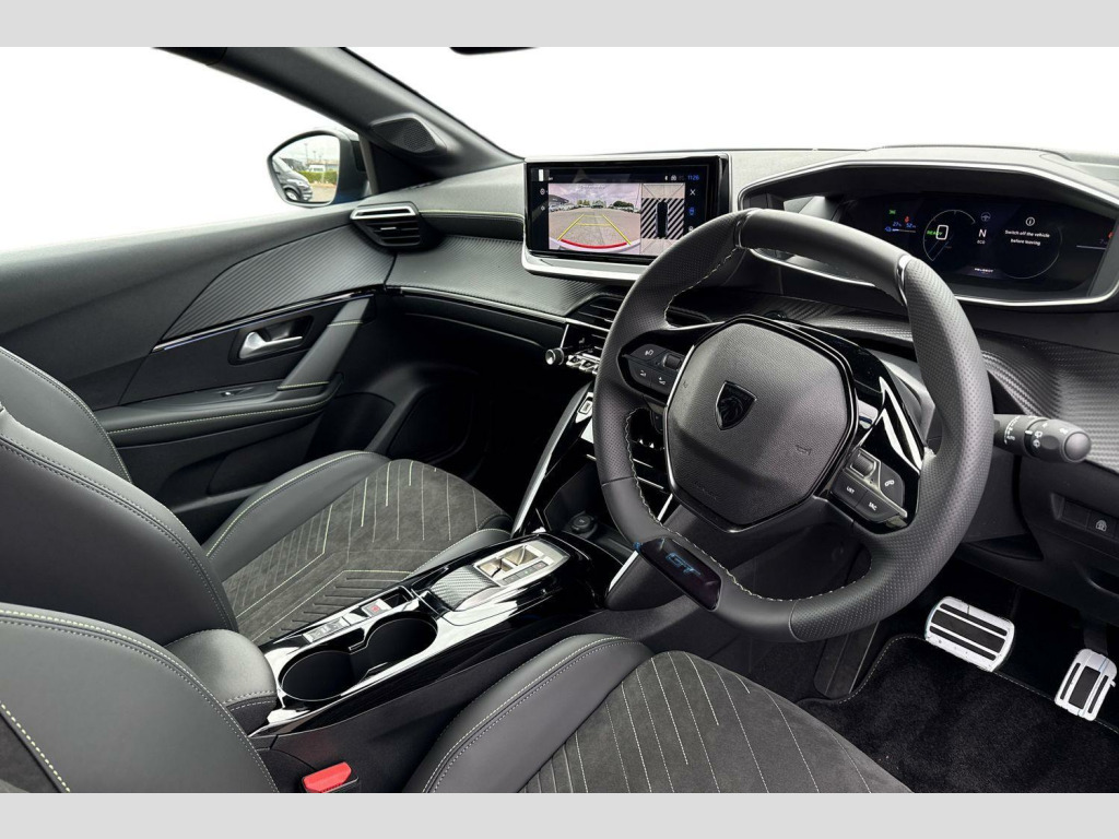 12V Power Socket, 17in Alloy Wheels - YANAKA - Two-Tone Diamond Cut with Gloss Black Inserts, 180 Degree HD Rear Camera, 208 Model Designation Badges Front and Rear, 360 Degree HD Front and Rear Cameras - Blind Spot Monitoring, 6 Speakers - 2 Tweeters and 4 Door Speakers, 7.4KW Monophase On Board Charger, 8 Colour Personalisable Ambient Lighting, ABS with Electronic Brake Force Distributor EBD and Emergency Brake Assist EBA, AVAS - Acoustic Vehicle Alerting System, Acoustic Windscreen, Active Safety Brake - Night Function - Cyclists - Pedestrians, Adamite Green Contrast Stitching on Front and Rear Door Armrests - Front Centre Console and Dashboard Facia, Air Conditioning - Automatic Mono-Zone Climate Control, Airbags - Driver and Front Passenger Side, Airbags - Driver and Front Passenger with Passenger Airbag Deactivation Function, Airbags - Front and Rear Curtain, Alarm, Aluminium Pedals, Antenna - Gloss Blak Fin Design, Automatic Door Locking When Moving Off, Automatic Hazard Light Activation Upon Heavy Brake Application, Bluetooth Telephone Facility, Boot Lighting, Central Front Armrest with Storage Compartment, Child Locking Functionality on Rear Doors, DAB Radio - Digital Audio Broadcasting, Dark Tinted Rear Side and Tailgate Windows, Dashboard - Front and Rear Door Panel Finish - Carbon Effect, Deadlocking, Diamond Black Roof, Dichroic E Monogram on C Pillar and Tailgate, Door Mirror Shells - Gloss Black, Door Sill Protection with PEUGEOT Signature Lettering, Drive Assist Pack Plus - Adaptive Cruise Control with Stop-Go-Lane Positioning Assist, Drive Mode Selection - Eco-Normal-Sport, Driver Attention Warning, Driver and Front Passenger Seat Mechanical Height Adjustment, Driver and Passenger Sunvisors - Front Footwells and Central Storage with LED Lighting, ESP - Electronic Stability Programme with Hill Start Assist, Electric - Heated and Power Folding Door Mirrors with Courtesy Floor Lighting, Electric Parking Brake, Electric Power Steering with Reach and Rake Adjustable Steering Column, Electrochrome Rear View Mirror, Electronic Code Immobiliser, Exterior Door Handles - Body-Colour, Exterior Temperature Indicator with Ice Warning, Front Bumper Grille - Gloss Black with Body-Colour Accents, Front Optimised Safety Headrests and Rear Retractable Headrests - x3 - Height-Adjustable, Front Three-Point Retractable Seatbelts with Force Limiters, Front USB-C - Data and Charge x1 and USB-C - Charge x1, Front and Rear Parking Sensors, Full LED Headlights with Automatic Height Adjustment and PEUGEOT Smartbeam Assist, GT Model Designation Badging on Tailgate, Gear Lever - e-Toggle, Gloss Black B Pillar, Gloss Black Rear Cluster Connecting Strip, Gloss Black Wheel Arch Extensions, Gloss Black Window Weatherstrips, Grained Black Front and Rear Bumper Inserts, Headlights Left On Audible Warning, Heat Pump, Heated Front Seats - Driver Seat Multi-Way Electric Adjustment - Includes Electric Lumbar Adjustment - Driver Seat Multi-Point Massage Function, High Centre Console with 2 Cup Holders, ISOFIX Child Seat Fittings - x2 - Second Row, LED 3-Claw Horizontal Rear Lighting Signature with Daylight Function and LED Break Lights - Indicators and Reversing Lights, LED Daytime Running Lights with Distinctive 3-Claw Signature, LED Front Indicators, LED Front Interior Light with Front LED Reading Spotlights x2 and Rear LED Reading Spotlights x2, Lane Keeping Assist, Luxury Carpet Mats, Mode 3 Type 2 Cable for Wallbox Charging - 6m, Multifunction Full Grain Perforated Leather Steering Wheel with Adamite Green Stitching and GT Emblem, Multifunction Trip Computer, Navigation and Vision Pack, One-Touch Electric Front and Rear Windows with Pinch Protection, PEUGEOT i-Cockpit - 10in Capacitive Colour Touchscreen, PEUGEOT i-Cockpit - 10in Configurable Colour 3D Head-Up Instrument Panel, PEUGEOT i-Cockpit Compact Steering Wheel, Peugeot Connect SOS and Assistance, Peugeot Open and Go System - Keyless Entry, Peugeot i-Connect Infotainment System, Piano Keys - Gloss Black Plated Toggle Switches to Access Main Functions of Vehicle, Pre-Heating Functionality, Programmable Cruise Control and Speed Limiter, Push Button Start, Rear Bumper - Gloss Black Finish, Rear Spoiler - Diamond Black, Rear USB-A x1 and USB-C x1, Rear Windscreen Wiper Triggered Automatically in Reverse Gear, Remote Plip x2 for Locking and Unlocking - includes Emergency Key Blade, Roof Lining - Mistral Black, Seatbelt Unfastened on the Move Audible and Visual Alert for Front and Rear Seats, Seating - Driver and Front Passenger Dynamic Seats, Seating - Driver and Front Passenger Seat Manual Adjustment - Longitudinal and Back Rest Angle, Seating- 1-3 - 2-3 Folding Rear Seat, Smartphone Docking Station, Speed Limit Recognition and Recommendation, Tailgate with Heated Rear Windscreen and Wiper Blade, Tyre Inflation Kit, Tyre Pressure Monitor, Visibility Pack - Automatic Lights, Visibility Pack - Automatic Windscreen Wipers, Visibility Pack - Follow Me Home Headlights, Voice Recognition with Smartphone, Wireless Mirror Screen - Apple CarPlay and Android Auto