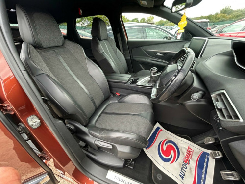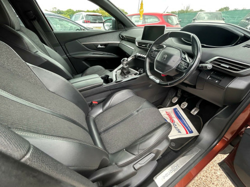 Discover this 2018 Peugeot 3008 BlueHDi GT Line, a stylish and practical SUV that offers an exceptional driving experience. This Euro 6 compliant model boasts a 1.5 litre diesel engine, delivering an impressive 55 miles per gallon, making it an economical choice for both city driving and longer journeys. The GT Line trim ensures a premium feel, enhanced by features such as a convenient smartphone charging plate with wireless capability and striking blue ambient lighting that illuminates the head up instrument panel and display.This Peugeot 3008 also benefits from full LED headlights for superior visibility and a Safety Plus Pack, which includes Blind Spot Assistance, to help keep you safe on the road. Inside, you'll appreciate the automatic dual zone climate control for personalised comfort. Furthermore, this vehicle offers a low CO2 emission rating and falls into a low insurance group, indicating its affordability to own and run. Its generous boot space makes it incredibly versatile for families or those needing extra room for luggage or shopping, setting it apart from many similar vehicles. 3 - 2-3 folding rear seat - magic flat modularity with controls accessible from the boot, 12v sockets x3 - dashboard - rear cabin and load area, 18in alloy wheels - detroit - diamond cut, 3d connected navigation, 6-speaker radio - mp3 compatible, abs - anti-lock braking system with ref - electronic braking distribution and afu - emergency braking assistance, aikinite contrast stitching to armrest - gear lever gaiter and dashboard facia, air conditioning - automatic dual zone climate control, airbags - adaptive driver and front passenger, airbags - driver and front passenger side, airbags - front and rear curtain, alarm, automatic door locking when moving off, automatic hazard light activation upon heavy brake application, blue ambient lighting for connecting zone, blue ambient lighting to front door panels - storage - footwells and cupholders, blue ambient lighting to head-up instrument panel, bluetooth telephone facility, body protectors in black, central front armrest with butterfly-wing opening and illuminated compartment, chrome front fog light trim, dab digital radio, dsc - dynamic stability control and asr - electronic anti-skid system, dark tinted rear side and tailgate windows, dashboard - front and rear door panel finish - brumeo fabric, dashboard trim - satin chrome, door mirror mounted led peugeot lion approach lights, electric child locking functionality on rear windows and doors, electric parking brake includes hill assist, electric power steering with reach and rake adjustable steering column, electronic code immobiliser, exterior door handles - body-colour, exterior temperature indicator with ice warning, fixing rings x4 in load area, flocked front door pocket interior, flocked glove box interior, front bumper scuff plate in lion grey, front central console with two cup-holders, front door panel recess trim - satin chrome, front interior light with reading spotlights x2 and rear interior light with timer, front optimised safety headrests and rear retractable headrests - x3 - height-adjustable, front three-point retractable seatbelts - height-adjustable with pre-tensioners and force limiters, front windscreen wiper with magic wash cleaning system, front wing trim - black with chrome detail, front and rear parking sensors, full led headlights, gt line emblems in satin copper - front wings and tailgate, gear lever - satin chrome, gear shift indicator, gloss black b and c pillar and aerodynamic deflector trim, gloss black rear cluster connecting strip, gloss black windscreen trim, grab handles x4 - retractable - damped, headlights left on audible warning, heated rear windscreen with integrated antenna, isofix child seat fittings - x3 - in the front passenger and outer rear seats, illuminated glove box, illuminated vanity mirrors, interior door handles - satin chrome, led daytime running lights built into the headlight unit, led foglamps including static cornering function, led interior lighting - roof - storage spaces - load area, led sequential scrolling front indicators, led side indicator lights integrated into door mirrors, lane departure warning system, map pockets on front seat backs, mechanical height-adjustable drivers seat, mirror screen, mistral black floor mats with aikinite contrast stitching, mistral full-grain perforated leather steering wheel with aikinite stitch detail and satin chrome gt line emblem, multifunction trip computer, one-touch electric front and rear windows with pinch protection, peugeot connect sos and assistance, peugeot i-cockpit, peugeot i-cockpit amplify, power folding door mirrors - includes led courtesy approach lights, programmable cruise control and speed limiter, radiator grille - chrome edge trim with chequered design and black peugeot lettering, reading spotlights x2 in rear, rear armrest with ski flap and two cup holders, rear bumper facia - chrome, rear centre console ventilation system, rear coat hooks x2, rear led peugeot signature claw effect lights - with daylight function, rear number plate lights x2, rear spoiler - body colour with stainless steel edging trim, rear three-point retractable seatbelts x3 - with pre-tensioners and force limiters in the outer rear seats, rear windscreen wiper triggered automatically in reverse gear, remote control central locking, roof - black diamond, roof lining - mistral black, safety pack, safety plus pack, satin chrome digital instrument panel and touch screen trim, scorpions tail and toggle switch trim - satin chrome, seatbelt unfastened on the move audible and visual alert for front and rear seats, seatbelt not fastened audible and visual alert for front seats, seating - driver seat lumbar adjustment, seating - driver seat manual adjustment - longitudinal and back rest angle, seating - driver and front passenger seat height adjustment, seating - front passenger seat - flat folding with picnic table, seat
