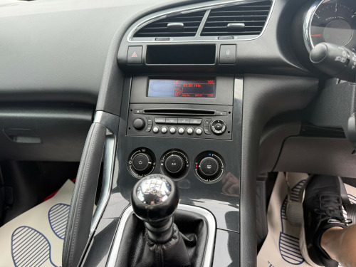 uise control + speed limiter, digital clock, rear parking aid, speed sensitive power steering, trip computer, diesel particulate filter, peugeot connect with usb and bluetooth, rd45 stereo radio + mp3 cd player, speed sensitive stereo volume, steering column mounted multifunction controls, body colour door mirrors and handles, body coloured bumpers, electric front windows, electric rear windows, front fog lights, led daytime running lights, led rear lights, rear wiper, split tailgate, 2 isofix seat anchors, 3 x 12v power sockets, 60/40 split folding rear seat back and squab, adaptable boot storage, aluminium door sill trims, centre console storage, cupholders - 2 in rear centre armrest, flat folding rear seats, front headrests, heating/air conditioning outlet in rear, height adjustable driver/front passenger seats, instrument panel light dimmer, leather steering wheel, manual air conditioning, manual height/reach adjust steering wheel, mistral cloth upholstery, rear centre armrest/ski flap, rear headrests, rear passenger footwell storage, reclining front seats, second glovebox behind steering wheel, variable boot floor, retrovision pack - 3008, visibility pack - 3008, 3 point seatbelts on all rear seats, abs + ebd + eba, driver smart airbag, electronic parking brake, esp with asr, front and rear curtain airbags, front and rear pre-tensioning and force limiting seatbelts, front passenger smart airbag with deactivate switch, hill start assist, side airbags x 2, tyre pressure sensor, automatic door lock/re-lock after 30 seconds, central locking button on dash, deadlocks, locking wheel bolts, remote control central locking with two plip keys, rolling code transponder immobiliser, black instrument panel with red needles and white backlighting, space saver spare wheel, 17'' Alloys
