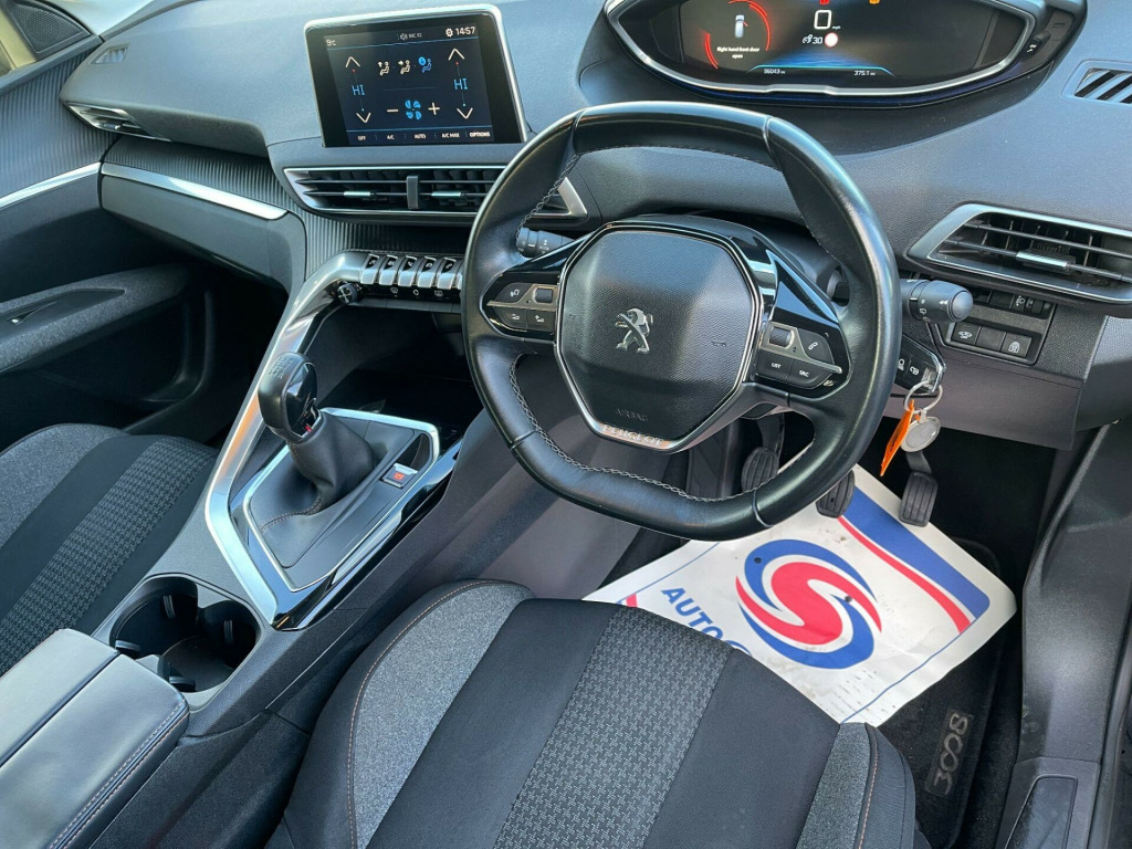 This 2018 Peugeot 3008 BlueHDi Active boasts a full service history right up to February 2026, offering excellent peace of mind. This Euro 6 compliant 1.6 litre diesel model comes with a clear vehicle history check and a 3 month warranty, alongside 12 months MOT provided on purchase. The Active trim level includes a stylish Black Gear Lever, Mirror Screen with Apple CarPlay integration, and rear parking sensors with parking assistance. You'll also appreciate the automatic dual zone climate control for a comfortable cabin temperature and the distinctive blue ambient lighting to the head up instrument panel.This Peugeot 3008 stands out with its impressive fuel economy, achieving a remarkable 71 miles per gallon, which is better than many similar vehicles. Its low CO2 emissions also contribute to its efficiency, and it sits in a low insurance group, making it an economical choice to own and run. Furthermore, you'll benefit from a large boot space, providing ample room for shopping, luggage, or sports equipment, further enhancing its practicality for everyday use.. 1-3 - 2-3 Folding Rear Seat - Magic Flat Modularity with Controls Accessible From the Boot, 12V Sockets x3 - Dashboard - Rear Cabin and Load Area, 17in Alloy Wheels - Chicago, 6-Speaker Radio - MP3 Compatible, ABS - Anti-Lock Braking System with REF - Electronic Braking Distribution and AFU - Emergency Braking Assistance, Air Conditioning - Automatic Dual Zone Climate Control, Airbags - Adaptive Driver and Front Passenger, Airbags - Driver and Front Passenger Side, Airbags - Front and Rear Curtain, Alarm, Automatic Activation of Hazard Warning Lights, Automatic Door Locking When Moving Off, Blue Ambient Lighting for Connecting Zone, Blue Ambient Lighting to Head-Up Instrument Panel, Bluetooth Telephone Facility, Body Protectors in Black, Central Front Armrest with Butterfly-Wing Opening and Illuminated Chiller Compartment, Child Locking Functionality on Rear Windows and Doors, Chrome Front Fog Light Trim, DAB Digital Radio, DSC - Dynamic Stability Control and ASR - Electronic Anti-Skid System, Dashboard - Front and Rear Door Panel Finish - Carbon Effect, Dashboard Trim - Satin Chrome, Door Mirror Shells - Body Coloured, Driver Attention Alert System 1 - DAA1, Electric Parking Brake includes Hill Assist, Electric Power Steering with Reach and Rake Adjustable Steering Column, Electric and Heated Door Mirrors, Electronic Code Immobiliser, Exterior Door Handles - Body-Colour, Exterior Temperature Indicator with Ice Warning, Fixing Rings x4 in Load Area, Flocked Glove Box Interior, Front Central Console with Two Cup-Holders, Front Interior Light with Reading Spotlights x2 and Rear Interior Light with Timer, Front Optimised Safety Headrests and Rear Retractable Headrests - x3 - Height-Adjustable, Front Three-Point Retractable Seatbelts - Height-Adjustable with Pre-Tensioners and Force Limiters, Front Windscreen Wiper with Magic Wash Cleaning System, Front Wing Trim - Black, Gear Lever in Black, Gear Shift Indicator, Gloss Black B and C Pillar and Aerodynamic Deflector Trim, Gloss Black Rear Cluster Connecting Strip, Gloss Black Windscreen Trim, Grab Handles x4 - Retractable - Damped, Halogen Fog Lamps, Halogen Headlamps, Headlights Left On Audible Warning, Heated Rear Windscreen with Integrated Antenna, ISOFIX Child Seat Fittings - x3 - In the Front Passenger and Outer Rear Seats, Illuminated Glove Box, Interior Door Handles - Satin Chrome, LED Daytime Running Lights, LED Interior Lighting, LED Side Indicator Lights Integrated into Door Mirrors, Lane Departure Warning System, Map Pockets on Front Seat Backs, Mechanical Height-Adjustable Drivers Seat, Mirror Screen, Mistral Full-Grain Leather Steering Wheel with Stitch Detail, Multifunction Trip Computer, One-Touch Electric Front and Rear Windows with Pinch Protection, Peugeot i-Cockpit, Programmable Cruise Control and Speed Limiter, Radiator Grille - Chrome Edge Trim and Facets, Reading Spotlights x2 in Rear, Rear Armrest with Ski Flap and Two Cup Holders, Rear Bumper Facia - Chrome, Rear Centre Console Ventilation System, Rear Coat Hooks x2, Rear LED Peugeot Signature Claw Effect Lights - With Daylight Function, Rear Number Plate Lights x2, Rear Parking Sensors, Rear Spoiler - Body Colour with Stainless Steel Edging Trim, Rear Three-Point Retractable Seatbelts x3 - with Pre-Tensioners and Force Limiters in the Outer Rear Seats, Rear Windscreen Wiper Triggered Automatically in Reverse Gear, Remote Control Central Locking, Roof - Body Colour, Roof Lining - Salin Light Grey, Safety Pack, Satin Chrome Digital Instrument Panel and Touch Screen Trim, Scorpions Tail and Toggle Switch Trim - Satin Chrome, Seatbelt Unfastened on the Move Audible and Visual Alert for Front and Rear Seats, Seatbelt not Fastened Audible and Visual Alert for Front Seats, Seating - Driver Seat Manual Adjustment - Longitudinal and Back Rest Angle, Seating - Driver and Front Passenger Seat Height Adjustment, Seating - Front Passenger Seat Manual Adjustment - Longitudinal and Back Rest Angle, Side Window Trim - Bla. Full service history