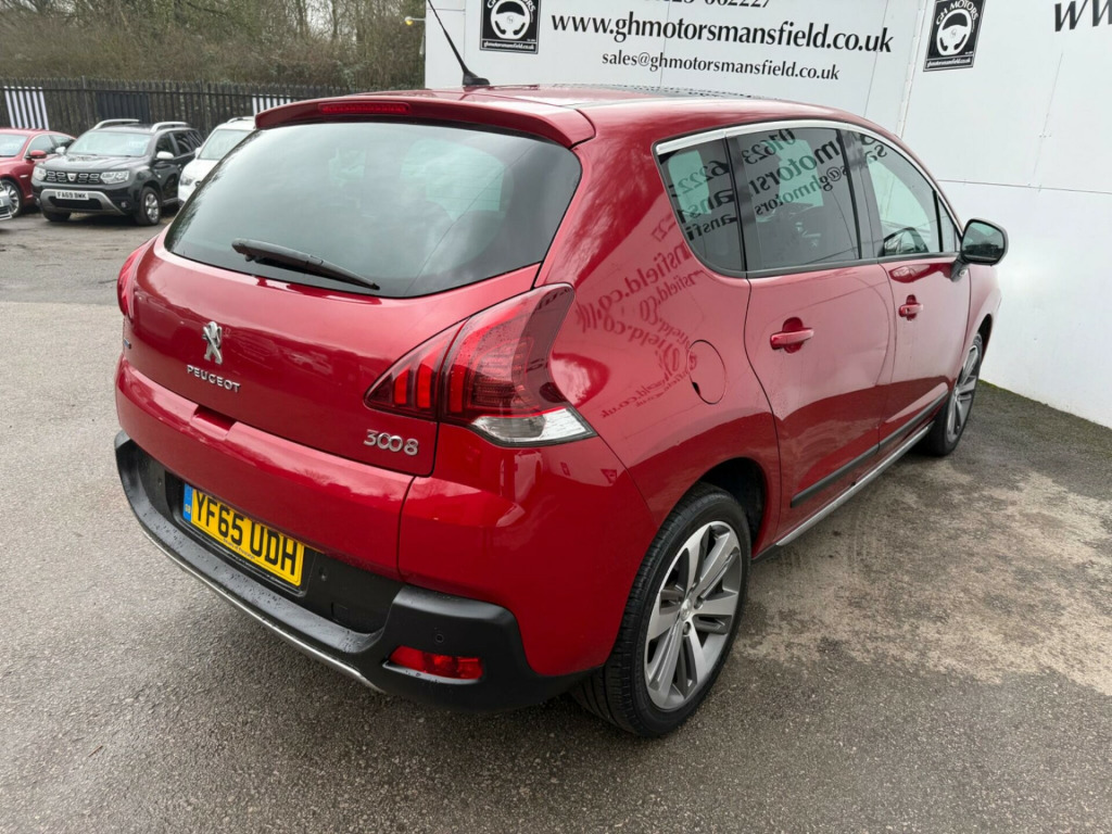 This 2015 Peugeot 3008 BlueHDi Allure is a standout choice with remarkably low mileage for its age, having covered just 66,595 miles. This Euro 6 compliant 1.6 litre diesel engine variant offers an impressive fuel economy of 69 miles per gallon, making it an economical option for your journeys. You can drive away with confidence as it comes with a full 12 months MOT provided on purchase. The Allure trim level ensures a well equipped experience, featuring a helpful Head Up Display, front and rear parking aids with sensors, and a reversing camera to assist with manoeuvring. Inside, you will appreciate the digital climate control for personalised comfort.12 MONTHS WARRANTY £299The highlights of this Peugeot 3008 demonstrate its superiority over other vehicles in its class. Its exceptional fuel economy of 69 mpg means fewer stops at the petrol station and more money in your pocket. The low CO2 emissions are also a significant benefit, contributing to a lower environmental impact. Furthermore, its low insurance group rating makes it an affordable choice to own and run. Practicality is also a key strength, with generous boot space perfect for shopping trips or family holidays.. 12V Power Socket, 18in Alloy Wheels - Icauna, ABS - Anti Lock Braking System, ASR - Anti Slip Regulation, Adventure Pack - Aluminium Finish, Air Conditioning - Digital Climate Control, Airbags - Curtain SMART Front, Airbags - Curtain SMART Rear, Airbags - Front Passenger with Deactivation Switch, Alarm - Ultrasonic, Armrest - Rear with Storage, Automatic Door Locking When Moving Off, Bluetooth Handsfree Kit, Bumpers - Chrome Front and Rear, Cielo Panoramic Glass Roof with Electric Blind, Cruise Control and Speed Limiter, Deadlocks, Door Handles - Body Coloured, Door Mirrors - Body Coloured, Door Mirrors - Electric Folding, Drinks Holders x2 - Rear, EBA - Emergency Brake Assist, EBFD - Electronic Brake Force Distribution, ESP - Electronic Stability Programme, Electric Parking Brake, Electric Windows - Front and Rear, Electrochrome Rear View Mirror, Exterior Courtesy Light, Family Pack, Flat Folding 60-40 Split Rear Seats, Front Fog Lights, Head Up Display, Headlights - Automatic, Heating - Air Conditioning Outlet in Rear, Hill Assist, ISOFIX Location Points - Rear x2, LED Daytime Running Lights, Leather Steering Wheel with Stitch Detail, Locking Wheel Bolts, Luggage Compartment - Multi Position Floor, Luggage Compartment - Portable Light, Parking Aid - Front, Parking Aid - Reversing Camera, Parking Space Measurement System, Peugeot Connect RD45 Radio-CD and MP3, Peugeot Connect USB, Picnic Table, Pollen Filter, Rain Sensing Front Wipers, Rake and Reach Adjustable Steering Wheel, Rear Lights - LED, Rear Parking Aid, Remote Control Central Locking, Retrovision Pack, SMART Driver Front Airbag, SMART Passenger Front Airbag, SMART Side Airbags, Satellite Navigation - Peugeot Connect RT6 inc Bluetooth, Seats - Drivers Lumbar Support, Seats - Fold Flat, Seats - Fold Flat Front Passenger, Seats - Front Height Adjustment, Speed Related Electric Power Assisted Steering, Storage - Additional Glovebox, Storage - Centre Console, Storage - Compartment in Row 2 Footwells, Sunblinds - Row 2, Tailgate - Split, Tinted Windows - Rear, Traction Control, Trip Computer, Tyre Pressure Sensors, Tyre Repair Kit, Visibility Pack.