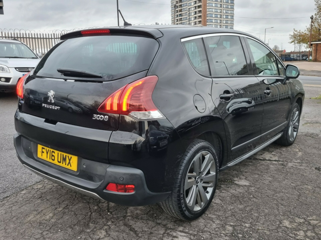 We Are Proud To Present This 2016 Peugeot 3008 1.6 BLUEHdi Allure 5dr Presented In Gleaming Black With Complementing 1/2 Black Interior. This Amazing Car Includes, 18'' Alloy Wheels, Panoramic Roof, Sat Nav, Front + Rear Sensors With Reversing Camera, Entertainment System, £35 ROAD TAX, FULL SERVICE HISTORY, Privacy Glass, Automatic Led Daytime Running Lights, Cruise Control, Dual Climate with Air Conditioning, CD Player With AUX And USB Connectivity, Automatic Gearbox And Multifunction Leather Steering Wheel. Do Not Miss This Stunning Example, Reserve This Vehicle Now For £100,FCA Approved Garage, TOP PRICE PAID ON PART EXCHANGE, BUY WITH CONFIDENCE. in alloy wheels - icauna, adventure pack - aluminium finish, chrome exterior pack, cielo panoramic glass roof, dark tinted rear side and tailgate windows, electric windows - front and rear, led front indicators, locking wheel nuts for alloy wheels, puncture repair kit, retrovision pack, visibility pack, 3 position boot floor, air conditioning - automatic dual zone, family pack, flat folding 60-40 split rear seats, flat folding front passenger seat with picnic table, heating - air conditioning outlet in rear, height adjustment of driver & passenger seats, leather steering wheel with stitch detail, rear centre armrest, seats - drivers lumbar support, tailgate - split, abs with ebfd and emergency brake assist, automatic door locking, automatic electric parking brake, deadlocks, esp and asr electronic stability programme and traction control, front seatbelts with pretensioners and force limiters, hill assist, isofix location points - rear, rear seatbelts with three point seatbelts and force limiters, remote control central locking with two plip keys, rolling code transponder immobiliser, smart curtain airbags, smart driver front airbag, smart passenger front airbag, smart side airbags, ultrasonic alarm - thatcham category 1 approved, bluetooth telephone facility, peugeot connect rd45 stereo radio - mono cd player with mp3 playback, peugeot connect usb, satellite navigation, colour head up display, colour reversing camera, cruise control and speed limiter, front and rear parking aid, parking space measurement system, speed related electric power assisted steering, tyre pressure sensors, front fog lights, halogen headlamps, led claw effect rear lights, led daytime running lights
