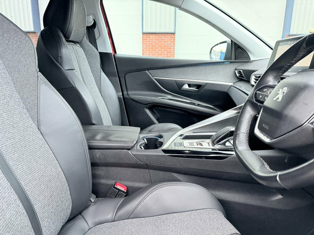 Automatic PEUGEOT 3008 1.6 BlueHDi Allure EAT in Ultimate Red Metallic with Half Black Leather Seats, Full Colour Satellite Navigation, Bluetooth Phone and Audio Compatibility, DAB Digital Radio, Dual Touchscreen Climate Control with Air Conditioning. The Interior Ambient Mood Lighting with the striking Blue to the head up instrument panel, Door Cards, Cup Holders and Dashboard adds a touch of class and sophistication., Apple Car Play / Android + Mirror Link. To the Exterior there is Rear Sunscreen Privacy Glass, Electric Folding Door Mirrors with Blind Spot Monitoring System, Acoustic Colour Coded Parking Sensors Front and Rear with a Full 360 Camera System with Aerial View and sits on 18" Diamond Cut Two Tone Alloy Wheels. . Complemented with Full Service History - Last Service January 2026, 12 Month MOT with no advisories until January 2027, Two New Front Tyres, 2 Keys and 3 Month Warranty for your peace of mind. ***** We have over 660 Five Star Reviews on Auto Trader ***** and Highly Rated Award Winner for the 8th Year Running for Customer Service. Call Adrian on 07831 695 637 1-3 - 2-3 Folding Rear Seat - Magic Flat, 12V Sockets x3 - Dashboard - Rear Cabin , 18in Alloy Wheels - Detroit - Diamond Cu, 3D Connected Navigation, 6-Speaker Radio - MP3 Compatible, ABS - Anti-Lock Braking System with REF , Air Conditioning - Automatic Dual Zone C, Airbags - Adaptive Driver and Front Pass, Airbags - Driver and Front Passenger Sid, Airbags - Front and Rear Curtain, Alarm, Automatic Door Locking When Moving Off, Automatic Hazard Light Activation Upon H, Blue Ambient Lighting for Connecting Zon, Blue Ambient Lighting to Front Door Pane, Blue Ambient Lighting to Head-Up Instrum, Bluetooth Telephone Facility, Body Protectors in Black, Central Front Armrest with Butterfly-Win,