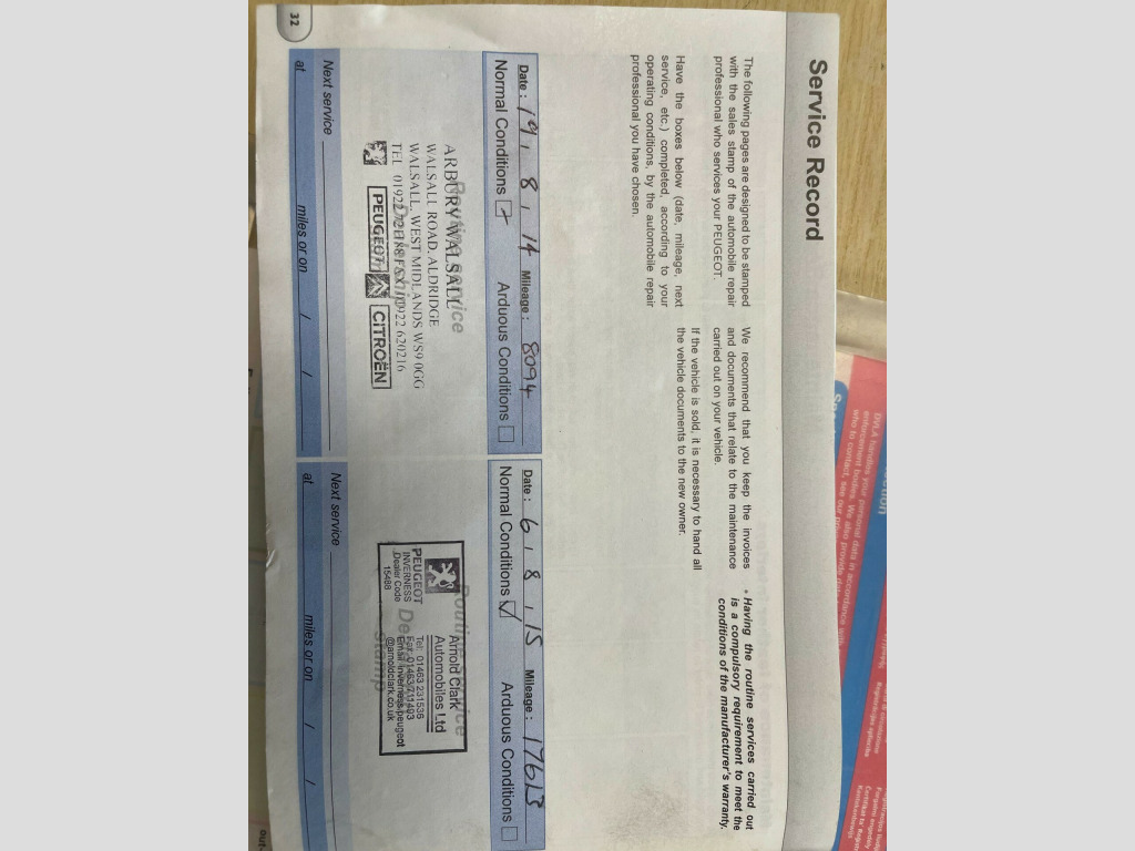 12 MONTH MOT. 12V Power Socket, 17in Alloy Wheels - Samara, ABS - Anti Lock Braking System, ASR - Anti Slip Regulation, Air Conditioning - Manual, Airbags - Curtain SMART Front and Rear, Armrest - Rear with Storage, Automatic Door Locking When Moving Off, Bluetooth, Cruise Control and Speed Limiter, Deadlocks, Door Handles - Body Coloured, Door Mirrors - Body Coloured, EBA - Emergency Brake Assist, EBFD - Electronic Brake Force Distribution, ESP - Electronic Stability Programme, Electric Parking Brake, Electric Windows - Front and Rear, Flat Folding 60-40 Split Rear Seats, Front Fog Lights, Headlights - Automatic, Heating - Air Conditioning Outlet in Rear, Hill Assist, ISOFIX Location Points - Rear x2, Leather Trimmed Steering Wheel, Locking Wheel Bolts, Luggage Compartment - Multi Position Floor, Luggage Compartment - Portable Light, Peugeot Connect RD45 Radio-CD and MP3, Peugeot Connect USB, Rain Sensing Front Wipers, Rake and Reach Adjustable Steering Wheel, Rear Parking Aid, Remote Control Central Locking, SMART Driver Front Airbag, SMART Passenger Front Airbag Includes Deactivation Switch, SMART Side Airbags, Seats - Fold Flat, Seats - Fold Flat Front Passenger, Seats - Front Height Adjustment, Spare Wheel, Speed Related Electric Power Assisted Steering, Storage - Additional Glovebox, Storage - Centre Console, Storage - Compartment in Row 2 Footwells, Tailgate - Split, Trip Computer. Part service history