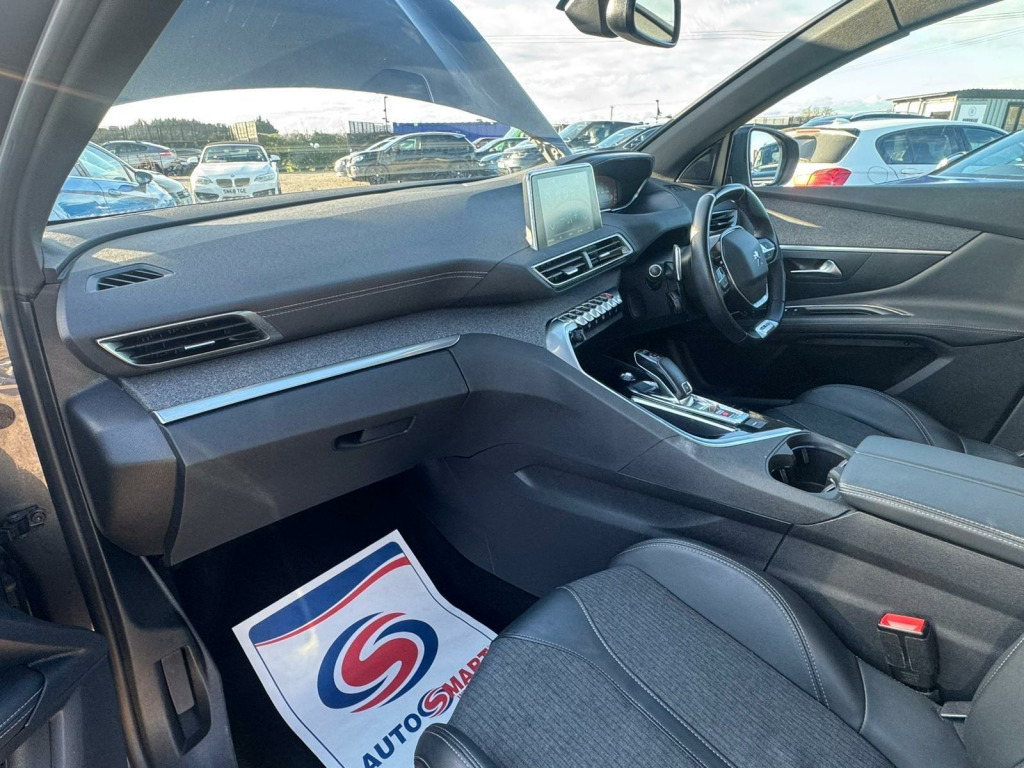 This 2019 Peugeot 3008 GT Line Premium boasts exceptionally low mileage for its age, having covered just 28,000 miles. This well appointed SUV features a responsive 1.6 litre petrol engine and meets Euro 6 emissions standards. Inside, you'll find a Smartphone Charging Plate for convenient wireless phone charging, alongside Heated Front Seats and a Driver Seat Multi-Point Massage Function for enhanced comfort. The GT Line Premium also includes a Smart Electric Tailgate with Keyless Entry for effortless access, and Full LED Headlights with Automatic On functionality as part of the Visibility Pack.The Peugeot 3008 GT Line Premium offers a compelling blend of performance and practicality. Its acceleration from 0-62mph in just 8.0 seconds indicates a more dynamic driving experience compared to many similar vehicles. Furthermore, its low CO2 emissions highlight its efficiency, making it a more environmentally conscious choice. The generous boot space provides ample room for luggage or shopping, further enhancing its appeal as a versatile and capable SUV. 3 - 2-3 folding rear seat - magic flat modularity with controls accessible from the boot, 12v sockets x3 - dashboard - rear cabin and load area, 180 degree colour reversing camera with wash system, 19in alloy wheels - washington - diamond cut, 230v socket, 3d connected navigation, 6-speaker radio - mp3 compatible, abs - anti-lock braking system with ref - electronic braking distribution and afu - emergency braking assistance, aikinite contrast stitching to armrest - gear lever gaiter and dashboard facia, air conditioning - automatic dual zone climate control, airbags - adaptive driver and front passenger, airbags - driver and front passenger side, airbags - front and rear curtain, alarm, aluminium longitudinal roof bars, automatic door locking when moving off, automatic hazard light activation upon heavy brake application, blue ambient lighting for connecting zone, blue ambient lighting to front door panels - central storage and cupholders, blue ambient lighting to head-up instrument panel, bluetooth telephone facility, body protectors in black, central front armrest with butterfly-wing opening and illuminated compartment, chrome front fog light trim, dab digital radio, dsc - dynamic stability control and asr - electronic anti-skid system, dark tinted rear side and tailgate windows, dashboard - front and rear door panel finish - brumeo fabric, dashboard trim - satin chrome, door mirror mounted led peugeot lion approach lights, door mirror shells - nera black, electric child locking functionality on rear windows and doors, electric parking brake includes hill assist, electric power steering with reach and rake adjustable steering column, electronic code immobiliser, exterior door handles - body-colour, exterior temperature indicator with ice warning, fixing rings x4 in load area, flocked front door pocket interior, flocked glove box interior, front bumper scuff plate in lion grey, front central console with two cup-holders, front door panel recess trim - satin chrome, front interior light with reading spotlights x2 and rear interior light with timer, front optimised safety headrests and rear retractable headrests - x3 - height-adjustable, front three-point retractable seatbelts - height-adjustable with pre-tensioners and force limiters, front windscreen wiper with magic wash cleaning system, front wing trim - black with chrome detail, front and rear parking sensors, full led headlights, gt line emblems in satin copper - front wings and tailgate, gear lever - satin chrome, gear shift indicator, gloss black b and c pillar and aerodynamic deflector trim, gloss black rear cluster connecting strip, gloss black windscreen trim, grab handles x4 - retractable - damped, headlights left on audible warning, heated front seats and driver seat multi-point massage function, heated rear windscreen with integrated antenna, isofix child seat fittings - x3 - in the front passenger and outer rear seats, illuminated glove box, illuminated vanity mirrors, interior door handles - satin chrome, led daytime running lights built into the headlight unit, led foglamps including static cornering function, led interior lighting - roof - storage spaces - load area, led sequential scrolling front indicators, led side indicator lights integrated into door mirrors, lane departure warning system, map pockets on front seat backs, mechanical height-adjustable drivers seat, mirror screen, mistral black floor mats with aikinite contrast stitching, mistral full-grain perforated leather steering wheel with aikinite stitch detail and satin chrome gt line emblem, multifunction trip computer, one-touch electric front and rear windows with pinch protection, peugeot open and go system, panoramic opening glass roof, peugeot connect sos and assistance, peugeot i-cockpit, peugeot i-cockpit amplify, power folding door mirrors - includes led courtesy approach lights, programmable cruise control and speed limiter, radiator grille - chrome edge trim with chequered design and black peugeot lettering, reading spotlights x2 in rear, rear armrest with ski flap and two cup holders, rear bumper facia - chrome, rear centre console ventilation system, rear coat hooks x2, rear led peugeot signature claw effect lights - with daylight function, rear number plate lights x2, rear spoiler - body colour with stainless steel edging trim, rear three-point retractable seatbelts x3 - with pre-tensioners and force limiters in the outer rear seats, rear windscreen wiper triggered automatically in reverse gear, remote control central locking, roof - black diamond, roof lining - mistral black, safety pack, safety plus pack, satin chrome digital instrument panel and touch screen trim, scorpions tail and toggle switch trim - satin chrome, seatbelt unfastened on the move audible and visual alert for front and rear seats, seatbelt not fastened audible and visual alert for front seats, seating - driver seat lumbar adjustme