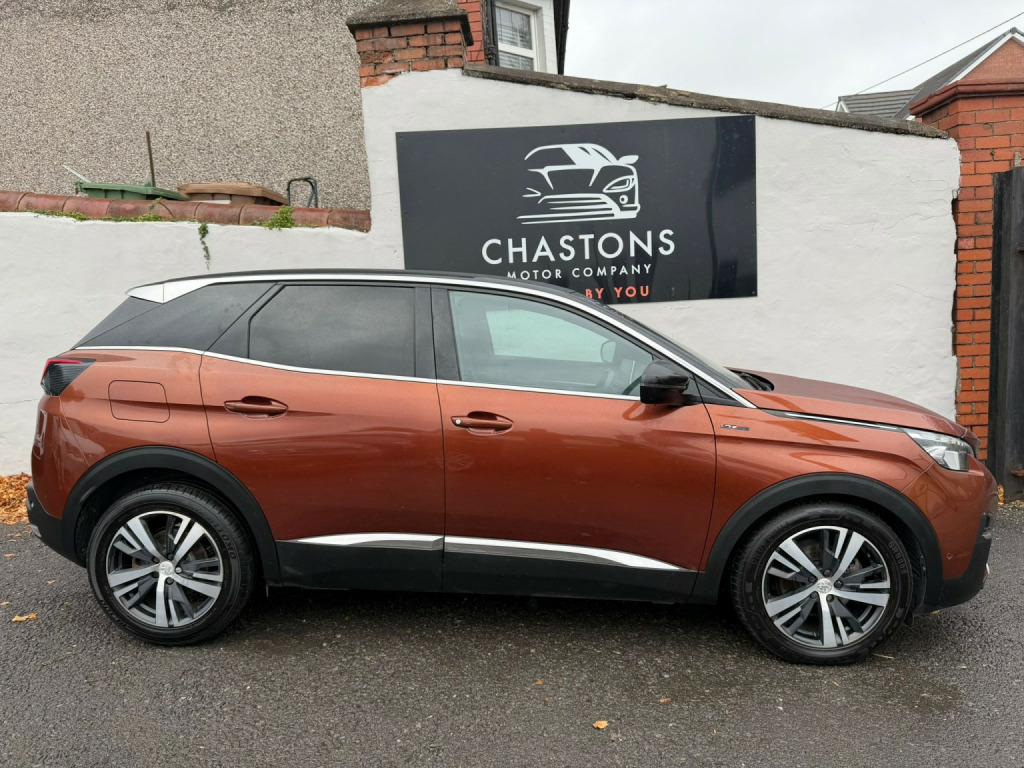 17 Plate Peugeot 3008 1.6 THP Gt Line 5dr Bronze Metallic, Comes with great factory spec including 18 inch alloys, Led daytime running lights, Rear tints, Front and rear sensors, Rear Camera, Half leather interior, Climate control, Apple car play, Digital dash, Touch screen media with sat nav and voice active. Comes with full service history and a fresh mot will be applied, As always leave with clear advisorys. Great value at just £12999