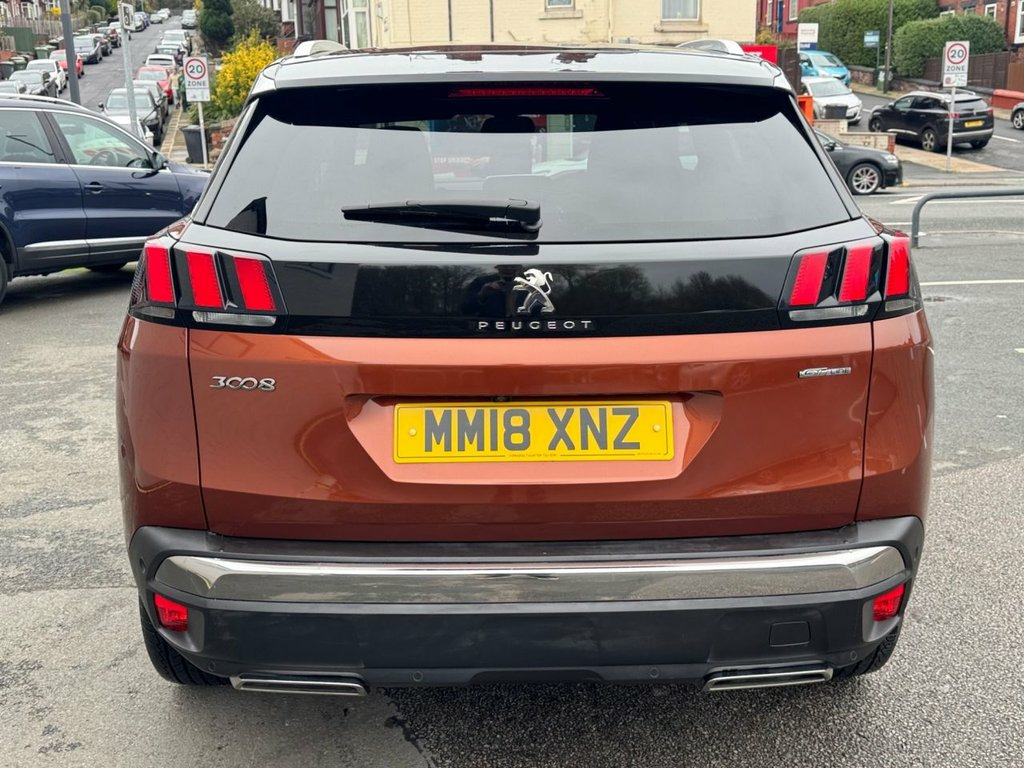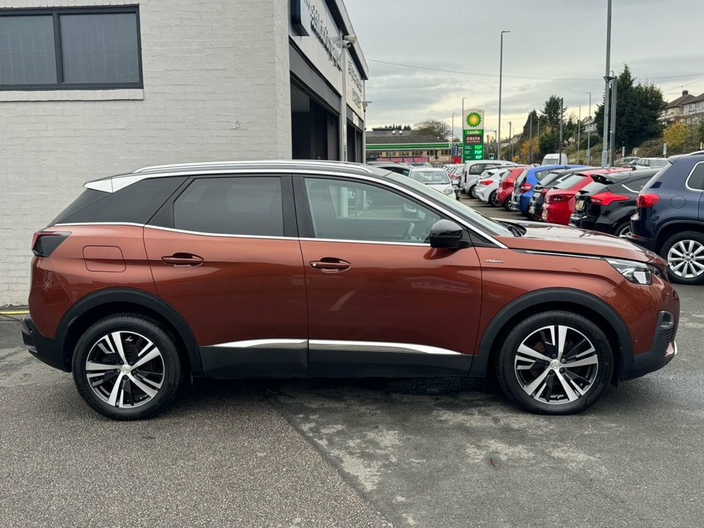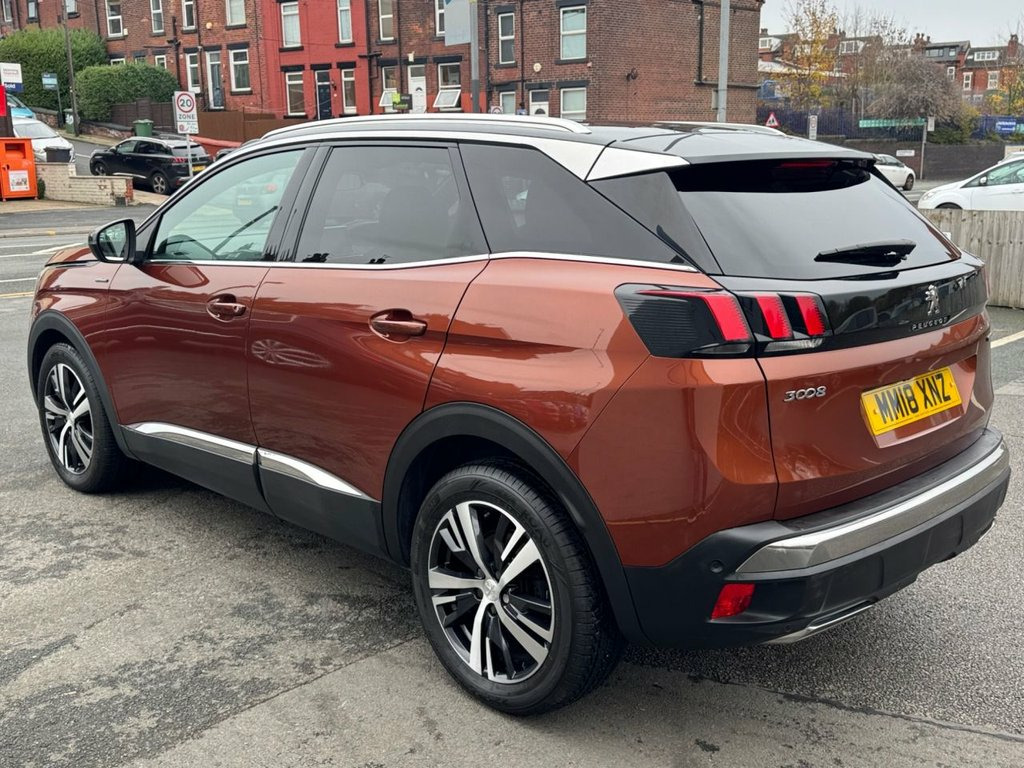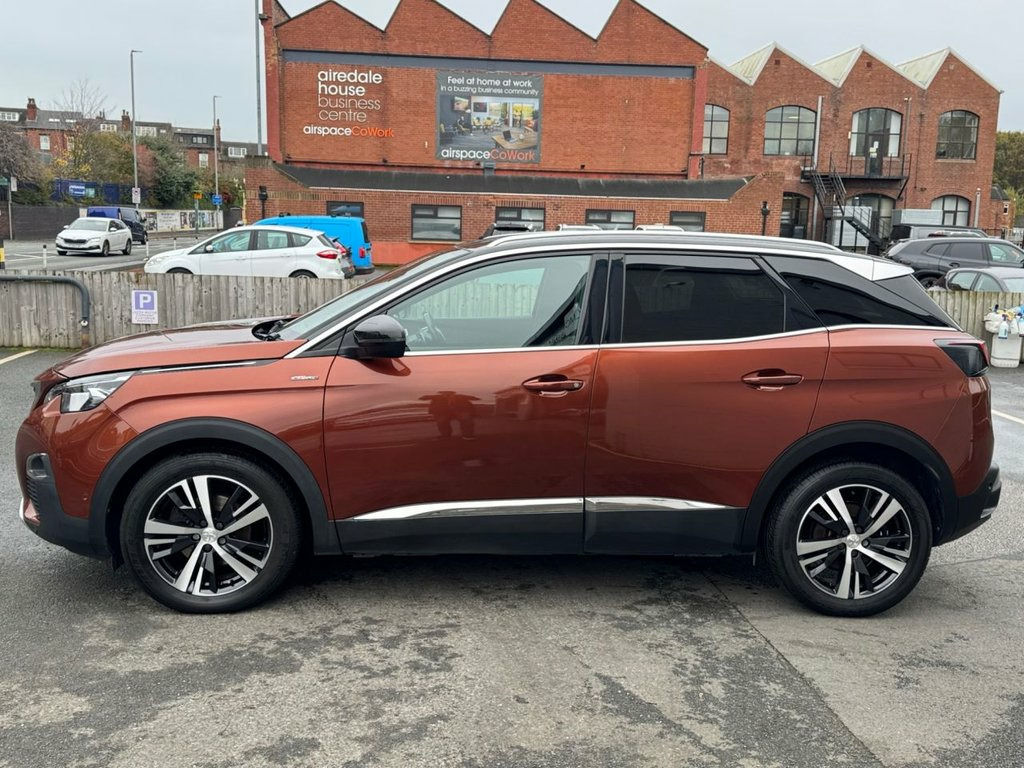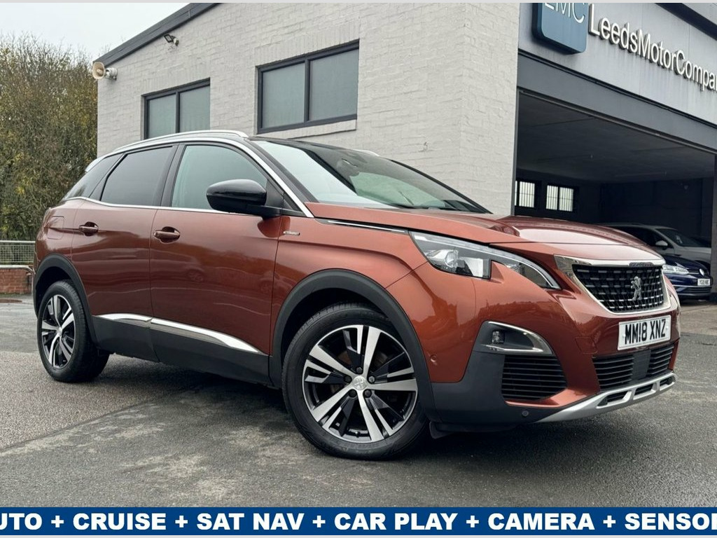 Peugeot 3008 1.6 Petrol GT-Line AUTO in Sunset Copper paintwork, Nera Black roof and 18inch Diamond cut alloys. Only 2 owners from new with FULL SERVICE HISTORY - 7 Service stamps on record to 37,000 miles. The car boasts an impressive combined fuel efficiency of 46 miles per gallon and is ULEZ/CAZ compliant. Spec includes a touchscreen satellite navigation system, Carplay / Android Auto, Bluetooth connectivity, USB & AUX input, Wireless phone charging, DAB digital radio, 360-degree reverse camera and front + rear parking sensors. Additional highlights are the cruise control, speed limiter, power folding wing mirrors, dual-zone climate control air conditioning, and ISOFIX for child seat safety. Call 0113 2636003 or visit leedsmotorcompany.co.uk. Sunset Copper - Nera Black, 1-3 - 2-3 Folding Rear Seat - Magic Flat, 12V Sockets x3 - Dashboard - Rear Cabin , 18in Alloy Wheels - Detroit - Diamond Cu, 3D Connected Navigation, 6-Speaker Radio - MP3 Compatible, ABS - Anti-Lock Braking System with REF , Aikinite Contrast Stitching to Armrest -, Air Conditioning - Automatic Dual Zone C, Airbags - Adaptive Driver and Front Pass, Airbags - Driver and Front Passenger Sid, Airbags - Front and Rear Curtain, Alarm, Automatic Door Locking When Moving Off, Automatic Hazard Light Activation Upon H, Blue Ambient Lighting for Connecting Zon, Blue Ambient Lighting to Front Door Pane, Blue Ambient Lighting to Head-Up Instrum, Bluetooth Telephone Facility