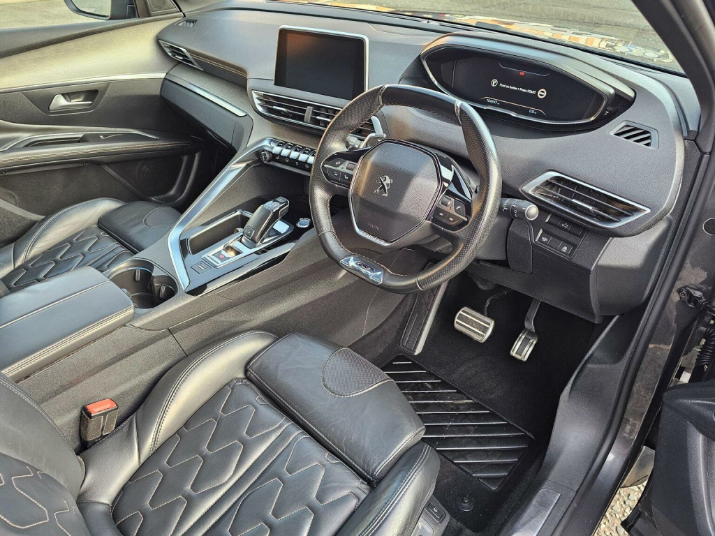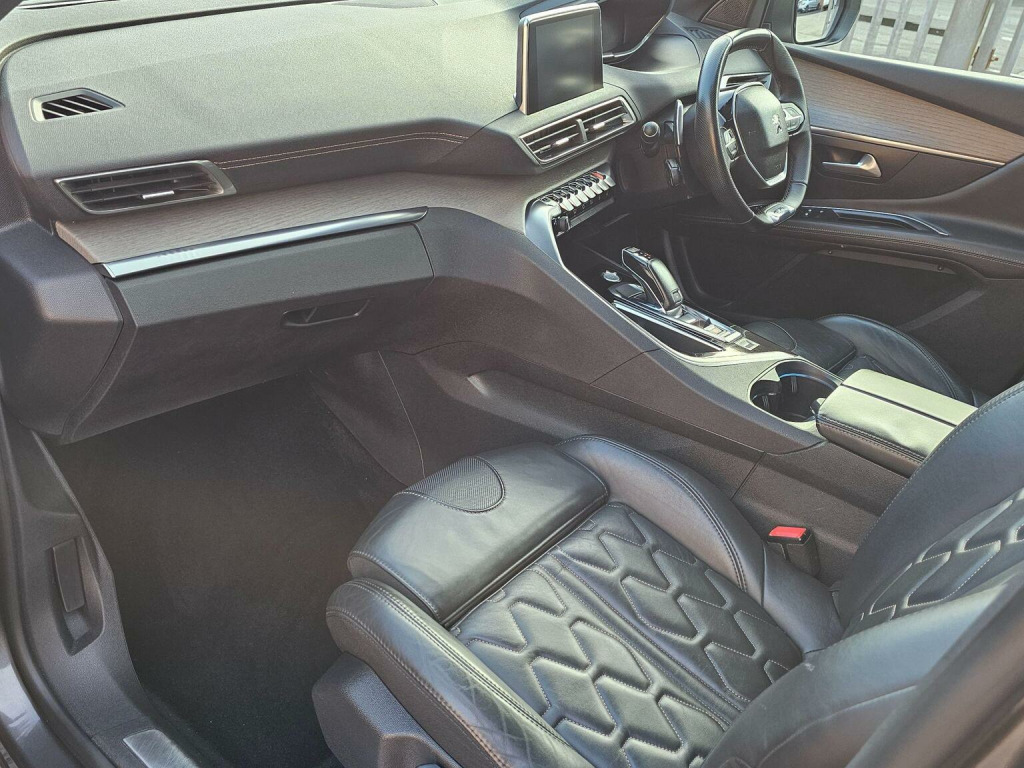 THIS TOP OF THE RANGE AUTOMATIC PEUGEOT 3008 IS PRESENTED IN METALLIC SLATE GREY WITH CHROME & BLACK ACCENTS ALL-ROUND INCLUDING THE FRONT AND REAR BUMPER FASCIA, ALL COMPLEMENTED BY 2-TONE BOSTON MATT 19 DIAMOND CUT ALLOY WHEELS. THE ECONOMICAL AND RELIABLE 2.0 BLUEHDI ENGINE IS CONNECTED TO AN AUTOMATIC GEARBOX MAKING FOR EASY TOWN DRIVING AND RELAXING AND QUIET MOTORWAY CRUISING. THE WELL BUILT AND HIGHLY SPECIFIED INTERIOR CONTAINS VERY COMFORTABLE FULL LEATHER QUILTED SEATS (SPORTS FRONT SEATS WITH EXTRA SUPPORT) PLUS LEATHER ARM REST WITH COOLED STORAGE COMPARTMENT BENEATH AND LEATHER TRIMMED MULTI-FUNCTION STEERING WHEEL AND GEAR SELECTOR ALL MADE LIGHTER BY THE INCLUSION OF A PANORAMIC GLASS ROOF. THE INTERIOR IS SOFTLY LIT BY AMBIENT BLUE LED LIGHTING TO THE CONNECTIVITY AREA, DOORS AND INSTRUMENT CLUSTER. EQUIPMENT INCLUDES DUAL ZONE CLIMATE CONTROL AUTO LIGHTS AND WIPERS, LED BLUE AMBIENT LIGHTING TO THE INSTRUMENT CLUSTER AND CENTRE CONSOLE, A LARGE CENTRE TOUCHSCREEN GIVING ACCESS TO THE DAB RADIO, BLUETOOTH, MEDIA STREAMING, SATNAV AND SCREEN MIRRORING. BEING EQUIPPED WITH THE PEUGEOT I-COCKPIT AMPLIFY, THE INSTRUMENT CLUSTER IS A LARGE TFT SCREEN WITH MULTIPLE DISPLAY OPTIONS INCLUDING VERY CLEAR 3D SAT NAV DISPLAY. FURTHER EQUIPMENT INCLUDES FRONT AND REAR PARKING SENSORS WITH 180 DEGREE REAR CAMERA, LED LIGHTS TO THE FRONT AND REAR WITH SEQUENTIAL SWEEPING INDICATORS PLUS A RAFT OF SAFETY FEATURES INCLUDED IN THE OPTIONAL SAFETY PLUS PACK AND MUCH MORE YET TO BE DISCOVERED. WE HAVE FULLY INSPECTED AND SERVICED THIS CAR, SO THE ONLY ISSUE FOR ITS NEW OWNER WILL BE WHERE THE NEXT TRIP SHOULD BE. PLEASE CALL 0161 761 3452 (OPTION 2) TO ARRANGE A VIEWING, TO RESERVE THE CAR OR FOR MORE INFORMATION. WHILST EVERY EFFORT HAS BEEN MADE TO ENSURE THAT THE STATED SPECIFICATION IS ACCURATE, PLEASE CHECK WITH A MEMBER OF THE SALES TEAM IF A PARTICULAR SPECIFICATION/FEATURE IS IMPORTANT TO YOU.