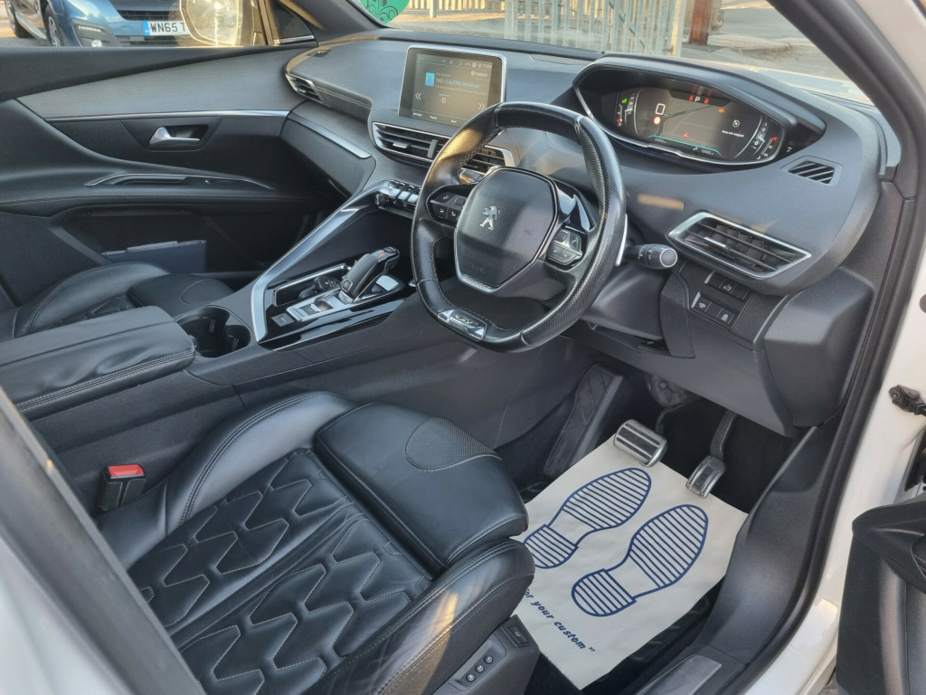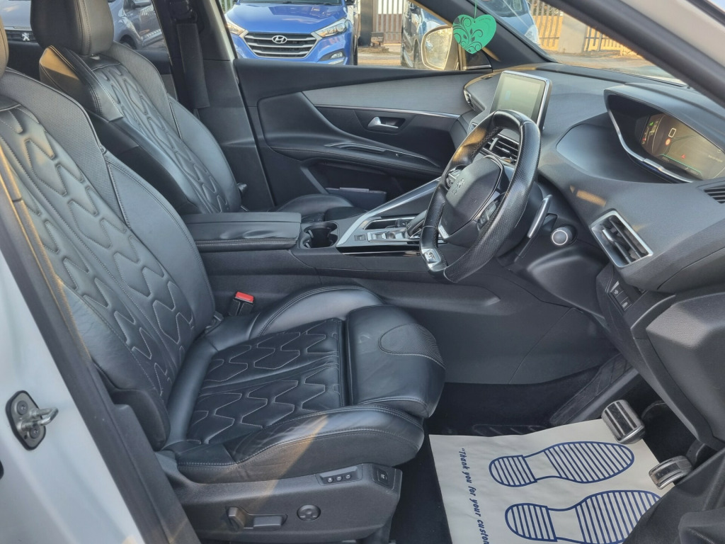 We Are Proud To Present This Stunning 2017 Peugeot 3008 2.0 BlueHdi GT Line Presented In Frozen White With Complementing Black Nappa Leather Interior. This Amazing Car Includes, OVER £4K EXTRAS, 18'' Alloy Wheels, OPENING PANROOF, Front + Rear Parking Sensors With Rear CAMERA, SAT NAV, Keyless Entry + Start, Privacy Glass, ELECTRIC SEAT + MESSAGE, Climate Control with Air Conditioning, Electric Folding Mirror, WIRELESS PHONE CHARGER, AUX And USB Connectivity, INTELLIGENT ELECTRIC TAILGATE, Automatic Gearbox And Multifunction Leather Steering Wheel. Do Not Miss This Stunning Example, Reserve This Vehicle Now For £300, FCA Approved Garage, TOP PRICE PAID ON PART EXCHANGE, BUY WITH CONFIDENCE. 3 - 2-3 folding rear seat - magic flat modularity with controls accessible from the boot, aikinite contrast stitching to armrest - gear lever gaiter and dashboard facia, air conditioning - automatic dual zone climate control, blue ambient lighting for connecting zone, blue ambient lighting to front door panels - storage - footwells and cupholders, central front armrest with butterfly-wing opening and illuminated compartment, dashboard - front and rear door panel finish - grey oak, dashboard trim - satin chrome, fixing rings x4 in load area, flocked front door pocket interior, flocked glove box interior, front central console with two cup-holders, front door panel recess trim - satin chrome, front interior light with reading spotlights x2 and rear interior light with timer, front optimised safety headrests and rear retractable headrests - x3 - height-adjustable, front windscreen wiper with magic wash cleaning system, gear lever - full grain leather and satin steel chrome, grab handles x4 - retractable - damped, heated front seats and driver seat multi-point massage function, illuminated glove box, illuminated vanity mirrors, interior door handles - satin chrome, led interior lighting - roof - storage spaces - load area, map pockets on front seat backs, mechanical height-adjustable drivers seat, mistral black floor mats with aikinite contrast stitching, mistral full-grain perforated leather steering wheel with aikinite stitch detail and satin chrome gt emblem, peugeot i-cockpit, peugeot i-cockpit amplify, reading spotlights x2 in rear, rear armrest with ski flap and two cup holders, rear centre console ventilation system, rear coat hooks x2, roof lining - mistral black, satin chrome digital instrument panel and touch screen trim, satin steel chrome scorpions tail and toggle switch trim, seating - driver seat 2 position memory function, seating - driver seat 8-way electric adjustment - includes electric lumbar adjustment, seating - driver seat lumbar adjustment, seating - driver and front passenger seat adjustable cushion nose, seating - driver and front passenger seat height adjustment, seating - front passenger seat - flat folding with picnic table, seating - front passenger seat manual adjustment - longitudinal and back rest angle, smart electric tailgate, two-position boot floor, 12v sockets x3 - dashboard - rear cabin and load area, 3d connected navigation, 6-speaker radio - mp3 compatible, bluetooth telephone facility, dab digital radio, mirror screen, peugeot connect sos and assistance, smartphone charging plate, usb socket, 19in alloy wheels - boston matt haria two tone finish diamond cut, aluminium longitudinal roof bars, chrome front fog light trim, dark tinted rear side and tailgate windows, door mirror shells - chrome, exterior door handles - body-colour, front bumper scuff plate in lion grey, front wing trim - black with chrome detail, gt emblems in satin copper - front wings and tailgate, gloss black b and c pillar and aerodynamic deflector trim, gloss black rear cluster connecting strip, gloss black windscreen trim, heated rear windscreen with integrated antenna, led sequential scrolling front indicators, led side indicator lights integrated into door mirrors, one-touch electric front and rear windows with pinch protection, panoramic opening glass roof, power folding door mirrors - includes led courtesy approach lights, radiator grille - chrome edge trim with chequered design and black peugeot lettering, rear bumper facia - chrome, rear number plate lights x2, rear spoiler - body colour with stainless steel edging trim, roof - black diamond, side window trim - chrome, sports front bumper design, stainless steel door sill scuff plates, stainless steel roof arch trim, steel space saver spare wheel, twin exhaust effect trim, visibility pack, wheel arch extensions, abs - anti-lock braking system with ref - electronic braking distribution and afu - emergency braking assistance, airbags - adaptive driver and front passenger, airbags - driver and front passenger side, airbags - front and rear curtain, alarm, automatic door locking when moving off, automatic hazard light activation upon heavy brake application, body protectors in black, dsc - dynamic stability control and asr - electronic anti-skid system, electric child locking functionality on rear windows and doors, electric parking brake includes hill assist, electronic code immobiliser, front three-point retractable seatbelts - height-adjustable with pre-tensioners and force limiters, isofix child seat fittings - x3 - in the front passenger and outer rear seats, peugeot open and go system, rear three-point retractable seatbelts x3 - with pre-tensioners and force limiters in the outer rear seats, rear windscreen wiper triggered automatically in reverse gear, remote control central locking, safety pack, safety plus pack, seatbelt unfastened on the move audible and visual alert for front and rear seats, seatbelt not fastened audible and visual alert for front seats, speed limit recognition and recommendation, acc stop - adaptive cruise control, blue ambient lighting to head-up instrument panel, electric power steering with reach and rake adjustable steering column, exterior temperature indicator with ice warning, front and rear parking sensors