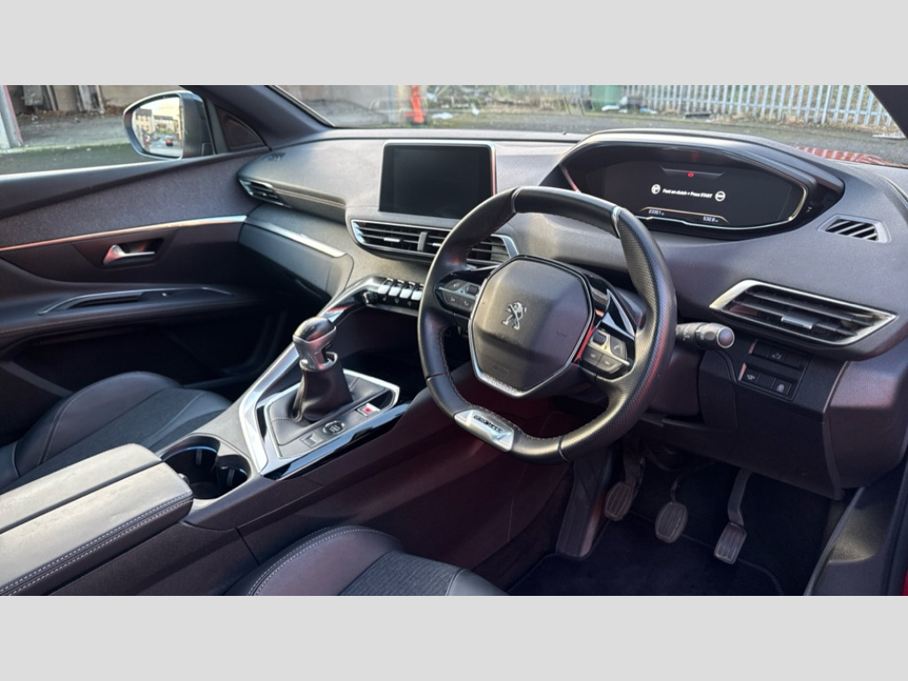 Peugeot 3008 1.2 PureTech GT Line Premium 5dr 'Lights On' Reminder warning buzzer, 3D connected navigation + voice control + Peugeot connect SOS and assistance, Bluetooth telephone facility, Digital clock, Exterior temperature indicator with ice warning, Front and rear parking sensors, Lane departure warning system, Mirror screen with mirror link, apple carplay and android auto, Multi function trip computer, PEUGEOT i-Cockpit with 8.0" capacitive touchscreen in centre console, PEUGEOT i-Cockpit with compact sports steering wheel, PEUGEOT i-Cockpit with configurable 12.3" Head-up digital instrument panel, Smartphone charging plate, Speed limit recognition and recommendation, Sports button, Dynamic stability control and electronic anti-skid system, DAB Digital radio, Steering wheel mounted controls, USB socket, 2 X Rear number plate lights, Aluminium longitudinal roof bars, Auto self levelling headlights, Automatic hazard light activation upon heavy brake application, Automatic triggered rear windscreen wiper in reverse gear, Black and chrome front wing trim, Body colour door handles, Body colour rear spoiler with stainless steel edging trim, Body coloured bumpers, Body protectors (bottom of front and rear bumpers + wheel arches + protection at bottom of doors) in black, Chrome front fog light trim, Chrome rear bumper facia, Chrome side window trim, Dark tinted rear side windows + tailgate window, Door mirror mounted LED Peugeot lion approach lights, Electric operated/heated door mirrors, Front windscreen wiper with magic wash cleaning system, Full LED headlights with LED fog lights with static cornering function, sports front bumper and grille, Gloss black B and C pillar and aerodynamic deflector trim, Gloss black rear cluster connecting strip, Gloss black windscreen surround, GT Line emblem in satin copper (front wings and tailgate), Headlights left on audible warning, Heated rear windscreen with integrated antenna, LED daytime running lights, LED sequential scrolling front indicators, LED side indicator lights integrated into door mirrors, Lion grey front bumper scuff plate, Nera black door mirrors, One touch electric front/rear windows with pinch protection, Panoramic opening glass roof, Power folding door mirrors with blind spot detection indicator and auto dipping function in reverse gear, Radiator grille in chrome edge trim with chequered design and black 'PEUGEOT' lettering, Rear LED Peugeot signature 'Claw Effect' lights, Stainless steel roof arches, Twin exhaust tailpipe, 1/3 to 2/3 split folding rear seats, 12V Sockets in dashboard, rear cabin and load area, 2 cupholders in front centre console, 2 rear reading spotlights, 230V socket on rear centre console, 2x Rear coat hooks, 3x Isofix child seat fittings in the front passenger and outer rear seats, 4 Grab handles retractable and damped, Aikinite stitching in armrest, gear lever and dashboard facia, Blue ambient lighting for connecting zone, Blue ambient lighting to front door panels, central storage and cupholders, Blue ambient lighting to head up instrument panel, Centre front armrest with butterfly wing opening and illuminated storage compartment, Driver and front passenger seat height adjustment, Driver seat manual adjustment, Dual zone automatic climate control, Electric power steering with reach and rake adjustable steering column, Fixing rings 4 in load compartment, Flocked front door pocket interior with blue ambient lighting, Flocked glovebox interior, Fold flat front passenger seat with picnic table, Footwell illumination, Front interior light with 2 reading spotlights and rear interior light with timer, Front passenger seat manual adjustments, Front seat back map pockets, Gear shift indicator, Illuminated glovebox, Illuminated vanity mirrors, Imila cloth/Leather upholstery, LED interior lighting in storage spaces and load area, Mistral floor mats with Aikinite contrast stitching, Mistral full grain perforated leather steering wheel with aikinite stitch detail and satin chrome 'GT Line' emblem, Rear armrest with ski flap and two cup holders, Rear centre console ventilation system, Reclining front seats, Roof LED interior lighting, Roof lining - Mistral black, Satin chrome dashboard trim, Satin chrome digital instrument panel and touchscreen trim, Satin chrome front door panel recess trim, Satin chrome gear lever, Satin chrome interior door handles, Satin chrome scorpion's tail and toggle switch trim, Seatbelt not fastened audible and visual alert for front seats, Seatbelt unfastened on the move audible and visual alert for front and rear seats, Stainless Steel Scuff Plates, Two position boot floor, Driver sport pack - 3008, Safety pack - 3008, Safety Plus Pack - 3008, Visibility pack - 3008, 3x Rear three-point retractable seatbelts with force limiters in the outer rear seats, Adaptive driver and front passenger airbags with passenger airbag deactivation function, Anti lock braking system + Electronic brake force distribution, Driver and front passenger side airbags, Electric child locking functionality on rear windows and doors, Electric parking brake, Front and rear curtain airbags, Front optimised safety headrests and 3 x rear retractable headrests with height adjustable, Front three point retractable seatbelts with pre tensioners and force limiters, Front ventilated disc brakes and rear disc brakes, Height adjustable front seatbelts, Hill start assist, Tyre pressure sensor, Anti theft alarm, Automatic door locking when moving off, Central locking button on dash, Deadlocks, Electric tailgate with Peugeot open & go system, Electronic immobiliser, Locking wheel bolts, Remote control central locking with two plip keys, Brumeo fabric Dashboard, front and rear door panel finish, 19" Washington two tone diamond cut alloy wheels, Space saver spare wheel