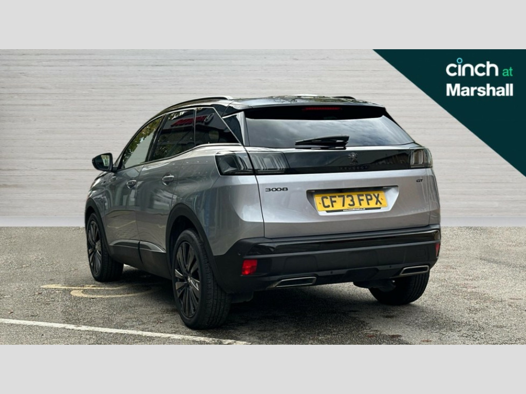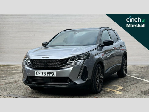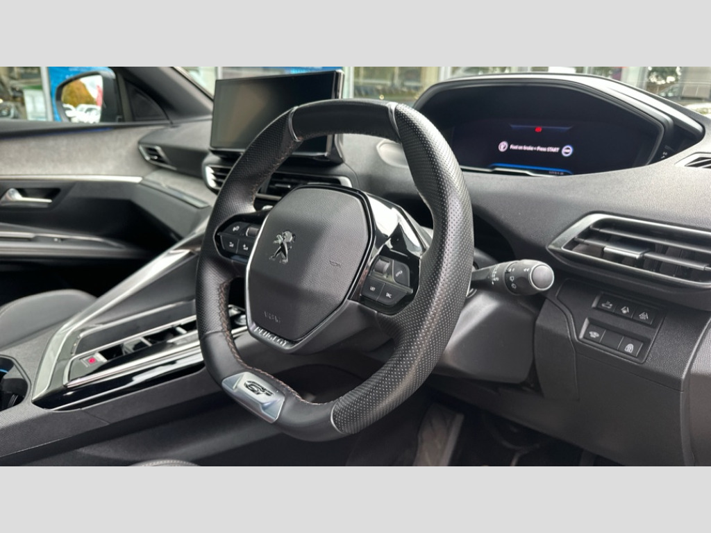 Peugeot 3008 1.5 BlueHDi GT 5dr EAT8 3D connected navigation with 10" HD touchscreen + voice recognition system, Blind spot detection system, Bluetooth telephone facility, Drive modes select (Eco, normal and sport), Driver Attention Alert level 3, Driving Time Warning (DAA1), Emergency services call system, Extended traffic sign recognition, Exterior temperature indicator with ice warning, Lane departure warning system, Lane Keeping Assistance (LKA) with road edge detection, Mirror screen with Apple CarPlay and Android auto, Multi function trip computer, PEUGEOT i-Cockpit with compact sports steering wheel, PEUGEOT i-Cockpit with configurable 12.3" Head-up digital instrument panel, PEUGEOT SOS and assistance, Rear parking sensor, Rear passenger USB charging sockets (x2) (type A), Speed limit recognition and recommendation, Dynamic stability control and electronic anti-skid system, DAB Digital radio, USB socket in front centre console, 2 X Rear number plate lights, Auto self levelling headlights, Automatic hazard light activation upon heavy brake application, Automatic triggered rear windscreen wiper in reverse gear, Black with chrome detailed front wing trim, Body colour door handles, Body colour rear roof spoiler with stainless steel edging trim, Body protectors (wheel arches + protection at bottom of doors) in black, Dark tinted rear side windows + tailgate window, Diamond Black door mirror shells, Electric heated folding door mirrors, Front windscreen wiper with magic wash cleaning system, Full LED headlights with fog mode, Gloss black B and C pillar and aerodynamic deflector trim, Gloss black front bumper air scoops, Gloss black rear cluster connecting strip, Gloss black windscreen trim, GT emblems on tailgate, Headlights left on audible warning, Heated rear windscreen with integrated antenna, High beam assist, LED daytime running lights in fang style, LED front indicator, LED side indicator lights integrated into door mirrors, LED third brake light, One touch electric front/rear windows with pinch protection, Rear LED Peugeot signature 'Claw Effect' lights with clear lens and scrolling LED direction indicators, Rear side wing doors, Twin exhaust effect trim, 1/3 to 2/3 split folding rear seats, 12V Sockets in dashboard, rear cabin and load area, 2 cupholders in front centre console, 2 x Rear reading spotlights, 2x Rear coat hooks, 3x Isofix child seat fittings in the front passenger and outer rear seats, 4 Grab handles retractable and damped, Aikinite stitching in armrest, gear lever and dashboard facia, Aluminium pedals, Blue ambient lighting for connecting zone, Blue ambient lighting to front door panels, central cup holders, Blue ambient lighting to headup instrument panel, Centre front armrest with butterfly wing opening and illuminated storage compartment, Driver seat manual adjustment (longitudinal and back rest angle), Dual zone automatic climate control, e-Toggle compact gear selector, Electric power steering with reach and rake adjustable steering column, Flocked front door pocket interior with blue ambient lighting, Flocked glovebox interior, Foldable front passenger seat with picnic table, Footwell illumination, Front interior light with 2 reading spotlights and rear interior light with timer, Front seat back map pockets, Gear shift indicator, Illuminated glove box, central storage area and load area, Illuminated vanity mirrors, Individual left and right controls in boot for seat folding, LED interior lighting in storage spaces and load area, LED roof interior lighting, Mistral floor mats with Aikinite contrast stitching, Mistral full grain perforated leather steering wheel with aikinite stitch detail and satin chrome 'GT' emblem, Rear armrest with ski flap and two cup holders, Rear bench seat with central armrest and ski hatch, Rear centre console ventilation system, Roof lining - Mistral black, Satin chrome dashboard trim, Satin chrome digital instrument panel, Satin chrome front door panel recess trim, Satin chrome interior door handles, Satin chrome scorpion's tail and toggle switch trim, Seatbelt not fastened audible and visual alert for front seats, Seatbelt unfastened on the move audible and visual alert for front and rear seats, Two position boot floor, Drive assist plus pack with front parking sensors - 3008, Visibility pack - 3008 GT, 3x Rear three-point retractable seatbelts with force limiters in the outer rear seats, ABS (Anti-lock Braking System) with EBD (Electronic Brakeforce Distribution) and EBA (Emergency Braking Assistance), Adaptive driver and front passenger airbags with passenger airbag deactivation function, Driver and front passenger side airbags, Electric child locking functionality on rear windows and doors, Electric parking brake, Front and rear curtain airbags, Front optimised safety headrests and 3 x rear retractable headrests with height adjustable, Front three point retractable seatbelts height adjustable with pre tensioners and force limiters, Front ventilated disc brakes and rear disc brakes, Hill start assist, Two tone horn, Automatic door locking when moving off, Electronic immobiliser, key operated exterior door lock from the left hand door, Perimetric and volumetric alarm with lift and tilt sensor, Peugeot Open and Go System, Remote control central locking with two plip keys, Michelin e-primacy 225/55 R18 102V class A+ tyres, Tyre repair and inflation kit