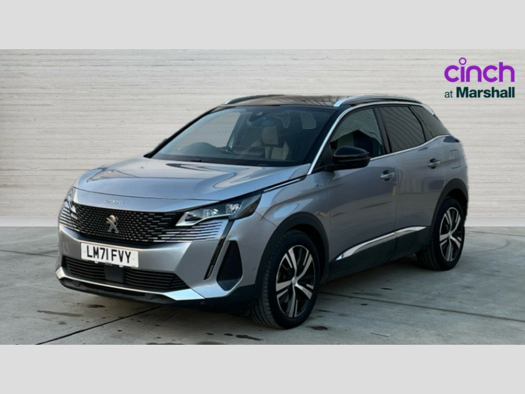 Peugeot 3008 1.6 Hybrid 225 GT 5dr e-EAT8 3D connected navigation with 10" HD touchscreen, Bluetooth telephone facility, Drive mode selector (Electric, Hybrid, Sport, 4WD) & Hill Assist Descent Control, Driving Time Warning (DAA1), Extended traffic sign recognition, Exterior temperature indicator with ice warning, Front parking sensors, Mirror screen with mirror link, apple carplay and android auto, Multi function trip computer, PEUGEOT i-Cockpit with 10" high definition capacitive touchscreen, Peugeot i-cockpit with compact multi-function sports steering wheel, PEUGEOT i-Cockpit with configurable 12.3" Head-up digital instrument panel, PEUGEOT SOS and assistance, Rear parking aid, Rear passenger USB charging sockets (x2) (type A), Speed limit recognition and recommendation, Voice recognition, Deferred charging option, configurable in car or via My PEUGEOT App, Dynamic stability control and electronic anti-skid system, Mode 3 type 2 cable for wallbox charging, 6 speakers radio with mp3 compatible, DAB Digital radio, USB socket, Auto self levelling headlights, Automatic hazard light activation upon heavy brake application, Automatic triggered rear windscreen wiper in reverse gear, Black with chrome detailed front wing trim, Body colour door handles, Body colour rear roof spoiler with stainless steel edging trim, Body protectors (bottom of front and rear bumpers + wheel arches + protection at bottom of doors) in black, Dark tinted rear side windows + tailgate window, Diamond Black door mirror shells, Door mirror mounted LED courtesy floor lighting, Electric folding door mirrors with exterior courtesy LED lighting, Electric operated/heated door mirrors, Fog Mode, Front windscreen wiper with magic wash cleaning system, Full LED headlights with LED fog lights with static cornering function, Gloss black B and C pillar and aerodynamic deflector trim, Gloss black front bumper air scoops, Gloss black rear cluster connecting strip, Gloss black windscreen trim, Headlights left on audible warning, Heated rear windscreen with integrated antenna, HYBRID emblem on front wings and tailgate, LED daytime running lights, LED front indicator, LED rear number plate lighting, LED side indicator lights integrated into door mirrors, LED third brake light, One touch electric front/rear windows with pinch protection, Rear LED Peugeot signature 'Claw Effect' lights, Rear side wing doors, Stainless steel roof arches, Twin exhaust tailpipe, 1/3 to 2/3 split folding rear seats, 12V Sockets in dashboard, rear cabin and load area, 2 cupholders in front centre console, 2 cupholders in rear armrest, 2 x Rear reading spotlights, 2x Rear coat hooks, 3x Isofix child seat fittings in the front passenger and outer rear seats, 4 Grab handles retractable and damped, Aikinite stitching in armrest, gear lever and dashboard facia, Aluminium pedals, Blue ambient lighting for connecting zone, Blue ambient lighting to front door panels, central storage and cupholders, Blue ambient lighting to headup instrument panel, Cabin pre-conditioning, Centre front armrest with butterfly wing opening and illuminated storage compartment, Driver seat manual adjustment (longitudinal and back rest angle), Dual zone automatic climate control, Electric power steering with reach and rake adjustable steering column, Fixed boot floor with access to the charging cable storage box, Flocked front door pocket interior with blue ambient lighting, Flocked glovebox interior, Foldable front passenger seat with picnic table, Footwell illumination, Front interior light with 2 reading spotlights and rear interior light with timer, Front passenger seat manual adjustment (longitudinal and back rest angle), Front seat back map pockets, Gear shift indicator, Illuminated glovebox, Individual left and right controls in boot for seat folding, LED interior lighting in storage spaces and load area, LED roof interior lighting, Mistral floor mats with Aikinite contrast stitching, Mistral full grain perforated leather steering wheel with aikinite stitch detail and satin chrome 'GT' emblem, Rear bench seat with central armrest and ski hatch, Rear centre console ventilation system, Roof lining - Mistral black, Satin chrome dashboard trim, Satin chrome digital instrument panel and touchscreen trim, Satin chrome front door panel recess trim, Satin chrome interior door handles, Satin chrome scorpion's tail and toggle switch trim, Seatbelt not fastened audible and visual alert for front seats, Seatbelt unfastened on the move audible and visual alert for front and rear seats, Sunvisors with illuminated vanity mirrors, Drive assist plus pack - 3008, Driver sport pack - 3008 Auto, Safety plus pack - 3008 hybrid, Visibility pack - 3008 PHEV, 3x Rear three-point retractable seatbelts with force limiters in the outer rear seats, ABS (Anti-lock Braking System) with EBD (Electronic Brakeforce Distribution) and EBA (Emergency Braking Assistance), Acoustic vehicle alerting system, Adaptive driver and front passenger airbags with passenger airbag deactivation function, Driver and front passenger side airbags, Electric child locking functionality on rear windows and doors, Electric parking brake, Front and rear curtain airbags, Front optimised safety headrests and 3 x rear retractable headrests with height adjustable, Front three point retractable seatbelts with pre tensioners and force limiters, Front ventilated disc brakes and rear disc brakes, Hill start assist, Two tone horn, Automatic door locking when moving off, Electronic immobiliser, key operated exterior door lock from the left hand door, Perimetric and volumetric alarm with lift and tilt sensor, Peugeot Open and Go System, Remote control central locking with two plip keys, Puncture repair kit including compressor, sealant cartridge and towing eye