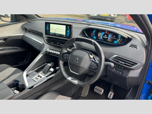 Peugeot 3008 1.6 Hybrid 225 GT 5dr e-EAT8 3D connected navigation with 10" HD touchscreen, Bluetooth telephone facility, Drive mode selector (Electric, Hybrid, Sport, 4WD) & Hill Assist Descent Control, Driving Time Warning (DAA1), Extended traffic sign recognition, Exterior temperature indicator with ice warning, Front parking sensors, Mirror screen with mirror link, apple carplay and android auto, Multi function trip computer, PEUGEOT i-Cockpit with 10" high definition capacitive touchscreen, Peugeot i-cockpit with compact multi-function sports steering wheel, PEUGEOT i-Cockpit with configurable 12.3" Head-up digital instrument panel, PEUGEOT SOS and assistance, Rear parking aid, Rear passenger USB charging sockets (x2) (type A), Speed limit recognition and recommendation, Voice recognition, Deferred charging option, configurable in car or via My PEUGEOT App, Dynamic stability control and electronic anti-skid system, Mode 3 type 2 cable for wallbox charging, 6 speakers radio with mp3 compatible, DAB Digital radio, USB socket, Auto self levelling headlights, Automatic hazard light activation upon heavy brake application, Automatic triggered rear windscreen wiper in reverse gear, Black with chrome detailed front wing trim, Body colour door handles, Body colour rear roof spoiler with stainless steel edging trim, Body protectors (bottom of front and rear bumpers + wheel arches + protection at bottom of doors) in black, Dark tinted rear side windows + tailgate window, Diamond Black door mirror shells, Door mirror mounted LED courtesy floor lighting, Electric folding door mirrors with exterior courtesy LED lighting, Electric operated/heated door mirrors, Fog Mode, Front windscreen wiper with magic wash cleaning system, Full LED headlights with LED fog lights with static cornering function, Gloss black B and C pillar and aerodynamic deflector trim, Gloss black front bumper air scoops, Gloss black rear cluster connecting strip, Gloss black windscreen trim, Headlights left on audible warning, Heated rear windscreen with integrated antenna, HYBRID emblem on front wings and tailgate, LED daytime running lights, LED front indicator, LED rear number plate lighting, LED side indicator lights integrated into door mirrors, LED third brake light, One touch electric front/rear windows with pinch protection, Rear LED Peugeot signature 'Claw Effect' lights, Rear side wing doors, Stainless steel roof arches, Twin exhaust tailpipe, 1/3 to 2/3 split folding rear seats, 12V Sockets in dashboard, rear cabin and load area, 2 cupholders in front centre console, 2 cupholders in rear armrest, 2 x Rear reading spotlights, 2x Rear coat hooks, 3x Isofix child seat fittings in the front passenger and outer rear seats, 4 Grab handles retractable and damped, Aikinite stitching in armrest, gear lever and dashboard facia, Aluminium pedals, Blue ambient lighting for connecting zone, Blue ambient lighting to front door panels, central storage and cupholders, Blue ambient lighting to headup instrument panel, Cabin pre-conditioning, Centre front armrest with butterfly wing opening and illuminated storage compartment, Driver seat manual adjustment (longitudinal and back rest angle), Dual zone automatic climate control, Electric power steering with reach and rake adjustable steering column, Fixed boot floor with access to the charging cable storage box, Flocked front door pocket interior with blue ambient lighting, Flocked glovebox interior, Foldable front passenger seat with picnic table, Footwell illumination, Front interior light with 2 reading spotlights and rear interior light with timer, Front passenger seat manual adjustment (longitudinal and back rest angle), Front seat back map pockets, Gear shift indicator, Illuminated glovebox, Individual left and right controls in boot for seat folding, LED interior lighting in storage spaces and load area, LED roof interior lighting, Mistral floor mats with Aikinite contrast stitching, Mistral full grain perforated leather steering wheel with aikinite stitch detail and satin chrome 'GT' emblem, Rear bench seat with central armrest and ski hatch, Rear centre console ventilation system, Roof lining - Mistral black, Satin chrome dashboard trim, Satin chrome digital instrument panel and touchscreen trim, Satin chrome front door panel recess trim, Satin chrome interior door handles, Satin chrome scorpion's tail and toggle switch trim, Seatbelt not fastened audible and visual alert for front seats, Seatbelt unfastened on the move audible and visual alert for front and rear seats, Sunvisors with illuminated vanity mirrors, Drive assist plus pack - 3008, Driver sport pack - 3008 Auto, Safety plus pack - 3008 hybrid, Visibility pack - 3008 PHEV, 3x Rear three-point retractable seatbelts with force limiters in the outer rear seats, ABS (Anti-lock Braking System) with EBD (Electronic Brakeforce Distribution) and EBA (Emergency Braking Assistance), Acoustic vehicle alerting system, Adaptive driver and front passenger airbags with passenger airbag deactivation function, Driver and front passenger side airbags, Electric child locking functionality on rear windows and doors, Electric parking brake, Front and rear curtain airbags, Front optimised safety headrests and 3 x rear retractable headrests with height adjustable, Front three point retractable seatbelts with pre tensioners and force limiters, Front ventilated disc brakes and rear disc brakes, Hill start assist, Two tone horn, Automatic door locking when moving off, Electronic immobiliser, key operated exterior door lock from the left hand door, Perimetric and volumetric alarm with lift and tilt sensor, Peugeot Open and Go System, Remote control central locking with two plip keys, Puncture repair kit including compressor, sealant cartridge and towing eye