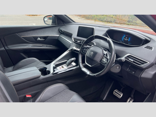 Peugeot 3008 1.6 THP GT Line 5dr EAT6 'Lights On' Reminder warning buzzer, 3D connected navigation + voice control + Peugeot connect SOS and assistance, Advanced driver attention alert, Android Auto, Blind spot monitoring, Digital clock, Exterior temperature gauge, Lane departure warning system, Lane keep assist, Mirror screen with mirror link and car play, Multi function trip computer, Peugeot i-cockpit with amplify configurable interior ambiences, headup display with distance alert, touch screen, Rear parking aid, Smartphone cradle, Speed sensitive power steering, Dynamic stability control, DAB Digital radio, Peugeot connect with USB and bluetooth, Radio/MP3 player, Steering column mounted multifunction controls, Automatic activation of hazard warning lights, Automatic front windscreen wipers, Automatic headlamp levelling, Black door mirrors, Body colour door handles, Body colour rear spoiler, Body coloured bumpers, Chrome bumper inserts, Chrome front fog light surround, Chrome radiator grille and surround, Chrome side window trim, Dark tinted rear windows, Electric folding door mirrors with courtesy approach lighting, Electric operated/heated door mirrors, Heated rear windscreen, LED daytime running lights, LED headlights with LED front fog light and static cornering light, LED rear lights, Lion grey front bumper scuff plate, One touch electric front/rear windows, Peugeot smart beam assist, Rear wiper, Sports front bumper, Twin exhaust tailpipe, 1/3 to 2/3 split folding rear seats, 3 x 12V power sockets, 4 Lashing eyes in boot, Blue ambient lighting, Centre console cupholder, Centre front armrest with illuminated cool compartment, Cupholders - 2 in rear centre armrest, Dual zone automatic climate control, Fold flat front passenger seat with picnic table, Front door pockets, Front headrests, Front reading lights, Front seat back map pockets, Gear shift indicator, Grab handles, Height adjustable headrests, Height adjustable passenger seat, Height/reach adjust steering wheel, Illuminated glovebox, Illuminated vanity mirrors, Instrument panel light dimmer, ISOFIX on front passenger and rear outer seats, LED interior illumination, LED light in luggage compartment, Mistral floor mats, Mistral full grain perforated leather steering wheel with aikinite stitch, Rear centre armrest/ski flap, Rear coat hook, Rear headrests, Rear reading lights, Reclining front seats, Roof lining - Mistral black, Satin chrome gear lever, Satin chrome interior door handles, Visibility pack - 3008, 3 point front seat belts, 3 point seatbelts on all rear seats, ABS + EBD + EBA, Auto city emergency braking, Driver SMART airbag, Electronic parking brake, ESP with ASR, Front and rear curtain airbags, Front and rear pre-tensioning and force limiting seatbelts, Front passenger SMART airbag with deactivate switch, Height adjustable front seatbelts, Hill start assist, Seatbelt warning lamp and buzzer, Side airbags x 2, Tyre pressure sensor, Automatic door lock/re-lock after 30 seconds, Central locking button on dash, Child lock control of rear doors and windows, Deadlocks, Locking wheel bolts, Perimetric and volumetric anti theft alarm, Remote control central locking with two plip keys, Rolling code transponder immobiliser, Brumeo fabric interior trim