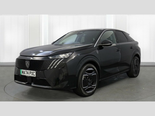 Peugeot 3008 157kW GT 73kWh 5dr Auto Adaptive cruise control with Stop and Go, Bluetooth with two microphones (Connect up to 2 phones), Drive modes select (Eco, normal and sport) with configurable ambient lighting, Driver foot rest, Driver profile selection, E-call, Exterior temperature indicator with ice warning, Front parking sensor, Front passenger seat detection, Hands free Smart Electric Tailgate (foot operated), Lane keep assist, Multi function trip computer, Natural voice recognition, PEUGEOT i-Cockpit - 21" HD panoramic curved display incorporating instrument panel and touchscreen with 3colour themes, PEUGEOT i-connect advanced HD fully customisable touch screen, Navigation with Tom Tom Live updates and over the air map updates, PEUGEOT SOS and assistance, Rear parking sensor, Remote charge management via My PEUGEOT App, Speed limit and traffic sign recognition and recommendation, Wireless mirror screen with apple carplay and android auto, Wireless smartphone charger with status light and ambient lighting, 11 KW triphase On board charger, Dynamic stability control and electronic anti-skid system, Mode 3 type 2 cable for wallbox charging, Multi-link rear suspension, AM/FM bi-tuner, DAB Radio (Digital Audio Broadcasting), Peugeot customisable virtual iToggles, USB-C sockets (2 x front and 2 x rear), 3008 model designation badgers front and rear in basalt grey, Acoustic windscreen, Automatic hazard light activation upon heavy brake application, Automatic headlamp activation, Automatic windscreen wiper activation with interval wiping intensity control, Black diamond roof and floating effect rear spoiler finished in nera black metallic, Body coloured exterior door handles, Dark tinted privacy glass for rear door, Tailgate and Quarter windows, Door mirrors - Welcome lighting and integrated LED indicators, Electric adjustable/heated/folding door mirrors, Flat blade wipers with magic wash integrated nozzles, Frameless electrochrome rear view mirror, Front and rear electric windows with one touch, Front grille with body coloured accents, Gloss black connecting strip between rear lights, Gloss black finish B pillar, Heated rear window, Laminated windscreen, LED daytime running lights, LED exterior lighting, LED third brake light, Lower front and rear bumper trims in meteor grey, Orbital gloss black door mirrors, Orbital gloss black lower door claddings and widened wheel arches, PEUGEOT shield on front wings, Pixel LED Technology headlights with adaptive high beam assist, Rain sensor, Rear full LED 3D peugeot signature claw effect lights with daylight function, Rear side wing doors, 2 cupholders in front centre console, 2 rear cupholders, 3 seat rear bench, 3x 12V sockets (Cabin front and rear and boot), 4 Grab handles retractable and damped, 4 tie down luggage rings, 40/20/40 folding rear seat backrest with fixed base, Aluminium pedals, Arch design central console with concealed storage, Cabin high efficiency filter, Cabin thermal pre-conditioning (activated in vehicle or via remote services), Central front armrest with ventilated storage compartment and LED lighting, Chrome finish interior door handles, Compact heated multifunction steering wheel with full grain leather Iced Clay stitching, gloss black and satin chrome detailing and GT badge, Dual zone climate control, Dynamic front seats, e-Toggle compact gear selector, Electric power steering with reach and rake adjustable steering column, Glasses storage box, roof mounted, LED boot light, LED footwell lights, LED front and rear roof lights, LED Glovebox light, LED illuminated driver and passenger concealed sunvisor mirrors, Luggage cover, Luxury front and rear carpet mats with Iced Clay stitching and GT logo, Mistral black pillars and headlining, Quick launch cabin heating/cooling function, Rear air vents, Rear smartphone holder, Roof lining - Meteor grey, Seatbelt unfastened on the move audible and visual alert for front and rear seats, Single front passenger seat, Stainless steel PEUGEOT door sill trims, Two bag hooks, Two position boot floor, 2x Isofix child seat fitting on outer rear seats with zipped cover, 3x3 point rear seat belts, ABS (Anti-lock Braking System) with EBD (Electronic Brakeforce Distribution) and EBA (Emergency Braking Assistance), Adaptive driver and front passenger airbags with passenger airbag deactivation function, Advanced Emergency Braking System with radar (AEBS3) providing night detection of pedestrians and cyclists, Child locking functionality on rear doors, Driver and front passenger side airbags, Electric parking brake, Enhanced 3 stage regenerative braking via steering wheel mounted paddles, Front and rear curtain airbags, Front optimised safety headrests and 3 x rear retractable headrests with height adjustable, Front/rear disc brakes, Hill start assist, Post collision safety brake, Seatbelts - Front and rear outer seats with pyrotechnic pretensioners and force limiters, Tyre under inflation monitoring and detection (Indirect), 2x Keys (Lock, Unlock, Boot release function with concealed key), Acoustic vehicle alert system (AVAS), Automatic door locking when moving off, Deadlocking system, Electronic code immobiliser, Exterior passenger door lock, Locking wheel nuts, Peugeot Open and Go (keyless entry and push button start), Seatbelts reminder and unfastend warning indicator, Thatcham category 1 Perimetric and volumetric alarm with anti-lift detection, Aluminium printed dashboard and front door panel Alcove decor, Textile decor for dashboard, door panels and centre console arch, Michelin e-primacy class A+ tyres, Tyre repair kit includes 12V compressor, Sealant and storage box