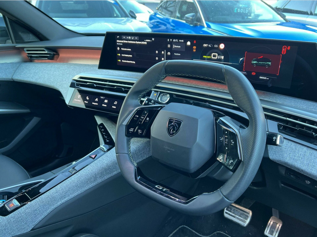 Call to arrange an appointment today! 11kW Triphase On Board Charger, 12V Sockets x3 - Front-Rear-Load Area, 20in Alloy Wheels - Yosemite - Orbital Black - Diamond Cut with Matte Onyx Black and Gloss Onyx Black Inserts, 40-20-40 Folding Rear Seats, 8-Colour Extended Ambient Lighting, AVAS - Acoustic Vehicle Alerting System, Acoustic Windscreen, Adaptive Cruise Control with Stop and Go Function, Advanced Emergency Braking System, Air Conditioning - Automatic Dual Zone Climate Control, Airbags - Adaptive Driver and Front Passenger, Airbags - Driver and Front Passenger Side, Airbags - Front and Rear Curtain, Alarm - Thatcham Category 1, Aluminium Pedals, Aluminium Printed Dashboard and Front Door Panel Alcove Decor, Anti-Lock Braking - ABS - Electronic Brake Force Distribution - EBFD - Emergency Braking Assistance - EBA, Arch Design Central Console with Storage, Automatic Door Locking When Moving Off, Automatic Hazard Light Activation Upon Heavy Brake Application, Automatic Windscreen Wipers, Cabin HE High Efficiency Filter, Cabin Thermal Pre-Conditioning, Central Front Armrest with Ventilated Storage Compartment and LED Lighting, Child Locking Functionality on Rear Doors, Compact Heated Multifunction Steering Wheel - Full Grain Leather with Iced Clay Stitching with Gloss Black-Satin Chrome Detailing and GT Badge, Compact e-Toggle Gear Selector, Customisable Virtual i-Toggle Display, DSC - Dynamic Stability Control and ASR - Anti Slip Regulation, Dark Tinted Rear Side and Tailgate Windows, Deadlocking, Door Mirrors - Orbital Gloss Black, Drivers Footrest, Driving Mode Selector with Configurable Ambient Lighting, E-Remote Control, Electric Parking Brake, Electric Power Steering with Reach and Rake Manually Adjustable Steering Column, Electric Windows - Front and Rear with One Touch, Electrically Adjustable - Heated - Power Folding Door Mirrors, Electronic Code Immobiliser, Enhanced 3 Stage Regenerative Braking via Steering Wheel Mounted Paddles, Exterior Door Handles - Body-Colour, Exterior Door Lock - Passenger Door, Exterior Temperature Indicator with Ice Warning, Frameless Electrochrome Rear View Mirror, Front Central Console with Two Cup-Holders, Front Grille with Body-Coloured Accents, Front Optimised Safety Headrests and Rear Retractable Headrests - x3 - Height-Adjustable, Front Parking Sensors, Front Passenger Seat Detection, Full 3D LED Rear Lights with PEUGEOT Claw Effect Daytime Running Light Signature, Glasses Storage Box - Roof Mounted, Gloss Black B Pillar, Gloss Black Rear Cluster Connecting Strip, Glovebox with LED Lighting, Grab Handles x4 - Retractable - Damped, Hands Free Smart Electric Tailgate - Foot Operated, Headlights - Automatic, Heated Front Seats, Hill Assist, ISOFIX Child Seat Fittings -x2- in the Outer Rear Seats, Illuminated Footwell - LED, Interior Door Handles - Chrome, Keys x2, LED Boot Lighting, LED Exterior Lighting, LED Interior Lighting - Roof, Laminated Windscreen, Lane Keeping Assist, Locking Wheel Nuts, Lower Door Claddings and Widened Wheel Arches Protection - Orbital Gloss Black, Lower Front Bumper - Meteor Grey, Luggage Cover, Luxury Front and Rear Carpet Mats with Iced Clay Stitching and GT Logo, Mode 3 Type 2 Cable for Wallbox Charging, Model Designation Badges - Front and Rear in Basalt Grey, Multifunction Trip Computer, PEUGEOT Open and Go System, PEUGEOT Shield on Front Wings, PEUGEOT i-Connect Advanced, Peugeot Connect SOS and Assistance, Peugeot i-Cockpit, Pixel LED Technology Headlights with Adaptive High Beam Assist, Post Collision Safety Brake - PCSB, Puncture Repair Kit, Quick Launch Cabin Heating-Cooling Function, Rear Bumper - Meteor Grey, Rear Central Armrest with Two Cupholders and Smartphone Holder, Rear Parking Sensors, Rear Spoiler - Nera Black Metallic, Remote Charge Management via My PEUGEOT App, Reversing Camera with Camera Washing Function, Roof - Black Diamond, Roofline - Meteor Grey, Seatbelt Unfastened on the Move Audible and Visual Alert for Front and Rear Seats, Seatbelts - Front and Rear Outer Seats with Pyrotechnic Pretensioners and Force Limiters, Seatbelts - Rear Central Seat with 3 Point Seatbelt, Seatbelts - Reminder and Unfastened Warning Indicator, Seating - Driver Manual Adjustment for Lumbar, Seating - Driver and Front Passenger Seat Height Adjustment, Seating - Dynamic Front Seats, Smartphone Wireless Charger, Speed Limit and Road Sign Recognition and Recommendation, Stainless Steel PEUGEOT Door Sill Trims, Sunvisors with Concealable Mirrors and LED Lighting, Tailgate with Heated Rear Window, Textile Decor for Dashboard - Door Panels and Central Console Arch, Two-Position Boot Floor, Tyre Under-Inflation Monitoring and Detection - Indirect