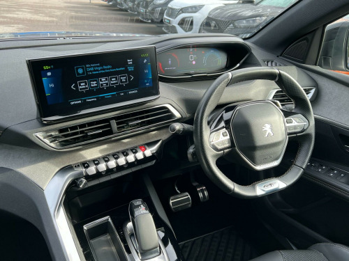 This 2022 Peugeot 3008 GT is a Peugeot manufacturer approved vehicle, offering peace of mind with its proven history. It features a 1.6L Petrol Plug-in Hybrid engine paired with a Four Wheel Drive drivetrain, meeting the Euro 6 emission class. This model comes equipped with a Smart Electric Tailgate for convenient access, and front and rear parking sensors to aid manoeuvrability. For enhanced driving comfort and safety, it includes Adaptive Cruise Control with stop functionality and power folding door mirrors with LED courtesy approach lights and Blind Spot Assistance. The driver's seat also benefits from a 2 position memory function.