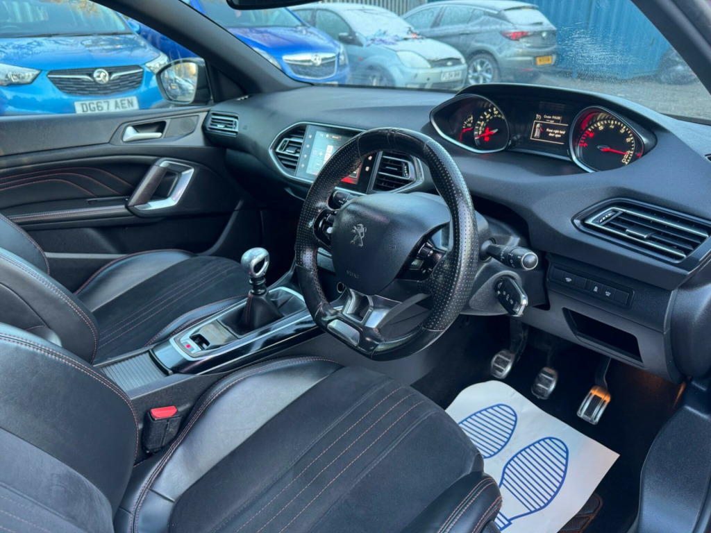 This 2015 Peugeot 308 GT Line offers an impressive 61 miles per gallon, making it a highly economical choice. This stylish hatchback is equipped with a responsive 1.2 litre petrol engine and meets Euro 6 emissions standards, contributing to its low CO2 emissions. Inside, you'll find a premium Nappa Leather interior in Black Mistral with striking red stitching, enhancing the cabin's sophisticated feel. The GT Line trim also includes automatic headlights, a Bluetooth telephone facility for seamless connectivity, and automatic dual zone air conditioning for personalised comfort. For added convenience and safety, it features rear parking aid to assist with manoeuvring.The Peugeot 308 GT Line is designed to impress with its blend of performance and practicality. Its acceleration from 0 to 62 miles per hour in just 10.3 seconds demonstrates its capable performance. The generous boot space ensures you have ample room for luggage or shopping, making it a versatile companion for everyday journeys and longer trips alike. These highlights, including its excellent fuel economy and low CO2 emissions, position this Peugeot 308 GT Line as a superior option compared to many other vehicles in its class. in alloy wheels - diamant with full size spare wheel, nappa leather - black mistral with red stitching, 12v power socket, 18in alloy wheels - diamant, abs - anti lock braking system, asr - anti slip regulation, air conditioning - automatic dual zone, airbags - curtain front and rear, airbags - front side, alarm - ultrasonic, aluminium effect on pedals, armrest - front, bluetooth telephone facility, carpet mats, cruise control and speed limiter, cup holder - rear, cup holders, dab digital radio, deadlocks, door mirrors - electric folding and heated, door mirrors - high gloss black housing, driver seat height adjustment, drivers airbag, eba - emergency brake assist, ebfd - electronic brake force distribution, esp - electronic stability programme, electric parking brake, electric windows - front and rear, electrically assisted power steering, electrochrome rear view mirror, exterior courtesy light, flat folding 60-40 split rear seats, follow me home headlights, front fog lights - led, front passenger airbags, headlights - automatic, headlights - led, hill assist, isofix location points - rear, led daytime running lights, leather steering wheel with stitch detail, locking wheel bolts, parking aid - front, parking aid - reversing camera, passenger seat height adjustment, pollen filter, rain sensing front wipers, rear diffuser - high gloss black, rear lights - led, rear parking aid, remote control central locking, satellite navigation, seats - back pockets, seats - front electric lumbar adjustment, seats - massage function, seats - sports, space saver spare wheel, speed limiter, steering wheel - height adjustable, tinted windows - dark rear, touchscreen - 9.7in colour and multifunction, traction control, trip computer, tyre pressure sensors, usb input