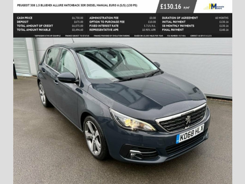 GREAT CONDITION THROUGHOUT THIS PEUGEOT 308 ONLY 61694 MILES FROM NEW WITH A FULL SERVICE RECORD. WITH THIS EURO 6 COMPLIANT 1.5L DIESEL MODEL , YOU'LL FIND THE INNOVATIVE PEUGEOT I-COCKPIT WITH ITS HEAD UP INSTRUMENT PANEL, ALONGSIDE AUTOMATIC DUAL ZONE CLIMATE CONTROL AND A BLUETOOTH TELEPHONE FACILITY FOR SEAMLESS CONNECTIVITY. THE VISIBILITY PACK ENSURES AUTOMATIC HEADLIGHTS, AND PARKING IS MADE SIMPLE WITH FRONT AND REAR PARKING SENSORS.EXPERIENCE IMPRESSIVE EFFICIENCY WITH THIS PEUGEOT 308, BOASTING A REMARKABLE FUEL ECONOMY OF 66 MPG, WHICH IS BETTER THAN MANY SIMILAR VEHICLES. ITS LOW CO2 EMISSIONS ALSO CONTRIBUTE TO ITS ECONOMICAL RUNNING COSTS. FOR THOSE WHO APPRECIATE PERFORMANCE, IT ACHIEVES 0-60MPH IN JUST 9.8 SECONDS, DEMONSTRATING A GOOD BALANCE OF POWER AND EFFICIENCY. FINANCE IS AVAILABLE AND WE CAN BUILD A PACKAGE TO SUIT YOUR INDIVIDUAL NEEDS, JUST VISIT OUR WEBSITE AND CLICK ON APPLY FOR FINANCE TO USE THE FREE ELIGIBILITY CHECKER AND BUILD YOUR OWN DEAL THEN SIMPLY HIT APPLY. INCLUDED IN THE SCREEN PRICE IS AN ULTIMATE WARRANTY WHICH INCLUDES BREAKDOWN COVER AND HOME START, WHICH YOU CAN EXTEND FOR JUST A SMALL COST. ALL OUR VEHICLES ARE MECHANICALLY INSPECTED BY INDEPENDENT CONTRACTORS IN ADDITION TO EXTENSIVE BACKGROUND AND MILEAGE CHECKS PRIOR TO SALE. HPI CLEAR AND SUPPLIED WITH A NEW MOT ALL THE ORIGINAL HANDBOOKS AND TWO KEYS. PLEASE CALL 01455891117 TO ARRANGE A VIEWING AND A TEST DRIVE, YOUR PART EXCHANGE WILL BE MOST WELCOME 17in Alloy Wheels - Rubis Diamond Cut, Automatic Dual Zone Climate Control, 3D Connected Navigation, Cielo Panoramic Glass Roof with Electric, Power Folding Door Mirrors - Includes Co, Hurricane Grey, DAB Digital Radio, 1-3 - 2-3 Folding Rear Seat, 12V Power Socket, 6-Speaker Radio - MP3 Compatible, Airbags - Adaptive Driver and Front Pass, Airbags - Driver and Front Passenger Sid, Airbags - Front and Rear Curtain, Alarm - Thatcham Category 1, Anti-Lock Braking - ABS - Electronic Bra, Automatic Door Locking When Moving Off, Automatic Hazard Light Activation Upon H, Bluetooth Telephone Facility, Central Front Armrest with Height and Lo, Child Locking Functionality on Rear Door, Dark Tinted Re