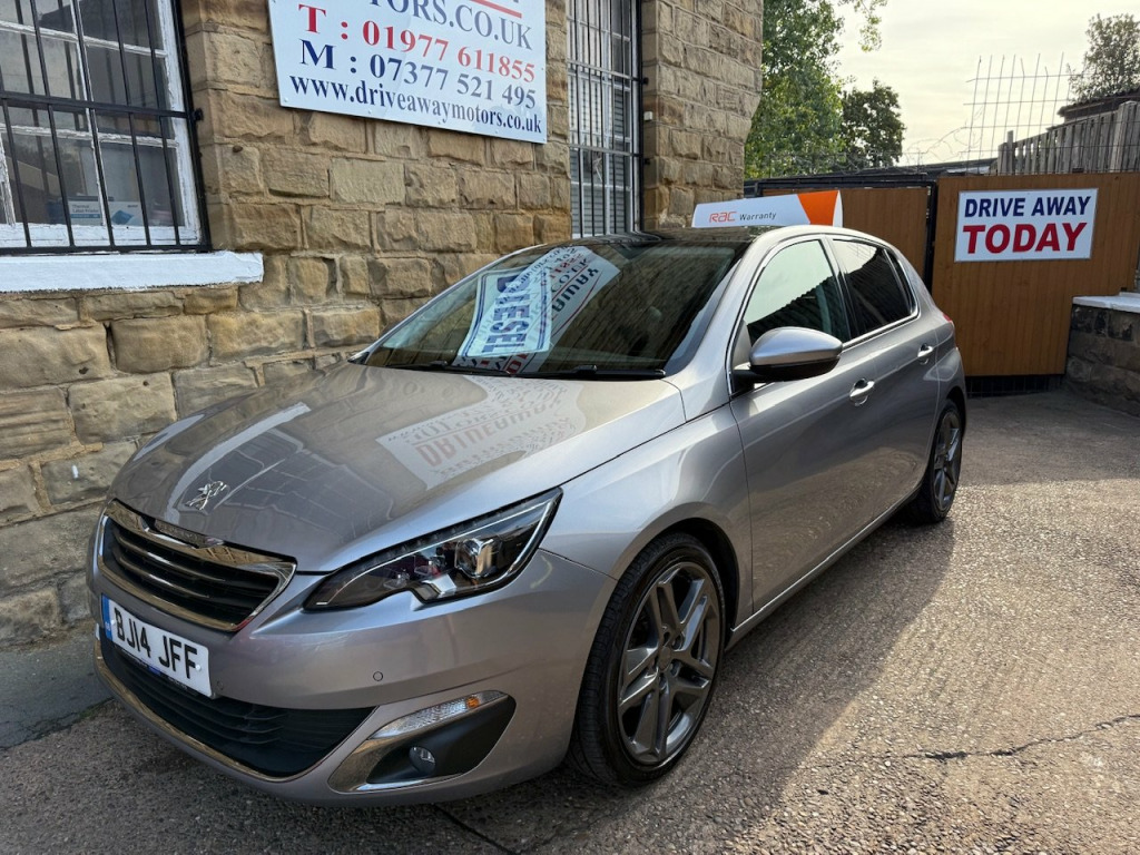2014 PEUGEOT 308 1.6 DIESEL 5 DOOR GREY, 12 MONTHS MOT (NO ADVISORIES) OIL & FILTER SERVICE, EXCELLENT SERVICE HISTORY, £20 ROAD TAX, EXCELLENT CONDITION THROUGHOUT, 12 MONTHS FREE RAC ROADSIDE COVER, RAC PLATINUM WARRANTY, PROFESSIONALLY VALETED, CLEAR ON EXPERIAN, £100 DEPOSIT SECURES THIS VEHICLE, DRIVEAWAY TODAY! Driveaway Motors is centrally located in the village of Ackworth, West Yorkshire, WF7 7HY, close to Doncaster, Barnsley, Wakefield, Pontefract and Castleford, Excellent reviews, Established 2011, Over 20 vehicles in stock, Finance available with no deposit, Extended warranty available, Part exchange considered, New vehicles arriving daily please visit driveawaymotors.co.uk, If you require any further information then please do not hesitate to contact us, Next MOT due 25/08/2026, Last serviced on 26/08/2025 at 73,535 miles, Part service history, 5 seats, Grey, Any inspection, viewing or test drive welcome, £5,000. , This car comes with:, 18in Alloy Wheels - Saphir, ABS - Anti Lock Braking System, Air Conditioning - Automatic Dual Zone, Alarm - Ultrasonic, Bluetooth Telephone Facility, Cielo Panoramic Glass Roof with Electric Blind, Cruise Control - Dynamic, DAB Digital Radio, Driver Assistance Pack, EBA - Emergency Brake Assist, EBFD - Electronic Brake Force Distribution, ESP - Electronic Stability Programme, Electric Parking Brake, Electric Windows - Front and Rear, Electrically Assisted Power Steering, Electrochrome Rear View Mirror, Emergency Collision Alert, Emergency Collision Braking System, Follow Me Home Headlights, Front Fog Lights, Headlights - Automatic, Headlights - LED, Hill Assist, LED Daytime Running Lights, Leather Steering Wheel with Stitch Detail, Open and Go System, Parking Aid - Front, Parking Aid - Reversing Camera, Rain Sensing Front Wipers, Rear Lights - LED, Rear Parking Aid, Satellite Navigation, Seats - Sports, Space Saver Spare Wheel, Tinted Windows - Rear and Acoustic, Tinted Windows - Tailgate, Touchscreen - 9.7in Colour and Multifunction, Tyre Pressure Sensors, USB Input.