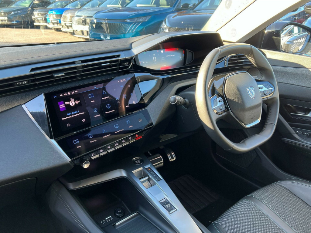 Discover this exceptional 2023 Peugeot 308 Allure Premium, boasting remarkably low mileage for its year at just 18,550 miles. This Euro 6 compliant 1.2L petrol model offers a refined driving experience, enhanced by the convenience of the PEUGEOT Open and Go system with keyless entry. Inside, you'll find the innovative Peugeot i Cockpit featuring a head up display, alongside automatic air conditioning with an Air Quality System for your comfort. Connectivity is seamless with Bluetooth telephone facility and a smartphone charging plate that supports Android Auto, Apple CarPlay, and wireless phone charging.