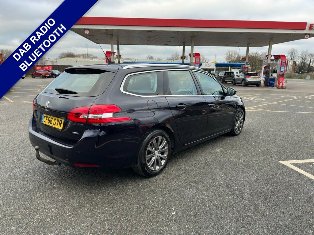 Boasting a full service history and having had only two owners, this 2017 Peugeot 308 SW BlueHDi Allure is a well maintained example. It features a 1.6 litre diesel engine, meeting Euro 6 emission standards. For your peace of mind, it comes with a 3 month warranty and 12 months MOT provided on purchase. Notable features include automatic dual zone climate control, full LED headlamps with integrated daytime running lights, Bluetooth telephone facility, and front and rear parking sensors for easier manoeuvring. This vehicle also comes with 2 keys. This Peugeot 308 SW offers several highlights that set it apart. Its impressive fuel economy of 86 mpg means you can enjoy longer journeys with fewer fuel stops, making it more economical than many other vehicles. It also benefits from a low insurance group, which can help reduce your annual running costs. The generous boot space provides ample room for luggage or shopping, and its low CO2 emissions are better for the environment. 12V Accessory Power Point Front, 16in Alloy Wheels - Diamond, Air Conditioning - Automatic Dual Zone C, Alarm - Ultrasonic, Anti-Lock Braking - ABS - Electronic Bra, Automatic Electric Parking Brake, Automatic Headlamps and Wipers, Bluetooth Telephone Facility, Curtain Airbags for Front and Rear Windo, DAB Digital Radio with 9.7in Multifuncti, Deadlocks, Door Mirror Shells - Body Coloured, Driver and Front Passenger Front and Sid, ESP - Electronic Stability Programme, Electric Folding Door Mirrors with Court, Electric Power Assisted Steering, Electric Rear Windows, Electrochrome Rear View Mirror, Front and Rear Parking Sensors, Full LED Headlamps with Fully Integrated, Halogen Front Fog Ligh