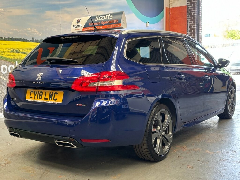 Scott's of Leeds Car Sales are pleased to offer this PEUGEOT 308 SW 2.0 BlueHDi GT Line Estate 5 Door Diesel Manual in Blue. The car is in good condition throughout, in a lovely colour combination and a great specification including Satellite navigation, Panoramic glass roof, Apple car play, Bluetooth, DAB digital radio, Cruise control, USB point, Front & rear parking sensors, Automatic lights & wipers, Reverse camera, Privacy glass, Electric folding mirrors, Electric windows, 6 speed gearbox, Drivers armrest, Isofix, Alloy wheels and much much more. 1 Former Keeper supplied with an up to date service record including 7 services, an MOT until August 2026 and 2 Keys ready to drive away. A guaranteed 12 Months MOT can be added for an extra £100. DISCLAIMER: The above specification is true and correct. Any other specification listed elsewhere can sometimes be incorrect. Please check with Sales Executive to clarify this if needed prior to purchase. 1-3 - 2-3 Folding Rear Seat - Magic Flat, 12V Power Socket, 18in Alloy Wheels - Diamant Two Tone Fin, 3D Connected Navigation, 6-Speaker Radio - MP3 Compatible, Airbags - Adaptive Driver and Front Pass, Airbags - Driver and Front Passenger Sid, Airbags - Front and Rear Curtain, Alarm - Thatcham Category 1, Aluminium Boot Rails, Aluminium Longitudinal Roof Bars, Aluminium Style Pedals and Door Sills, Anti-Lock Braking - ABS - Electronic Bra, Automatic Door Locking When Moving Off, Automatic Dual Zone Climate Control, Automatic Hazard Light Activation Upon H, Bluetooth Telephone Facility, Central Front Armrest with Height and Lo, Child Locking Functionality on Rear Door, Cielo Panoramic Glass