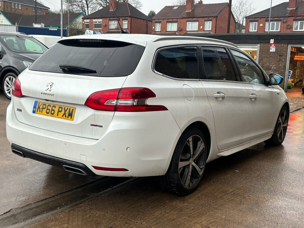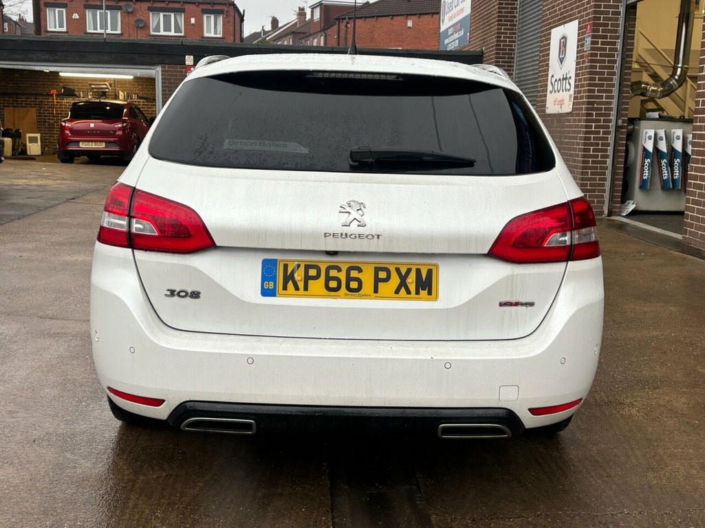 Scott's of Leeds used Car Sales are pleased to offer this PEUGEOT 308 SW 2.0 BlueHDi GT Line Estate 5 Door Diesel Manual in White. The car is in good condition throughout, in the best colour combination and a great specification including Satellite Navigation, Cruise control, Speed limiter, DAB radio, Bluetooth, USB point, apple carplay, Heated leather seats, Panoramic roof, automatic lights, Front and Rear parking sensors, reverse camera, alloy wheels, isofix, Electric windows, and much much more. 1 Former Keeper supplied with an up to date service record including 8 services having just been serviced in our Workshop, an MOT until February 2027 and 2 Keys ready to drive away. £20 Road Tax and great MPG. 3 MONTH NATIONWIDE WARRANTY provided with all vehicles. NATIONWIDE DELIVERY also available. A guaranteed 12 Months MOT can be added for an extra £100. DISCLAIMER: The above specification is true and correct. Any other specification listed elsewhere can sometimes be incorrect. Please check with Sales Executive to clarify this if needed prior to purchase. 12V Accessory Power Point Front, 18in Alloy Wheels - Diamant, Air Conditioning - Automatic Dual Zone C, Alarm - Ultrasonic, Aluminium Boot Rails, Aluminium Style Pedals and Door Sills, Anti-Lock Braking - ABS - Electronic Bra, Automatic Electric Parking Brake, Automatic Headlamps and Wipers, Bluetooth Telephone Facility, Carpet Mats - GT Style, Colour Reversing Camera, Curtain Airbags for Front and Rear Windo, DAB Digital Radio and 9.7in Multifunctio, Dark Tinted Rear Side and Tailgate Windo, Deadlocks, Driver and Front Passenger Front and Sid, ESP - Electronic Stability Programme, Electric Folding Door Mirrors with Court, Electric Power Assisted Steering, Electric Rear Windows, Electrochrom