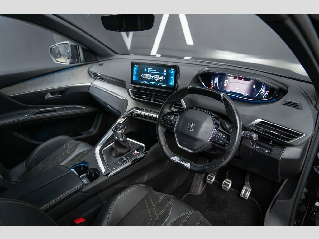 This Peugeot 5008 GT perfectly blends dynamic SUV styling with refined practicality and intelligent design. Finished in Nera Black with a contrasting Black Diamond roof, it projects a bold, modern presence. Distinctive 18-inch Detroit diamond-cut alloys, Full LED headlights, and Gloss Black exterior detailing give it a premium, confident stance. The frameless chrome grille, stainless steel roof trim, and scrolling LED rear lights complete the unmistakable GT identity. Inside, the 5008 showcases Peugeot's renowned i-Cockpit — a beautifully designed, driver-oriented interior combining digital precision and luxury materials. The Mistral full-grain perforated leather steering wheel with Aikinite stitching, blue ambient lighting, and satin chrome detailing elevate the cabin's sense of sophistication. Comfort and versatility meet in the seven-seat configuration, complemented by dual-zone climate control, heated mirrors, and hands-free keyless start. The 3D Connected Navigation, Mirror Screen with Apple CarPlay and Android Auto, and premium LED lighting throughout create a space that feels both cutting-edge and inviting. Practicality and innovation are matched by a refined driving experience, powered by the responsive 1.2-litre PureTech petrol engine with manual transmission and Driver Sport Pack for added engagement. Advanced driver aids such as Lane Departure Warning, Blind Spot Detection, 360-degree sensors, and a 180-degree reversing camera ensure total confide Nera Black, 12V Sockets x3 - Dashboard - Rear Cabin , 180 Degree Colour Reversing Camera with , 18in Alloy Wheels - Detroit - Gloss Onyx, 3D Connected Navigation, 6-Speaker Radio - MP3 Compatible, ABS - Anti-Lock Braking System with REF , Aikinite Contrast Stitching to Armrest -, Airbags - Adaptive Driver and Front Pass, Airbags - Driver and Front Passenger Sid, Airbags - Front and Rear Curtain, Alarm, Aluminium Longitudinal Roof Bars, Aluminium Pedals, Automatic Door Locking When Moving Off, Automatic Hazard Light Activation Upon H, Automatic and Dual-Zone Diffusion Air-Co, Bi-Tuner Radio including DAB - Digital R, Blue Ambient Lighting for Central Connec, Blue Ambient Lighting to Front Doo