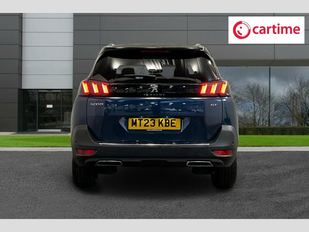 This 2023 Peugeot 5008 PureTech GT is presented with a clear vehicle history check, offering peace of mind for its next owner. This stylish seven seater SUV is powered by an efficient 1.6 litre petrol engine, meeting Euro 6 emission standards. The GT trim level ensures a premium experience, enhanced by features such as striking blue ambient lighting to the head up instrument panel, which includes a head up display. For effortless journeys, the Drive Assist Plus Pack provides adaptive cruise control and front camera parking assistance, complemented by an automatic dual zone climate control system. Illumination is expertly handled by full LED headlights with static cornering lights and daytime running light extension, further benefiting from the Visibility Pack which includes automatic headlights. The Peugeot 5008 GT excels in practicality, boasting a generous boot space that easily accommodates your needs. Its performance is equally impressive, accelerating from 0 to 60 miles per hour in a swift 8.3 seconds, demonstrating a dynamic driving experience. These highlights, including the advanced driver assistance systems and the responsive acceleration, position this 2023 Peugeot 5008 PureTech GT as a superior choice compared to other vehicles in its class, offering a blend of comfort, technology, and performance. 12V Sockets x3 - Front-Rear-Load Area, 180 Degree Colour Reversing Camera with , 18in Alloy Wheels - Detroit - Gloss Onyx, 3D Connected Navigation, 6-Speaker Radio - MP3 Compatible, ABS - Anti-Lock Braking System with REF , Aikinite Contrast Stitching to Armrest -, Airbags - Adaptive Driver and Front Pass, Airbags - Driver and Front Passenger Sid, Airbags - Front and Rear Curtain, Alarm, Aluminium Longitudinal Roof Bars, Aluminium Pedals, Automatic and Dual-Zone Diffusion Air-Co, Automatic Door Locking When Moving Off, Automatic Hazard Light Activation Upon H, Blue Ambient Lighting for Central Connec, Blue Ambient Lighting to Front Door Pane, Blue Ambient Lighting to Head-Up Instrum, Bluetoo