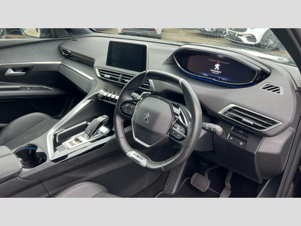 Peugeot 5008 1.2 PureTech GT Line Premium 5dr EAT8 3D connected navigation + voice control, Auto start and stop system, Bluetooth telephone connection, Exterior temperature gauge with frost alarm, Headlight on warning buzzer, Lane departure warning system, Mirror screen with Apple CarPlay and Android auto, Multi function trip computer, Peugeot i-cockpit with 12.3" headup digital instrumental panel, 8.0" capacitive touch screen and compact sports steering wheel, PEUGEOT SOS and assistance, Smartphone wireless charging plate, Speed limit recognition, Sports button, Dynamic stability control, DAB Digital radio, MP3 connection, Steering wheel audio controls, USB socket, 2 X Rear number plate lights, Aluminium roof rails, Auto self levelling headlights, Automatic activation of hazard warning lights, Black front wing trim with chrome detail, Body colour door handles, Body coloured bumpers, Body coloured rear spoiler, Body protectors in black, Chrome front fog light surround, Chrome rear bumper scuff plate, Chrome trim to lower side windows, Dark tinted rear side and tailgate windows, Door mirror mounted LED Peugeot lion approach lights, Electric front/rear windows with one touch/auto up/down, Electrically heated door mirrors, Front windscreen wiper with magic wash cleaning system, Full LED headlights with LED fog lights with static cornering function, sports front bumper and grille, Gloss black B and C pillar and aerodynamic deflector trim, Gloss black rear cluster connecting strip, Gloss black windscreen surround, GT Line emblem in satin copper, Heated rear windscreen with integrated antenna, LED daytime running lights, LED sequential scrolling front indicators, LED side indicator lights integrated into door mirrors, Lion grey front bumper scuff plate, Nera black door mirrors, Panoramic opening glass roof with electric blind, Power folding door mirrors with indicator and auto dipping function in reverse gear, Radiator grille in chrome edge trim with chequered design and black 'PEUGEOT' lettering, Rear LED Peugeot signature 'Claw Effect' lights, Rear side window blinds, Rear windscreen wiper with auto activation when reversing, Stainless steel roof arches, Twin exhaust effect trim, Wheel arch protectors, 2 cupholders in front centre console, 2 individual folding 3rd row seats, 230V socket on rear centre console, 3 x 12V power sockets, 4 Grab handles retractable and damped, Aikinite stitching in armrest, gear lever and dashboard facia, Automatic dual-zone climate control, Blue ambient lighting for connecting zone, Blue ambient lighting to front door panels, central storage and cupholders, Blue ambient lighting to head up instrument panel, Electric power steering with reach and rake adjustable steering column, Flat folding rear seats, Flocked front door pocket interior with blue ambient lighting, Flocked glovebox interior, Fold flat front passenger seat with picnic table, Front central armrest with butterfly-wing opening and storage compartment, Front interior light with 2 reading spotlights and rear interior light with timer, Front passenger seat height adjust, Front passenger seat manual adjustment in longitudinal and back rest angle, Gear shift indicator, Headrests on 2nd/3rd row seats, Heating/air conditioning outlet in rear, Illuminated glovebox, Illuminated vanity mirror, Imila cloth/Leather upholstery, Interior lighting, Isofix child seat fittings x 3 in the second row, Map pocket on front seat backs, Mistral floor mats with Aikinite contrast stitching, Mistral full grain perforated leather steering wheel with aikinite stitch detail and satin chrome 'GT Line' emblem, Rear centre console with air vents, Rear reading lights x 2, Rear seat underfloor storage, Retractable parcel shelf, Roof lining - Mistral black, Satin chrome digital instrument panel and touchscreen trim, Satin chrome front door panel recess trim, Satin chrome gear lever, Satin chrome interior door handles, Satin chrome scorpion's tail and toggle switch trim, Seatbelt unfastened on the move audible and visual alert for front and rear seats, Twin rear coat hooks, Children's pack - 5008, Driver sport pack - 5008, Safety pack - 5008, Safety plus pack - 5008, Visibility pack - 5008, 3 Isofix location points, ABS + EBD + EBA, Adaptive driver and front passenger airbags including passenger airbag deactivation function, Electronic parking brake, ESP and ASR traction control with deactivation switch, Five 3 point rear safety belts, Front and rear curtain airbags, Front optimised safety headrests and rear retractable headrests (x3), height adjustable, Front seatbelt unfastened audible+visual warnings, Front side airbags, Front three point retractable seatbelts height adjustable with pre tensioners and force limiters, Front ventilated disc brakes, Hill start assist, Rear disc brakes, Rear three-point retractable seatbelts (x3) with pre-tensioners and force limiters in the outer rear seats, Tyre pressure monitor, Automatic door lock/re-lock after 30 seconds, Child lock control of rear doors and windows, Electric tailgate with Peugeot open & go system, Remote control central locking with two plip keys, Rolling code transponder immobiliser, Thatcham cat 1 ultrasonic alarm, Brumeo fabric interior trim, Satin chrome dash trim, 19" Washington two tone diamond cut alloy wheels with space saver spare wheel