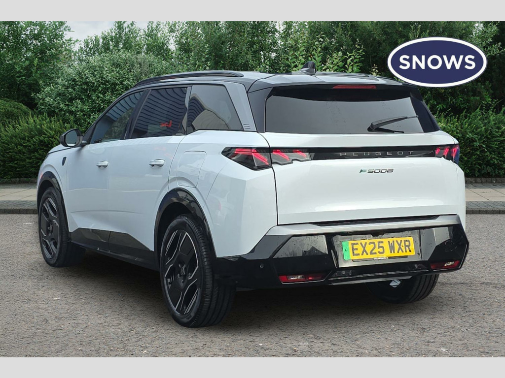 Peugeot 5008 157kW GT 73kWh 5dr Auto 11kW Triphase On Board Charger, 12V Sockets x3 - Front-Rear-Load Area, 20in Alloy Wheels - Yosemite - Orbital Black - Diamond Cut with Matte Onyx Black and Gloss Onyx Black Inserts, 2nd Row Central Armrest with Two Cupholders and Smartphone Holder, 2nd Row Seats with 60-40 Base and 40-20-40 Folding Backrest and Easy Access to 3rd Row, 3 Stage Regenerative Braking via Paddles - Light-Medium-Strong, 3rd Row Seats with One-Piece Fixed Base and 50/50 Folding Backrest, 5008 Model Designation Badges Front and Rear in Basalt Grey, 8-Colour Extended Ambient Lighting, ABS - Anti-Lock Braking System with REF - Electronic Braking Distribution and AFU - Emergency Braking Assistance, AVAS - Acoustic Vehicle Alerting System, Acoustic Windscreen, Adaptive Cruise Control with Stop and Go Function, Advanced Emergency Braking System with Radar, Air Conditioning - Tri-Zone Climate Control, Airbag - Row 2 Side, Airbags - Adaptive Driver and Front Passenger, Airbags - Curtain For Row 1-2-3, Airbags - Driver and Front Passenger Side, Alarm, Aluminium Pedals, Aluminium Printed Dashboard and Front Door Panel Alcove Decor, Ambient Lighting Linked to Drive Mode, Arch Design Central Console with Storage, Automatic Door Locking When Moving Off, Automatic Hazard Light Activation Upon Heavy Brake Application, Automatic Windscreen Wipers, Boot with Roll-up Awning, Boot with Under-Floor Storage and with 4x Luggage Tie-Down Rings and 2x Bag Hooks, Cabin HE High Efficiency Filter, Central Front Armrest with Ventilated Storage Compartment and LED Lighting, Centre Console with Open Storage Place and Twin Cup Holders, Compact Heated Multifunction Steering Wheel - Full Grain Leather with Iced Clay Stitching with Gloss Black-Satin Chrome Detailing and GT Badge, Compact e-Toggle Gear Selector, Customisable Virtual 'i-Toggle' Display, DAB - Digital Audio Broadcasting, DSC - Dynamic Stability Control and ASR - Electronic Anti-Skid System, Dark Tinted Privacy Glass for Rear Doors - Tailgate and Quarter Windows, Deadlocking, Door Handles - Body Coloured, Door Mirrors - Electric Adjustment - Heated - Power Folding - Welcome Lighting - Integrated LED Indicators, Door Mirrors - Orbital Black, Drive Mode Selection - Eco-Normal-Sport, Driver Attention Alert, Drivers Footrest, Drivers Seat - Lumbar Adjustment, Electric Child Locking Functionality on Rear Windows and Doors, Electric Parking Brake includes Hill Assist, Electric Power Steering with Reach and Rake Adjustable Steering Column, Electronic Code Immobiliser, Exterior Door Lock - Passenger Door, Exterior Temperature Indicator with Ice Warning, Frameless Electrochrome Rear View Mirror, Front Grille - Body-Coloured, Front Optimised Safety Headrests and Rear Retractable Headrests - x3 - Height-Adjustable, Front Parking Sensors, Front Passenger Seat Detection, Front Three-Point Retractable Seatbelts - Height-Adjustable with Pre-Tensioners and Force Limiters, Front Windscreen Wiper with Magic Wash Cleaning System, Full 3D LED Rear Lights with PEUGEOT Claw Effect Daytime Running Light Signature, Glasses Storage Box - Roof Mounted, Gloss Black B Pillar, Gloss Black Rear Cluster Connecting Strip, Gloss Black Roof Bars, Glovebox with LED Lighting, Grab Handles x4 - Retractable - Damped, Hands Free Smart Electric Tailgate - Foot Operated, Headlights - Automatic, Heated Front Seats, Horn, ISOFIX Child Seat Fittings - x2 - Second Row, Illuminated Footwell - LED, Interior Ambience - Mistral Black - Pillars and Headlining, Interior Door Handles - Chrome, Keys x2, LED Boot Lighting, LED Exterior Lighting, LED Illuminated Driver and Passenger Concealed Sunvisor Mirrors, LED Interior Lighting - Roof, Laminated Windscreen, Lane Keeping Assist, Locking Wheel Nuts, Lower Door Claddings and Wheel Arches Protection, Lower Door Claddings and Widened Wheel Arches Protection - Grained Black, Lower Door Claddings and Widened Wheel Arches Protection - Orbital Gloss Black, Lower Front Bumper - Meteor Grey, Luggage Cover, Luxury Front and Rear Carpet Mats with Iced Clay Stitching and GT Logo, Manual Window Blinds for 2nd Row, Mirror Screen - Apple CarPlay and Android Auto, Mode 3 Type 2 Cable for Wallbox Charging, Multifunction Trip Computer, One-Touch Electric Front and Rear Windows with Pinch Protection, PEUGEOT 3-Claw Signature Front and Rear Daytime Running Lights, PEUGEOT Open and Go System, PEUGEOT Shield on Front Wings, PEUGEOT e-Remote Control - Vehicle Charging and Cabin Pre-Conditioning, PEUGEOT i-Connect Advanced, Peugeot Connect SOS and Assistance, Peugeot Smartbeam Assistance, Peugeot i-Cockpit, Pixel LED Technology Headlights with Adaptive High Beam Assist, Post Collision Safety Brake - PCSB, Puncture Repair Kit, Quick Launch Cabin Heating-Cooling Function, Rear Bumper - Meteor Grey, Rear Full LED 3D Peugeot Signature Claw Effect Lights - With Daylight Function and Sequential Welcome Sequence Upon Unlocking the Vehicle, Rear Parking Sensors, Rear Three-Point Retractable Seatbelts x3 - with Pre-Tensioners and Force Limiters in the Outer Rear Seats, Rear Wipers, Reversing Camera with Camera Washing Function, Roof and Rear Spoiler - Black Diamond, Roofline - Meteor Grey, Seatbelt Unfastened on the Move Audible and Visual Alert for Front and Rear Seats, Seatbelts - Rear Central Seat with 3 Point Seatbelt, Seating - Dynamic Front Seats - Height Adjustable, Smartphone Wireless Charger, Speed Limit and Road Sign Recognition and Recommendation, Stainless Steel PEUGEOT Door Sill Trims, Tailgate with Heated Rear Window, Textile Decor for Dashboard - Door Panels and Central Console Arch, Tyre Under-Inflation Monitoring and Detection - Indirect, Widened Wheel Arches