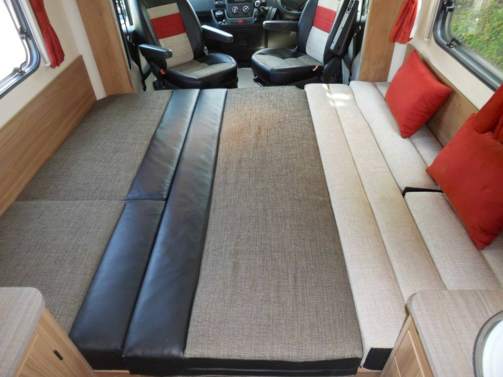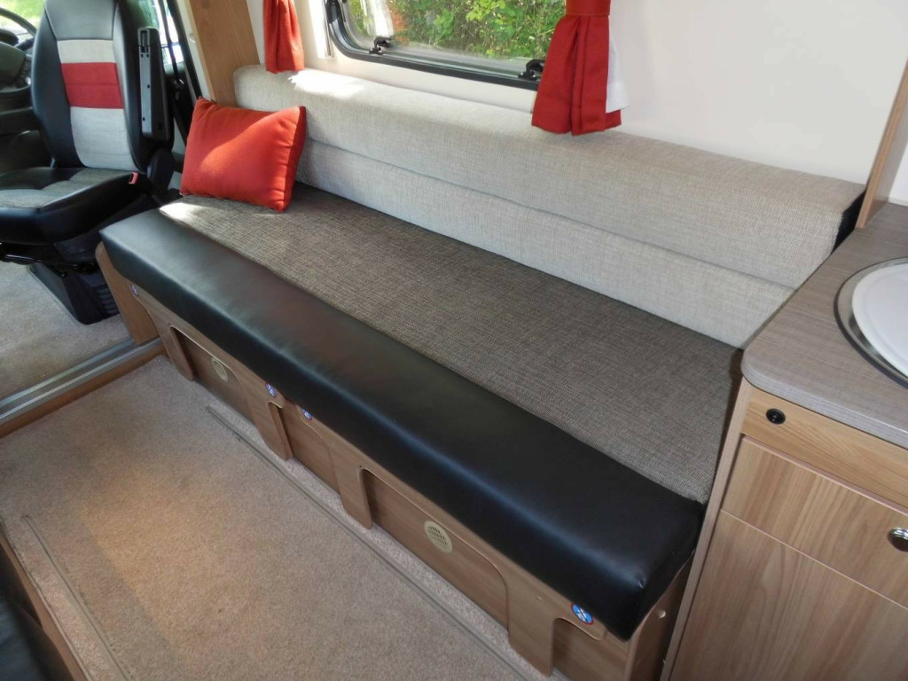 Based on the Peugeot Boxer this motorhome comprises a low profile cab with two long bench seats that convert to a double or can be uses as two singles and a large end washroom with separate shower. ssette toilet, hand basin, shower, wardrobe, 3-burner hob, 3-way fridge, grill, oven, sink/drainer, 3 point seatbelts, air conditioning, central locking, electric windows, park assist camera, power steering, power steering, spare wheel, abs, multiple airbags, electric mirrors, radio, front armrest, colour coded body, battery charger, blinds, blown air heating, end washroom, fly screens, heki rooflight, hot water, loose fit carpets, mains electric, mid kitchen, water heater, wind out awning