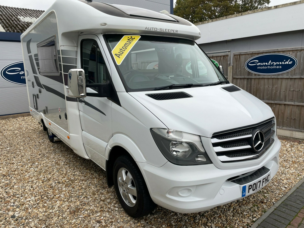 MERCEDES AUTOMATIC, FRONT LOUNGE, REAR KITCHEN; Flexible living space, lounge converts to single beds or a double bed with storage below. Overhead lockers throughout. Wash/shower room with cassette loo situated ahead of kitchen section. Rear Kitchen comprises gas & electric hob/cooker/grill, microwave, extractor and sink with hot & cold water taps, 3-way powered fridge with freezer compartment. Gas and electric heating and hot water. Cab air conditioning, cruise control, awning and solar panel. Typical, Auto-sleepers high specification and finish throughout. Call for more information or to arrange a viewing. '' We have attempted to make the above description as accurate as possible but please bear in mind that honest mistakes can happen so this description cannot form any part of any future contract.  Some items fitted to models on display may be excluded from said contract' ssette toilet, end kitchen, grill, hob, oven, 160bhp engine, 2 berth, 240 mains & usb sockets, alloy wheels, automatic, awning, battery charger, blinds, cab aircon, camera, cruise control, curtains, electric step, flyscreens, fridge, front lounge, gas bbq, gas hob, heating, heki roof light, leisure battery, lovely original condition, low mileage, mains hookup, mercedes, plgv (under 3.5t), reversing camera(s), sink, solar panel, swivel cab seats, waste tank