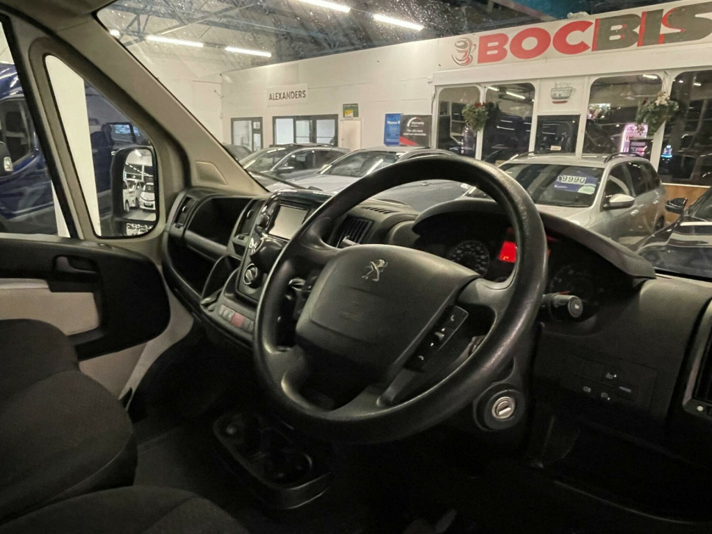 This 2018 Peugeot Boxer presents an exceptional opportunity with its remarkably low mileage of just 54,000 miles. This 2.0 BlueHDi 335 Professional L2 H2 Euro 6 5dr model is powered by an efficient 2.0 litre diesel engine and meets Euro 6 emissions standards. The Professional trim level ensures you benefit from a host of useful features, including a touchscreen with integrated navigation and FM DAB digital radio with Bluetooth connectivity. For your comfort, it comes equipped with manual air conditioning, and parking is made easier with the rear parking aid and sensors.The BlueHDi 335 Professional variant stands out due to its thoughtful combination of features designed for practicality and ease of use. The integrated navigation system is a significant advantage for any journey, while the digital radio offers a wider choice of listening options. The inclusion of air conditioning and rear parking assistance further enhances the driving experience, setting this Boxer apart from others. This vehicle offers a compelling package for anyone seeking a well equipped and low mileage commercial van. v power socket, 220a alternator, 3-button plip remote control central locking x 1, abs - anti lock braking system, air conditioning - manual, alarm - perimeter and anti lift, armrest - driver, central dash folding clipboard, cruise control and speed limiter, deadlocks, digital clock, door mirrors - electrically adjustable and heated, door open warning for cab doors, drivers airbag, drivers seat with lumbar adjustment - height - longitudinal adjustment, dual cab passenger seat, ebfd - electronic brake force distribution, esp - electronic stability programme, electric front windows, filtering tinted glass, floor - non slip hardwearing front cab covering, four speed heater blower - four face level vents and two side window demisters, front door armrests, full height steel bulkhead, gear shift indicator, halogen headlamps with clear polycarbonate lenses, high level third brake light, interior light front cabin, large driver and passenger door pockets, lights on warning, locking fuel filler cap, oil level indicator, open storage on passenger side lower dash, power assisted steering - variable, rear fog and reversing lights, rear load area light x2, rear parking aid, remote headlight adjustment from facia, rev counter - water temperature gauage - fuel gauge and trip computer, roof mounted aerial, side light - headlight - indicator and battery charge warning, solid nearside sliding side door, solid twin rear 180 opening doors, spare wheel, speakers x4, speedometer with digital odometer and digital trip recorder, steering column - reach adjustment, thatcham rolling transponder immobiliser, three x3 point inertia reel - height adjustable seatbelts, tie down hooks in load area x8, touchscreen - integrated navigation - fm dab digital radio-cd, two glove boxes, two speed intermittent front wipers, visible vin number at base of windscreen