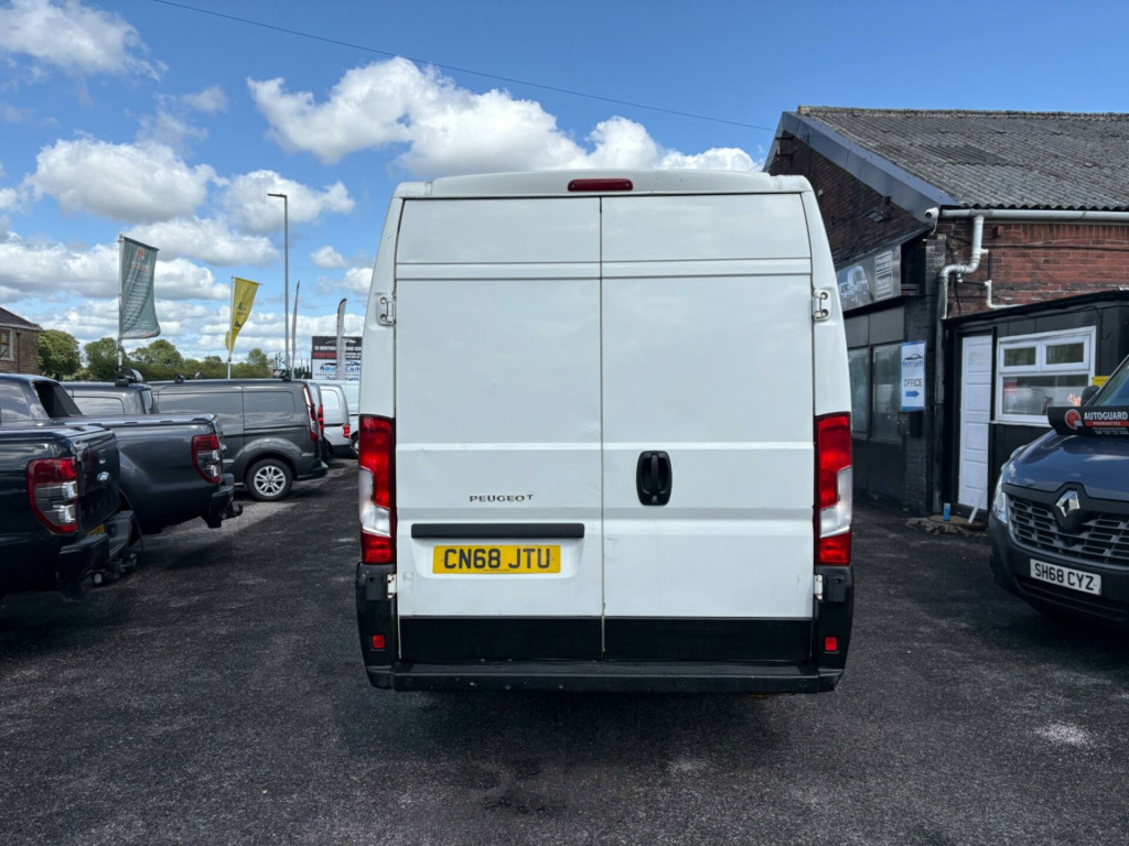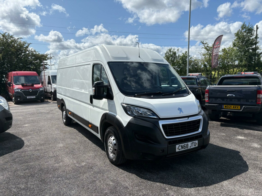 With only 62000 miles on the clock, this 2018 Peugeot Boxer is ready to get to work. This van is the BlueHDi 435 Professional L4 H2 Euro 6 5dr derivative, with a 2.0L diesel engine and a Professional trim. It meets Euro 6 emission standards. The vehicle is equipped with manual air conditioning, rear parking aid, and a touchscreen integrated navigation system with FM DAB digital radio, CD player, and Bluetooth connectivity. For peace of mind, it comes with a 3-month warranty, a clear vehicle history check, and will have 12 months MOT provided on purchase.The vehicle's impressive 15000 litres of cargo volume means it can carry more than similar vehicles. The 3000 kg towing weight allows it to tow heavier loads than comparable vehicles. In addition, the low insurance group means that insuring this vehicle could be more affordable than insuring similar vehicles. volt socket in cabin, 16in steel wheels, 3-button plip remote control central locking x 1, abs - anti lock braking system, air conditioning - manual, alarm - perimeter and anti lift, central dash folding clipboard, cruise control and speed limiter, deadlocks, digital clock, door mirrors - electrically adjustable and heated, door open warning for cab doors, drivers airbag, drivers seat with armrest - lumbar adjustment - height - longitudinal adjustment, dual cab passenger seat, ebfd - electronic brake force distribution, esp - electronic stability programme, electric front windows, filtering tinted glass, floor - non slip hardwearing front cab covering, four speed heater blower - four face level vents and two side window demisters, front door armrests, full steel bulkhead, gear shift indicator, halogen headlamps with clear polycarbonate lenses, high level third brake light, interior light front cabin, large driver and passenger door pockets, lights on alarm, locking fuel filler cap, oil level indicator, open storage on passenger side lower dash, power assisted steering - variable, rear fog lights and twin reversing lights, rear load area light, rear parking aid, remote headlight adjustment from facia, rev counter - water temperature gauage - fuel gauge and trip computer, roof mounted aerial, side light - headlight - indicator and battery charge warning, solid nearside sliding side door, solid twin rear 180 opening doors, spare wheel, speakers x4, speedometer with digital odometer and digital trip recorder, steering column - reach adjustment, thatcham rolling transponder immobiliser, three x3 point inertia reel - height adjustable seatbelts, tie down hooks in load area x10, touchscreen - integrated navigation - fm dab digital radio-cd, two speed intermittent front wipers, visible vin number at base of windscreen