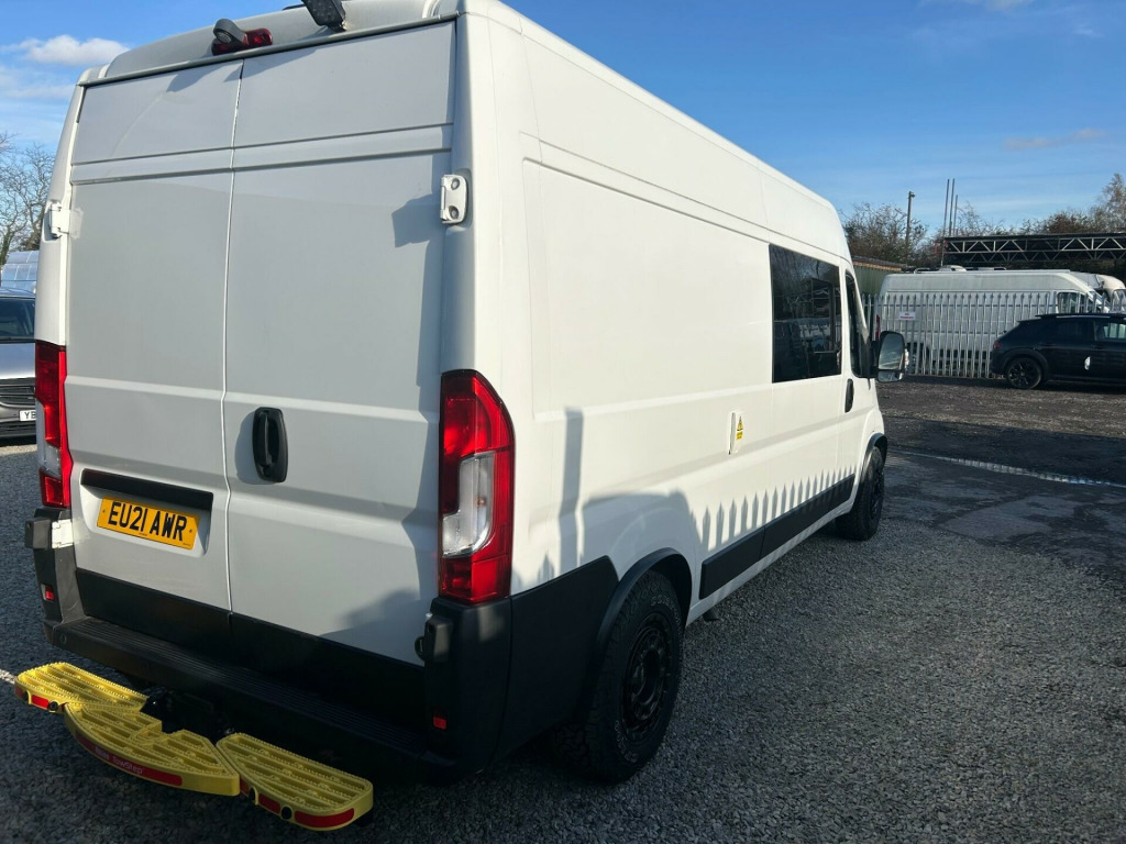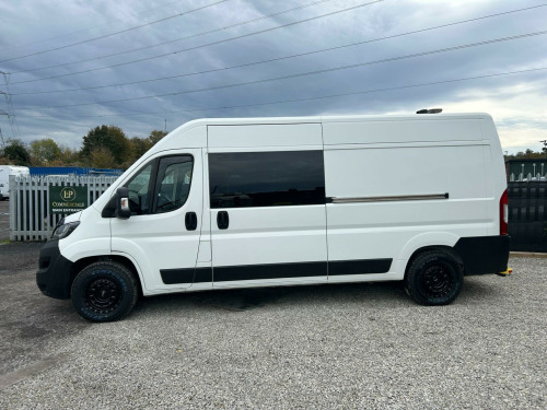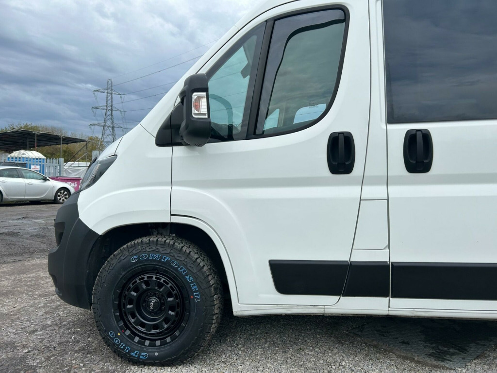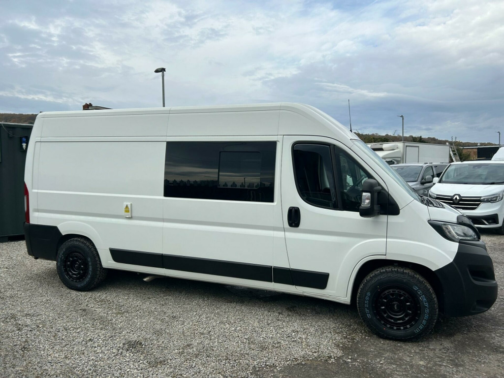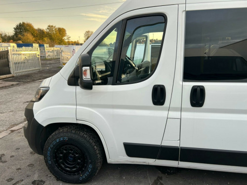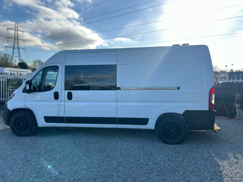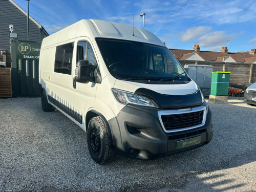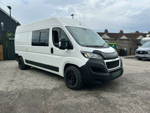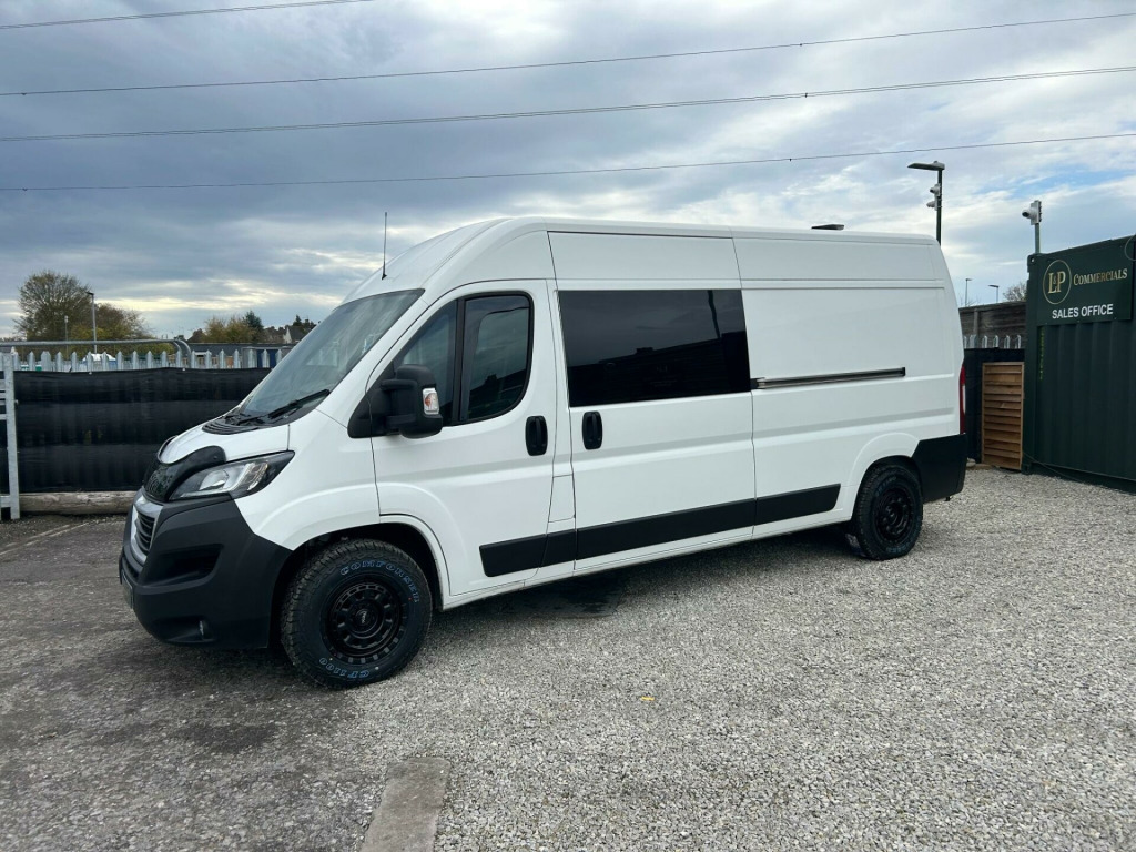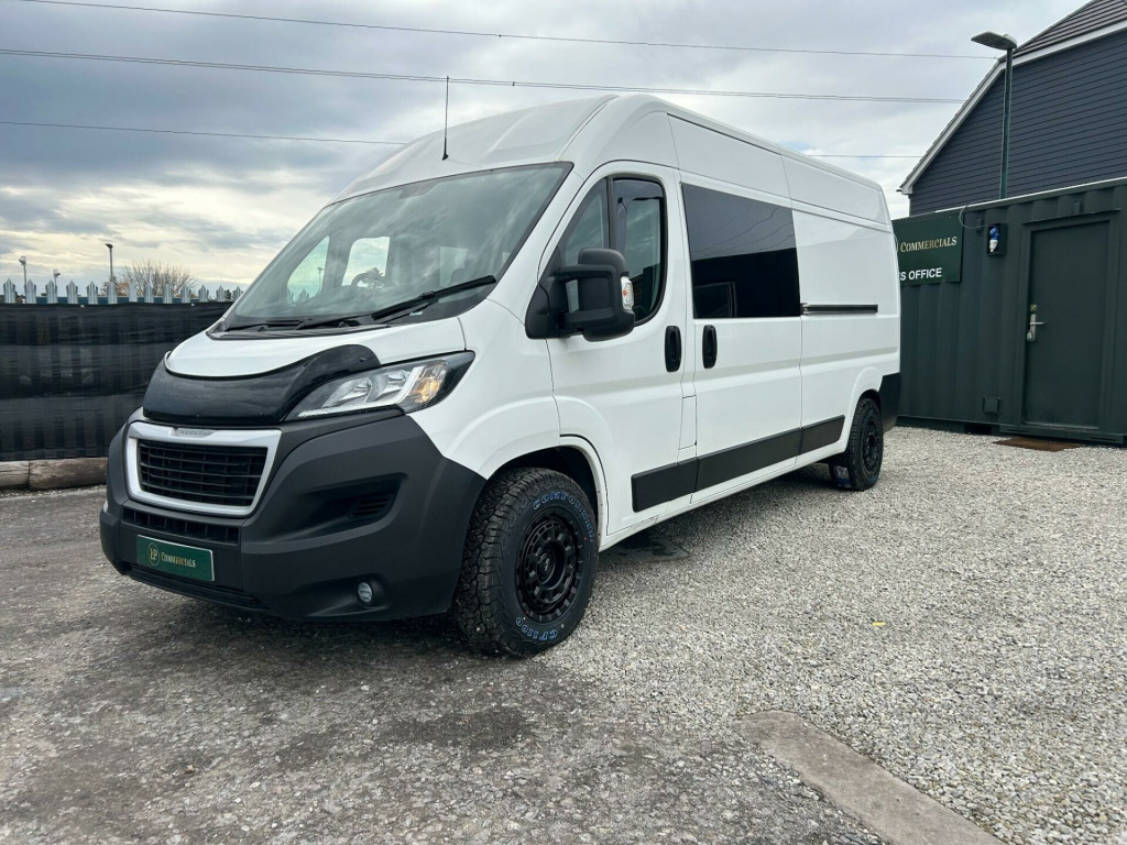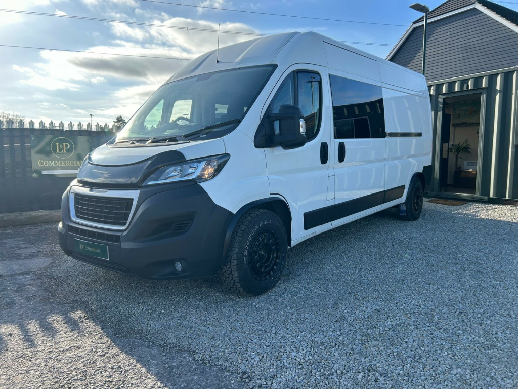 PEUGEOT BOXER 2.2 BLUE HDI 335 PROFFESSIONAL L3 H2 WELFARE VAN, 2.2 Diesel engine, Genuine 52,026 miles, 6 speed manual gear box, MOT until 26 April 2026, 1 owner, Full service history, FULL Overlander fit out, brand new TG9 wheels and all terrain tires, soon to be fitted mud flaps and projecting arches, AIR CON, reverse camera including a full time rear view camera, rear work lights, rear step, Nav, Bluetooth connecting hands free, triple front cab seats, spacious rear seating area with four seats and a dining table, microwave, kitchen with sink basin, boiler, instant hot water, Inverter control panel for boiler, water pump, lighting and master, soap dispensers x2, paper towel dispensers x2, wall mounted first aid kit, rear compartment changing welfare room with sink and dispensers, 2 leisure batteries, external power inverter socket to power for long stay, flashing roof beacon, storage cupboards, this is a very useful, functional vehicle that is ready for work, a day van or an excellent camper conversion. For any more information, or a viewing please, Strictly by appointment only, please call. 6 months complimentary warranty, with Warranty 1st , PLEASE SEE OUR WEBSITE FOR MORE STOCK! Vehicle can be put back to standard for Commercial use on request. volt socket in cabin, 15in steel wheels, abs - anti lock braking system, battery charge warning, bulb out warning for side light - headlamp and indicators, central dash folding clipboard, cruise control with programmable speed limiter, daytime running lights, deadlocks, door open warning for cab doors, driver seat height adjustment, drivers airbag, drivers seat armrest - lumbar adjustment and under seat storage, dual passenger bench seat, ebfd - electronic brake force distribution, esc - electronic stability control, electric front windows, emergency braking assistance, floor - non slip hardwearing front cab covering, full size steel spare wheel, full steel bulkhead, gear shift indicator, halogen headlamps with clear polycarbonate lenses, high frequency remote control central locking with 3-button plip, laminated windscreen, lights on alarm, lockable non-illuminated glove box, lower central glovebox, manual air conditioning for cab area including glovebox, manually folding door mirrors, nearside sliding side loading door, oil level indicator, peugeot connect for free2move connect fleet services, perimetric alarm, power assisted steering - variable, rear door opening to 180 degrees, rear load area light, rear parking sensors, rear single-leaf suspension, remote headlight adjustment from facia, rev counter - water temperature gauage - fuel gauge and trip computer, steering column - reach adjustment, thatcham rolling transponder immobiliser, three x3 point inertia reel - height adjustable seatbelts, tie down hooks in load area x10, tinted windows, touch screen navigation pack, twin lens door mirrors with electrically adjustable and heated upper mirror, two-speed and intermittent front windscreen wipers, visible vin number at base of windscreen