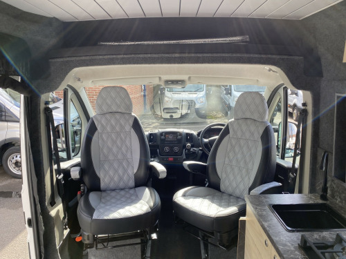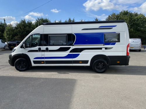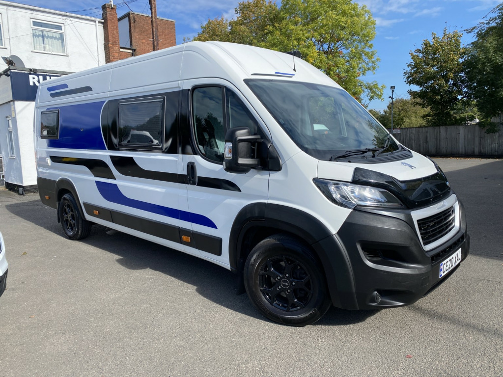 Just in and awaiting preparation, Peugeot Boxer 435 L4 H2 2.2 Blue HDI New Camper Van Conversion ... Low Mileage with Service History, New Engine, Clutch Kit and Ancillaries fitted at 41,415 Miles under Warranty by Peugeot. Registered as Motor Caravan on V5 (Cheaper Insurance). Solar Panel, Air Conditioning, Cruise Control, Alloy Wheels, Body Styling etc.... Extra Large Double Bed suitable for two Tall adults. Fiamma F80S Wind out Awning with clip on sides and Awning Skirt, 230v Hook Up with External Socket, Touch Sensetive Lighting, Roof Lights, Side Windows with Fly Screens and Blinds etc. The specification to the conversion is brilliant with a wardrobe/cupboards and plenty of storage areas, fully working kitchen including a fridge, Gas hob and sink to cater for everyday camper life. For the night time there are reading lights built into the roof and a diesel heater for those colder winter nights. There are Multiple plug in areas with added USB charging ports, which is a nice finish to the conversion. The vehicle will come with a clean HPI report, new MOT and Serviced at the advertised price. We can arrange videos for this vehicle. Nationwide delivery available, RAC Warranties available up to 24 Months. Finance facilities available, Please call to enquire. Export enquiries welcome.
