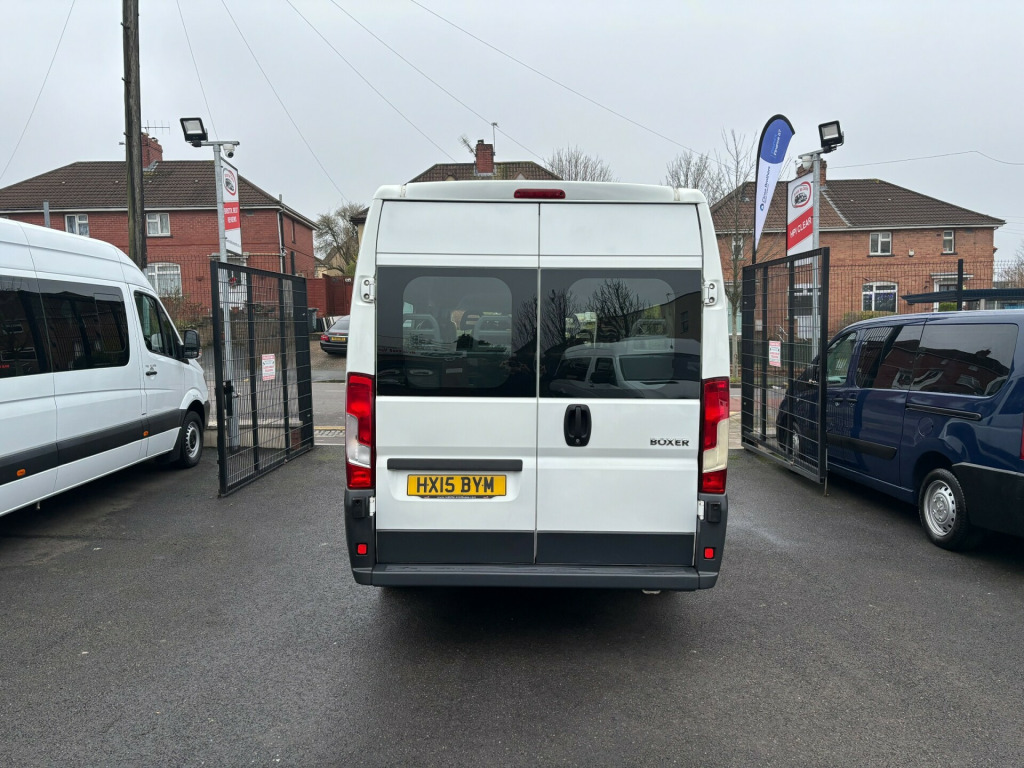 PSV MOT AVAILABLE DISABLED REAR RAMP THE MINIBUS LITE CAN BE DRIVEN ON A CAR LICENCE.MOST MINIBUSES REQUIRE THE DRIVER TO HAVE D1 ENTITLEMENT ON THEIR LICENCE, BUT THE LIGHTWEIGHT MINIBUS IS A PEUGEOT VALIDATED CONVERSION ONE OF ONLY TWO IN THE UK AND IS THE ONLY MINIBUS NOT REQUIRING A D1 LICENCE TO BE EC WHOLE VEHICLE TYPE APPROVED ONE OWNER FROM NEW WE PRIDE OURSELVES ON THE QUALITY OF OUR VEHICLES REMOTE CENTRAL LOCKING 2 KEYS ELECTRIC WINDOWS USB AUX AIR BAG HANDS FREE READY TO WORK, FINANCE THIS VEHICLE TODAY AND DRIVE AWAY THE SAME DAY. ALL VEHICLES COME WITH BRAND NEW 12 MONTHS MOT AND FULLY SERVICED WITH 3 MONTHS NO QUIBBLE GUARANTEE. WHEN PURCHASING YOUR NEW VEHICLE BUY WITH CONFIDENCE AND DON'T TAKE OUR WORD FOR IT JUST READ OUR 5 ***** GOOGLE REVIEWS ALL MINIBUSES ( SUBJECT TO AGE ) CAN BE SUPPLIED READY TO WORK WITH COIF CERTIFICATES, PSV TESTED AND TACHOGRAPHS AT COMPETITIVE RATES. DELIVERY CAN BE ARRANGED AT COST OR PICK UP FROM BRISTOL AIRPORT OR TRAIN STATION OUT OF HOURS PHONE NUMBER CHRIS 07901887472 OR BARRY 07785574697This 2015 Peugeot Boxer presents an exceptional ownership history, having been meticulously maintained by just one owner from new. This well cared for L4 H2 panel van is equipped with a robust 2.2 litre HDi diesel engine, delivering a capable 130 brake horsepower. Its 440 variant designation signifies its substantial load carrying potential, making it a practical choice for a variety of commercial needs.The 2.2 HDi 440 FWD derivative offers a strong blend of performance and efficiency, with its 130 bhp engine providing ample power for daily operations. This single owner vehicle demonstrates a commitment to upkeep, suggesting a well preserved example. The Boxer's spacious interior and reliable diesel engine make it a dependable workhorse, ready to meet the demands of your business. tie-down hooks in the load area, 12v socket in cabin, digital tachograph, 16in steel wheels with 225/75 r16 tyres, electric adjustable and heated door mirrors, glazed rear doors, glazing to left hand sliding door, glazing to right hand side sliding door, spare wheel, 3-button plip remote control central locking x1, abs, deadlocks, driver airbag, esp, electronic brake force distribution (ebfd), head restraints - front, high level third brake light, lane departure warning system, thatcham rolling transponder immobiliser, traction control, variable power assisted steering, 4 speakers (2 speakers and 2 tweeters), bluetooth, dab digital radio, digital clock, driver seat armrest, drivers lumbar adjustment, drivers seat with height and longitudinal adjustment, electric front windows, fm radio including usb input, filtering tinted glass, heated rear windows, reach adjustable steering column, trip computer, two glove boxes (central glove box lockable), cab overhead sorage, upholstery cloth - magnet cloth, full steel bulkhead, glazed rear doors with heated windows, reinforced suspension