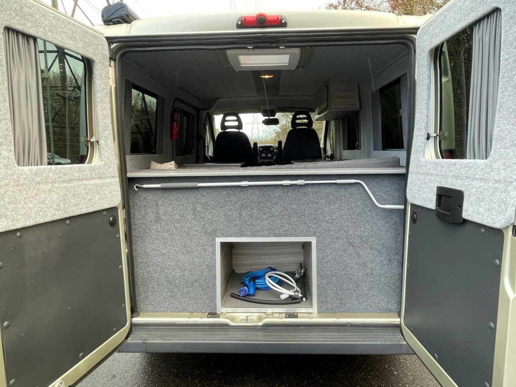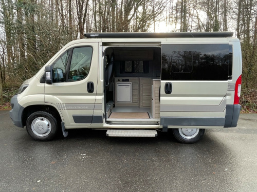 This compact Peugeot Boxer camper, professionally converted by Leisure Camp UK, is a superb example of clever design in an easy-to-manage package. Measuring under 5 metres in length, it's ideal for everyday driving while still offering all the comforts you need for weekends away or longer adventures. With 47,442 miles on the clock, it features a bright and welcoming interior thanks to the large windows, which flood the space with natural light while remaining tinted for privacy. The cab benefits from swivel front seats, seamlessly extending the living area when parked up.At the rear, the popular lounge layout creates a relaxed and versatile space for dining, unwinding, or converting into a comfortable sleeping area. The well-equipped kitchenette makes meal prep simple, while practical extras such as a brand-new porta loo, diesel heating, reversing camera, and canopy awning add real touring convenience. Compact, well specified, and easy to live with, this Leisure Camp UK-converted Boxer is a fantastic choice for those seeking freedom without the bulk of a larger motorhome. uetooth connection, barn doors, parking camera, power steering, trip computer, abs, air bag, immobiliser, remote central locking, electric windows, radio, front head restraints, side steps, steel wheels, awning, electric hook up, barn doors, c rail, cab air conditioning, cab blinds, diesel heating, ext shower point, fully insulated, rear view camera, swivel captain chairs