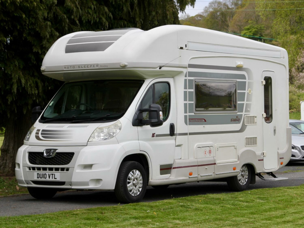 The Auto-Sleeper Broadway is a spacious motorhome with a fantastic layout. As you enter the motorhome, there’s a very well-equipped rear kitchen including a 3-way Dometic fridge/freezer, hob with 3 gas burners and 1 electric plate, separate grill and oven, microwave, and sink. Next to the kitchen is the bathroom with an electric flush toilet, sink, and shower. Towards the front of the motorhome is a spacious living area with a side sofa and seating area with two seats facing one another, and there are two seat belts fitted. The seating area will convert into either two single beds or a large double. Above the cab is another double bed. There’s ample storage throughout the vehicle with high-level storage lockers, a large wardrobe, cupboards, and under-seat storage. The Truma heating and hot water run on both gas and 240v hookup. In the cab, you’ll find two captain’s chairs (which also rotate round for extra seating). The van is built on the well-proven Peugeot Boxer platform with a 2.2 chain-driven diesel engine. When driving, you’ll find various creature comforts such as: Cruise control, air conditioning, multifunction steering wheel, reversing camera, electric windows, and mirrors. Externally, the motorhome features remote central locking (including rear door), a wind-out awning, entry step, alloy wheels, and stabilisation feet to the rear. The motorhome has just had a full habitation check including a damp check. No defects were noted, and no damp was found. It will also come with a fresh MOT (with any advisories addressed), a full engine service, a gas bottle, leisure battery, and new electric hookup lead. We have a fantastic servicing record here in the form of a stamped-up service book and a pile of receipts for regular mechanical and habitation servicing. Two sets of keys. We can be very flexible with viewing, but please note that viewing is by appointment only.