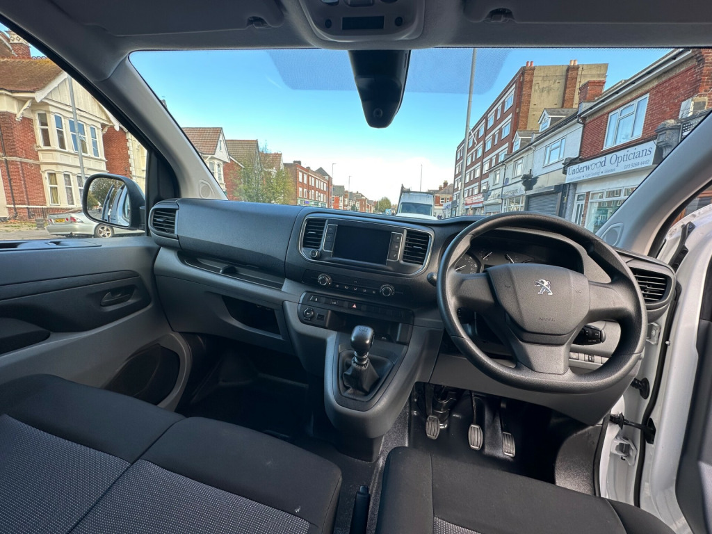 Introducing the 2022 Peugeot Expert 1.5 BlueHDi 1000 Professional Premium, a versatile white panel van featuring a diesel engine and manual transmission. With 58,700 miles and a single owner, this van comes with a full service history. It's ULEZ compliant, and the MOT is valid until 28th October 2026, making it a practical choice for various business applications. v power socket - cargo area, 12v power socket in cabin, 7in capacitive colour touchscreen, free2move connect fleet telematics (6 month subscription from new), peugeot connect sos and assistance, preparation for towbar - wiring and connector for towbar interface, 16in steel wheels with black centre cap, black front and rear bumpers, door mirrors - electrically adjustable and heated, electric front windows with one touch and anti pinch function, front windows tinted to 30 percent opacity, full size steel spare wheel, laminated acoustic windscreen, manually folding door mirrors, side rubbing strips, two speed intermittent front wipers, visibility pack, abs - anti lock braking system, automatic fuel cut off and door unlocking in event of accident, dashboard mounted central locking push button and auto locking above 7mph, driver and front passengers airbags with passengers airbag deactivation switch, esc with hill start assist - abs braking including eba and ebfd, height-adjustable 3-point pre-tensioner seat belts with force limiter, perimetric and volumetric thatcham category 1 approved alarm, remote central locking with deadlocking, rolling code transponder immobiliser - thatcham approved, unfastened seat belt warning for driver and front passengers, visible vin number at base of windscreen, air conditioning, armrest - driver, closed upper and open lower glove boxes, cup holders for driver and passenger at top of dashboard, dashboard storage areas, door pockets - front - including storage for 1.5l bottles, drivers seat height - rake and reach adjustable with lumbar adjustment and armrest, full steel bulkhead with moduwork load-through flap under outer passenger seat, hard plastic floor protection in cabin, height adjustable front head restraints, lockable fuel filler cap, moduwork - dual passenger bench seat, storage under squab of central passenger seat, tie-down hooks in cargo area x6, twin sliding side doors, twin unglazed rear doors - opening to 180 degrees, cruise control with programmable speed limiter, door opening warning and audible lights-on warning, multifunction on-board trip computer, power assisted steering, rear parking sensors, rev counter with maintenance and gear efficiency indicators, height adjustable halogen headlights with integrated daytime running lights, high level third brake light