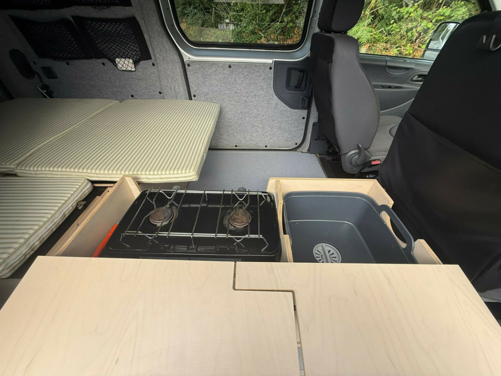 Discover the practicality and versatility of the 2014 Peugeot Expert based Aura 4 HDi 1000 L1H1 Professional, expertly converted into a compact camper van ideal for weekend getaways or full-time van life. Powered by Peugeot's trusted 1.6L HDi diesel engine producing around 90bhp, this van offers solid torque, reliable performance, and excellent fuel economy of up to 44 mpg. The L1H1 short wheelbase model keeps it compact enough for easy parking and city driving, while still offering a generous and cleverly laid-out interior. With twin sliding doors, a low loading height, and air conditioning, it brings comfort and utility in one durable package.Inside, this camper conversion transforms the Expert into a cozy and functional home on wheels. Typically fitted with a rock-and-roll bed, fold-out dining table, 12V electrics with a leisure battery, and smart storage units, it's fully equipped for spontaneous adventures. Many conversions also include a compact kitchenette with a sink and hob, and space for a fridge or portable toilet, depending on layout. The cab is well-appointed for a 2014 model, with Bluetooth connectivity, electric windows, and swivel seats for added living space. Affordable, dependable, and ready to hit the road this Peugeot Expert is the perfect entry point into the van life movement. r conditioning, 3 point seatbelts, air conditioning, central locking, electric windows, park assist camera, power steering, cruise control, surround view, trip computer, service indicator, tyre pressure monitor, central locking, immobiliser, electric mirrors, cd player, radio, front head restraints, colour coded body, metallic paintwork, steel wheels