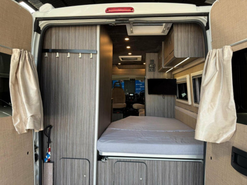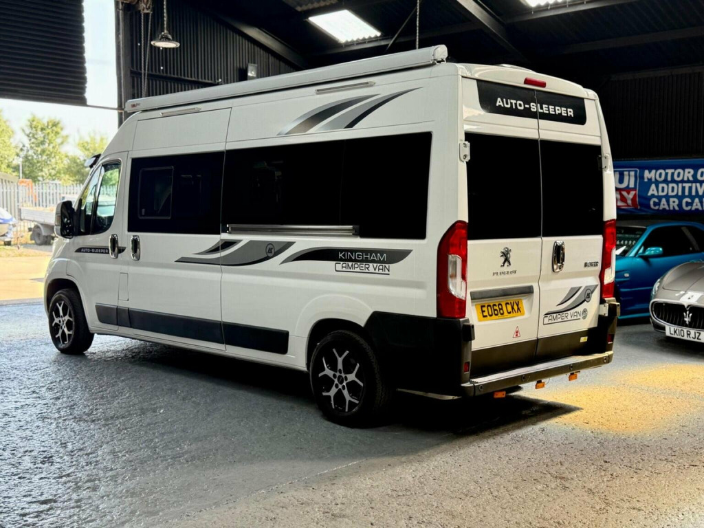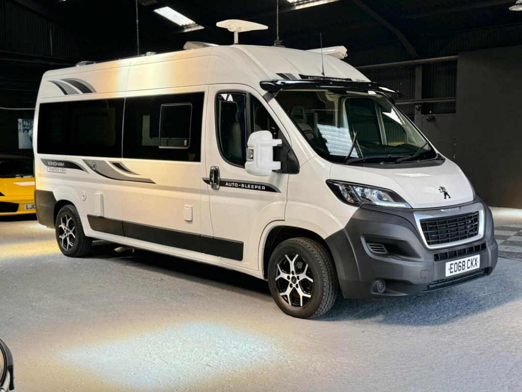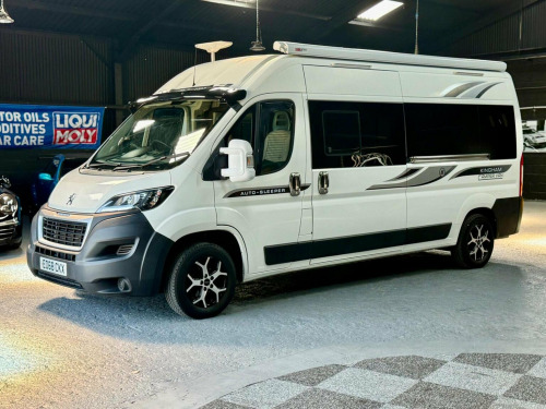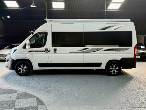Dorset Prestige Cars are proud to offer this Lovely example professionally built with Autosleeper Kingham parts. , First registered 28-09-2018. Such a lovely example, do not let the mileage put you off but it drives great and it comes as six months warranty and 12 months AA breakdown. , White exterior with Kingham campervan graphics, 16 inch diamond cut alloy wheels with 4x good Tyres, wind out awning, side sliding door with twin opening rear doors,, As you enter the campervan you are welcomed by a double sofa with enough space for a freestanding table, two Captain chairs which swivel. A well equipped kitchen with two gas burner hon, sink with hot and cold running water, microwave, large fridge freezer, fixed rear bed which is big enough for a very comfortable night, toilet shower in the bathroom, TV with satellite, heating system, hot water system! , Fantastic design Van for long weekends away or even travelling around Europe. Well equipped and ready to go.