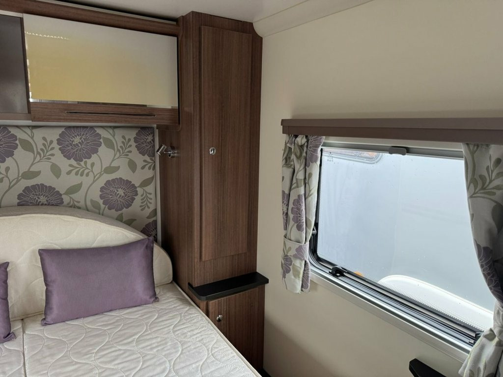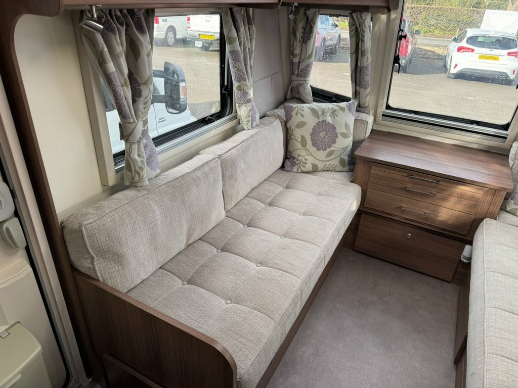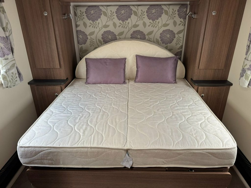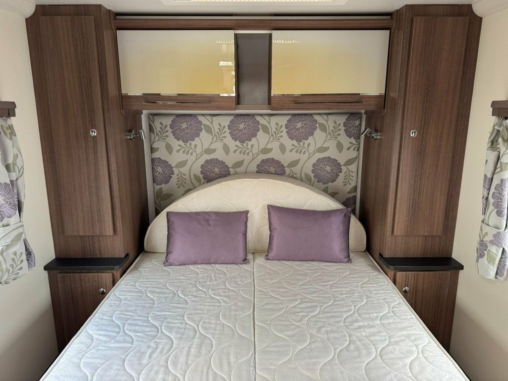 2018 Bailey Unicorn Pamplona twin axle luxury 4 berth touring caravan. This caravan has the sought after end bedroom with fixed island bed, central washroom, mid kitchen and front lounge which can also be used as a large double or 2 singles. The caravan has been well looked after and remains in great condition inside and out. It has just been serviced by our trusted workshop and is ready to tow away complete with all handbooks and manuals and spare keys. The caravans specification is as follows: Step on hitch cover ATC control External gas BBQ point External 230v socket Front external access locker 2 piece door with window and waste bin Front seating with scatter and bolster cushions Front chest of drawers with slide out occasional table Panoramic front window Overhead gloss fronted lockers Radio,CD, AUX, USB Extending worktop Stainless steel square sink with swan neck mixer tap, drainer and chopping board Deep fill soft close kitchen drawers Microwave Large piano black fronted fridge with separate freezer Sideboard with TV point Full size folding table with dedicated housing Solid door to washroom Square fully lined shower cubicle Thetford electric flush toilet Washbasin with swan neck mixer tap Laundry drawer Vanity mirror and storage cupboard End fixed island bed with padded headboard and matching scatter cushions Overhead lockers Wardrobes and cupboards to either side Corner TV Shelf USB charging points Alde heating and hot water system Full set of loose fit drop in car