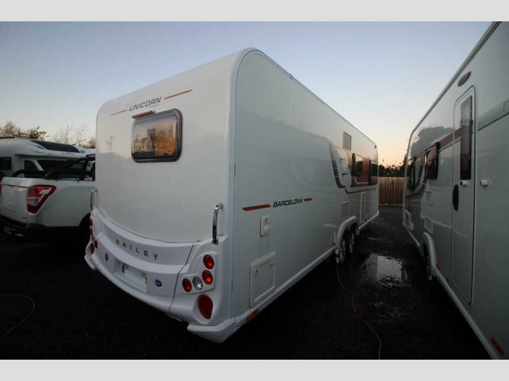The Bailey Unicorn Barcelona is a twin axle 4 berth caravan. Its layout features a front lounge that converts into a double bed, a central kitchen with a 3 gas burner and 1 electric hob, oven/grille, large tower fridge freezer and high level microwave, Towards the rear is a fixed french style double bed and at the rear is the washroom with separate shower cubical, cassette toilet and wash basin. With great specification the Barcelona is wonderfully spacious and comfortable for 2, but has the option to accommodate family or guests. Also has digital Alde central heating and a solar panel, Clear Cris check, 3 months warranty, Fully serviced and ready for collection, Home delivery available, Finance available up to a 10 year term, Part exchange welcome, We are based in Routh near Beverley HU17 9SL.