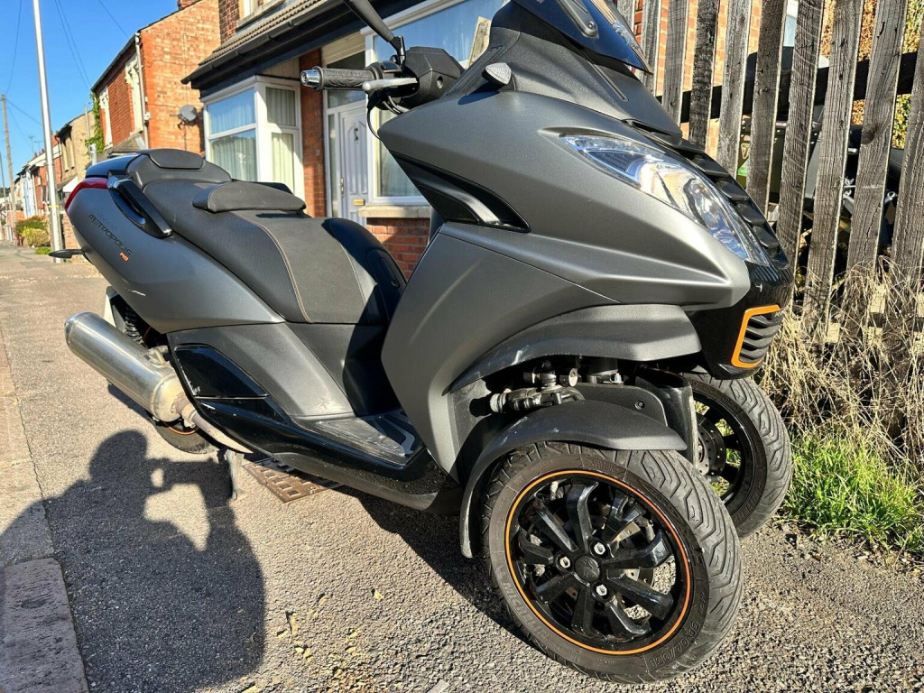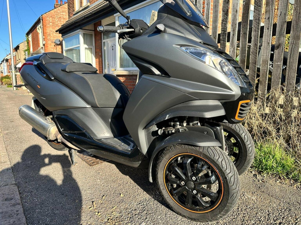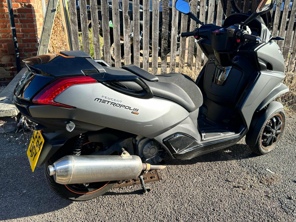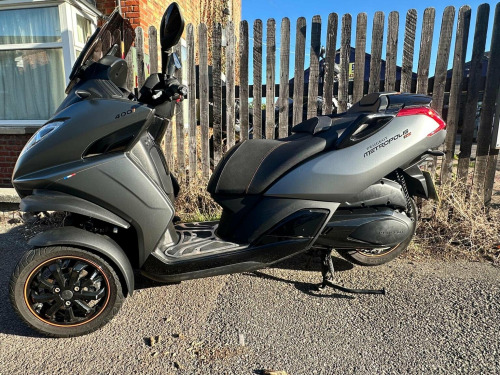Car Licence:, You can ride a Peugeot Metropolis on a standard car licence if it was obtained before January 19, 2013, Here We Have for Sale the Peugeot Metrolopis 400cc Tike, gives all the benefites of Riding a Motorcycle. but with the added security of a third wheel giving you the reasaurance of better Road grip and stability. No Helmet is Required to ride. has tilt and lock suspension so you dont even need to put your feet down when you ar parked or stopped . SPECIFICATION , Engine & Performance , Engine Type: 4-stroke, 4-valve, single-cylinder, liquid-cooled, Displacement: 399cc, Power: ~35.6 hp (~26.2 kW) at 7250 rpm, Torque: ~38.1 Nm at 5750 rpm, Fuel System: Electronic Injection, Transmission: Belt, Max Speed: ~135 km/h, Chassis & Braking , Front Suspension: Non-adjustable hydraulic mono-damper, Rear Suspension: Double hydraulic dampers, adjustable on 4 positions, Front Brake: 230mm disc with ABS, Rear Brake: 240mm double disc with ABS, Braking System: ABS, Dimensions & Capacities , Wheelbase: 1500mm, Seat Height: 780mm, Fuel Tank Capacity: 13.5 liters, Weight (Running Order): ~265 kg, Features, Storage: Under-seat storage for a full-face helmet, lockable glove box with USB socket , Other: Bag hook, kickstand, and an electric starter